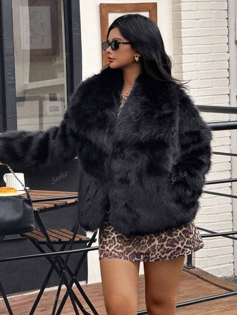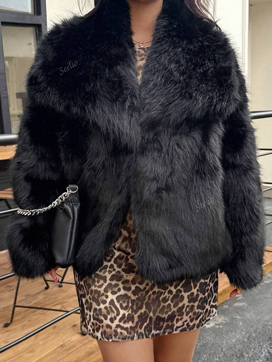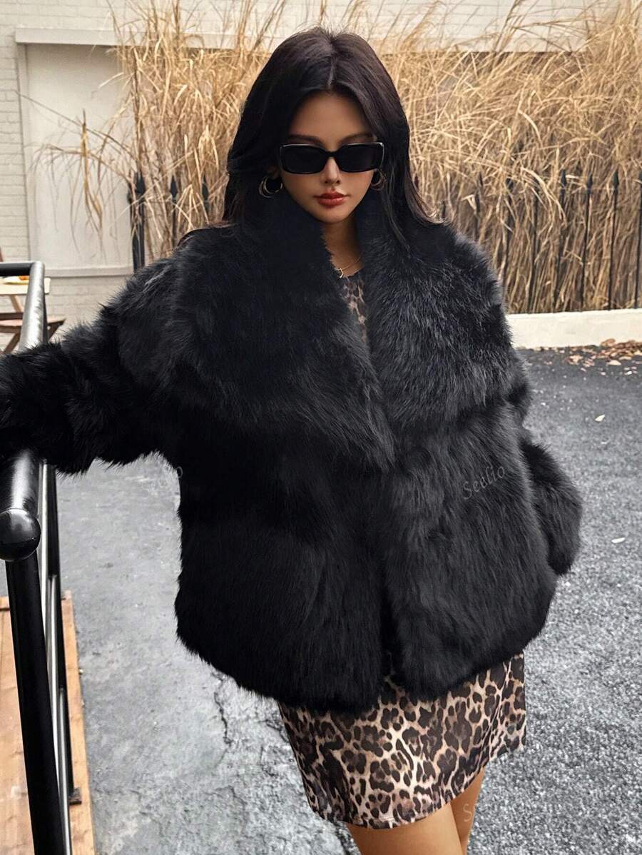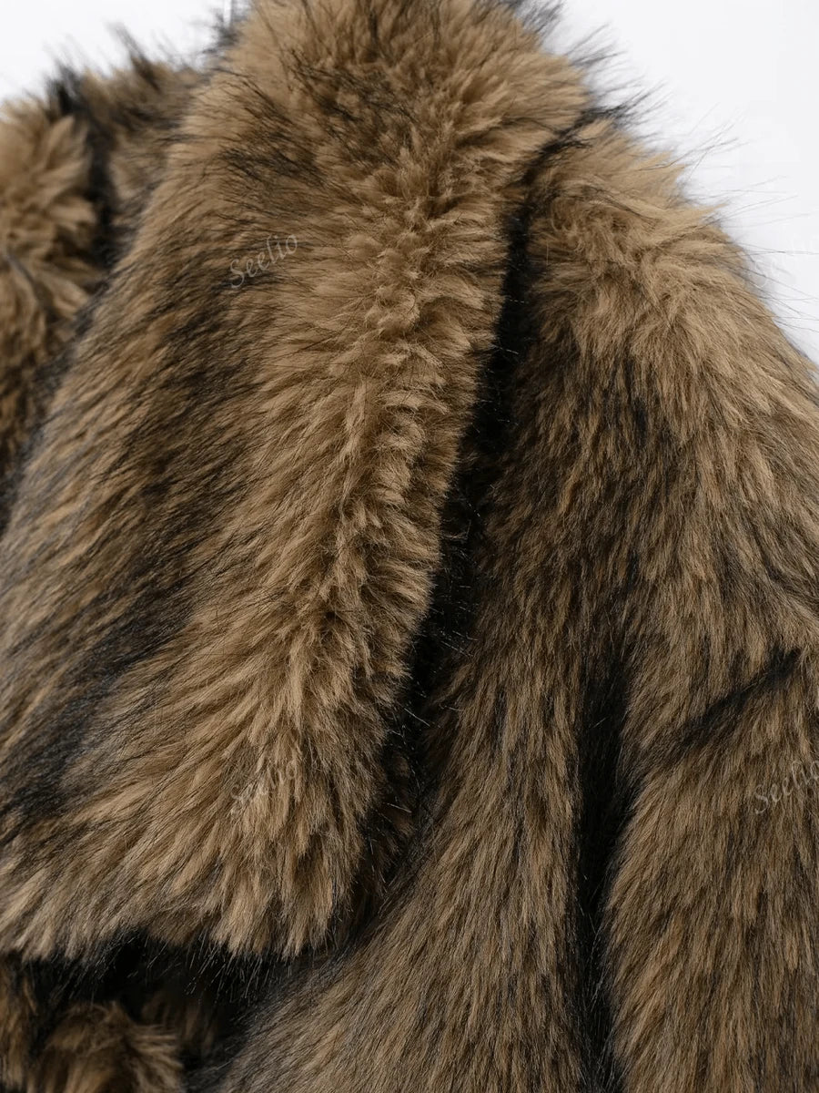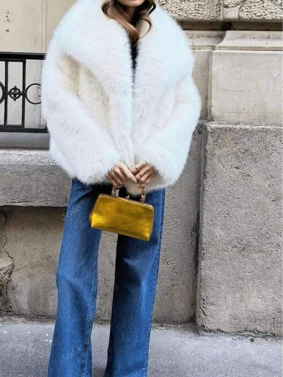Seelio Jesen/Zima Novi Debeli Kaput sa Ovratnikom od Umjetnog Krzna, Srednje Dužine, Modni Efekt Krzna, Podstavljen Umjetnim Krznom