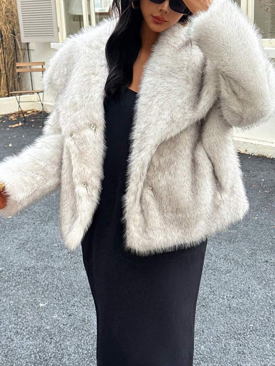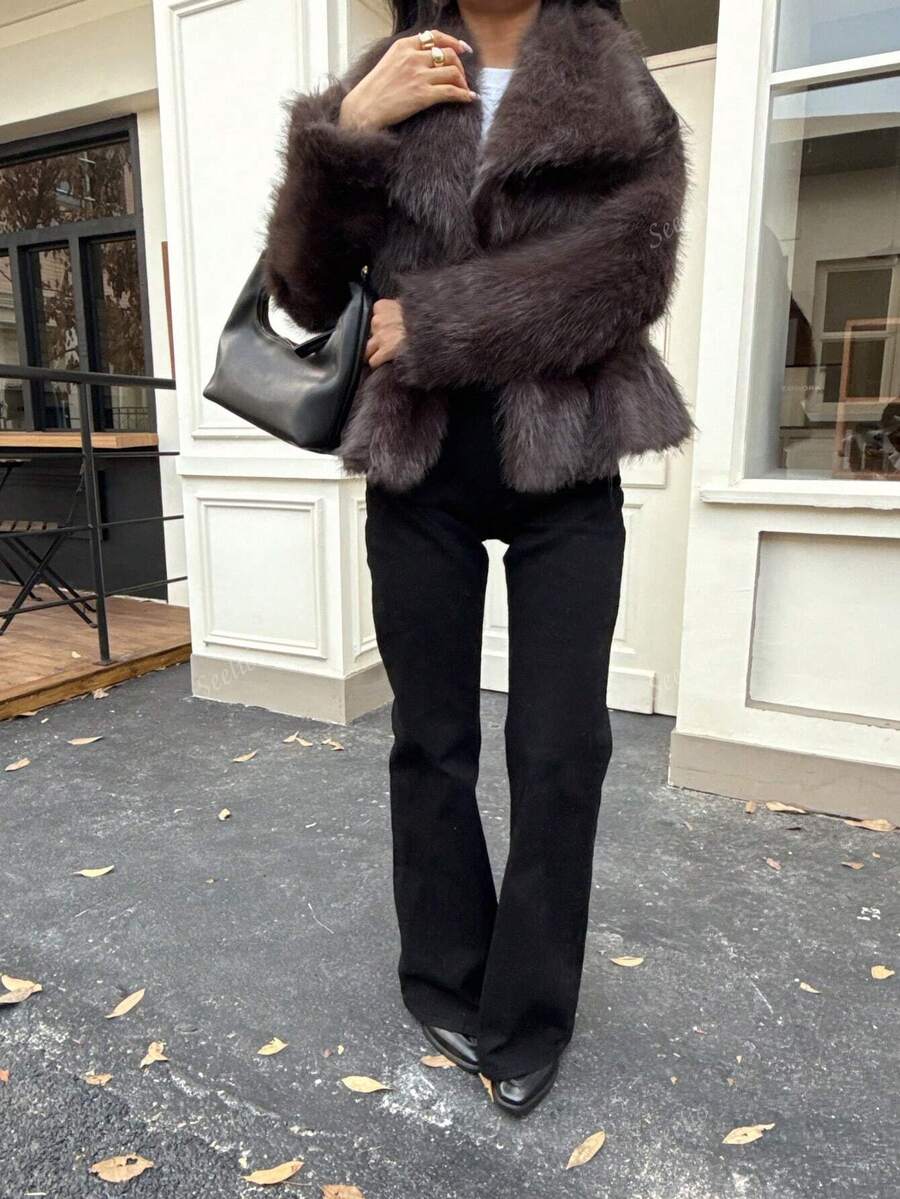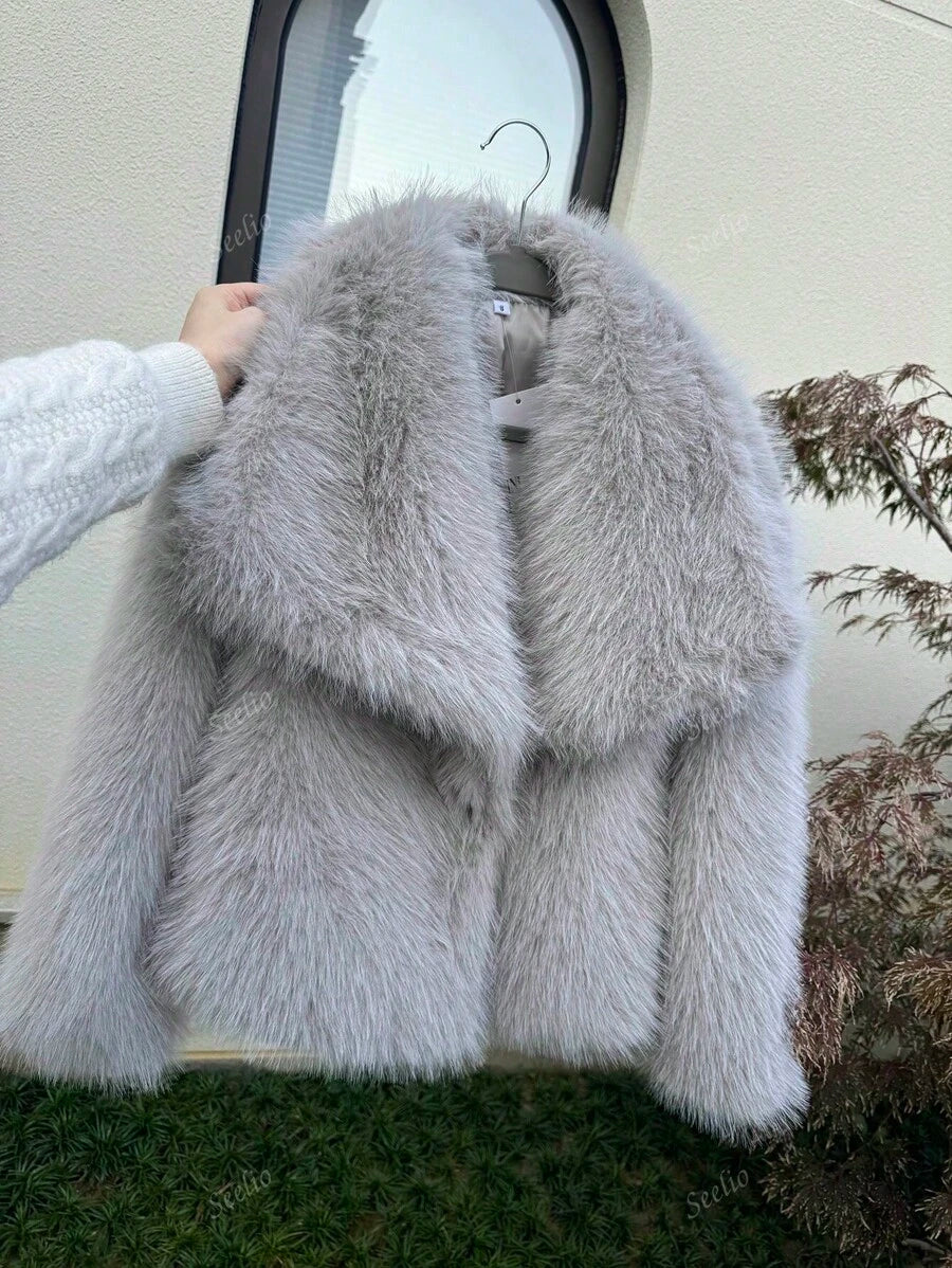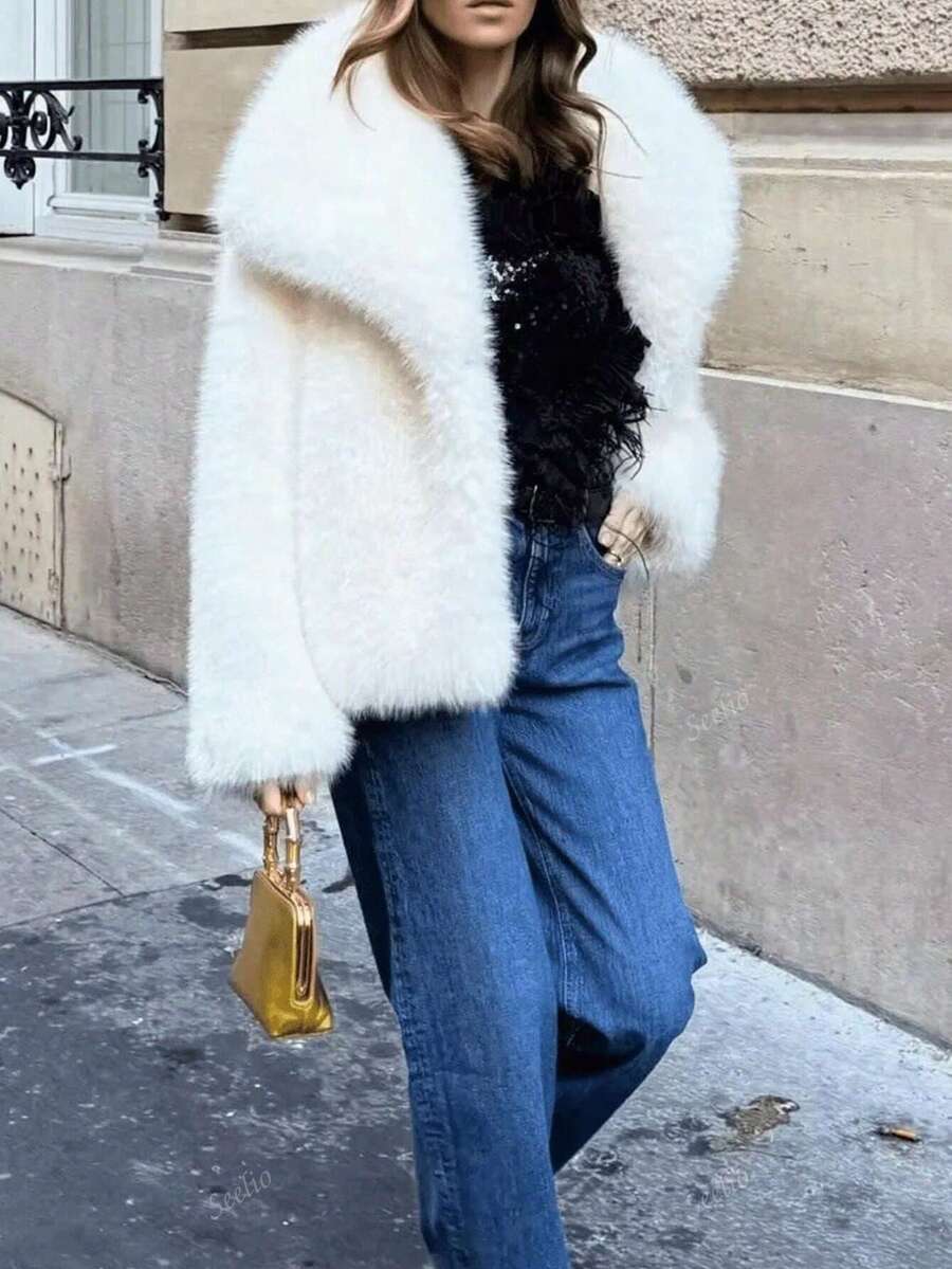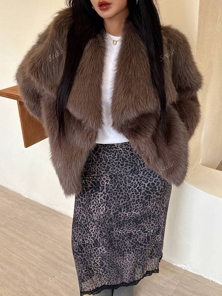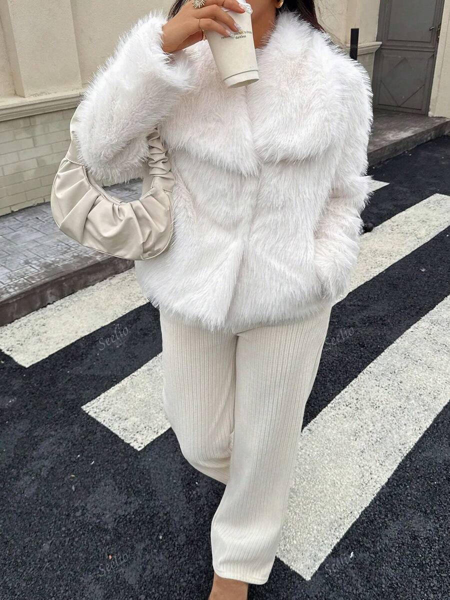 Seelio Jesen/Zima Novi Debeli Kaput sa Ovratnikom od Umjetnog Krzna, Srednje Dužine, Modni Efekt Krzna, Podstavljen Umjetnim Krznom