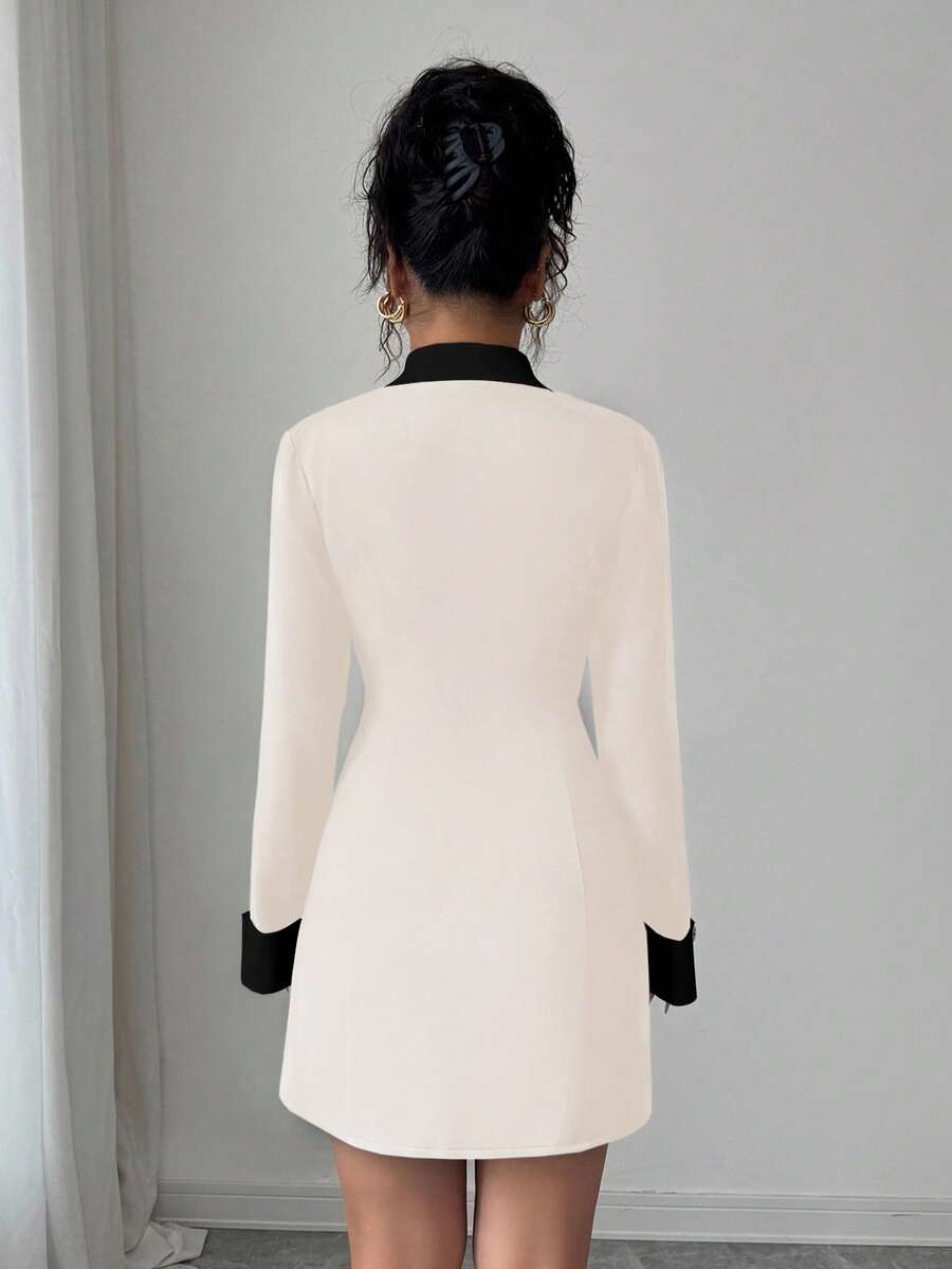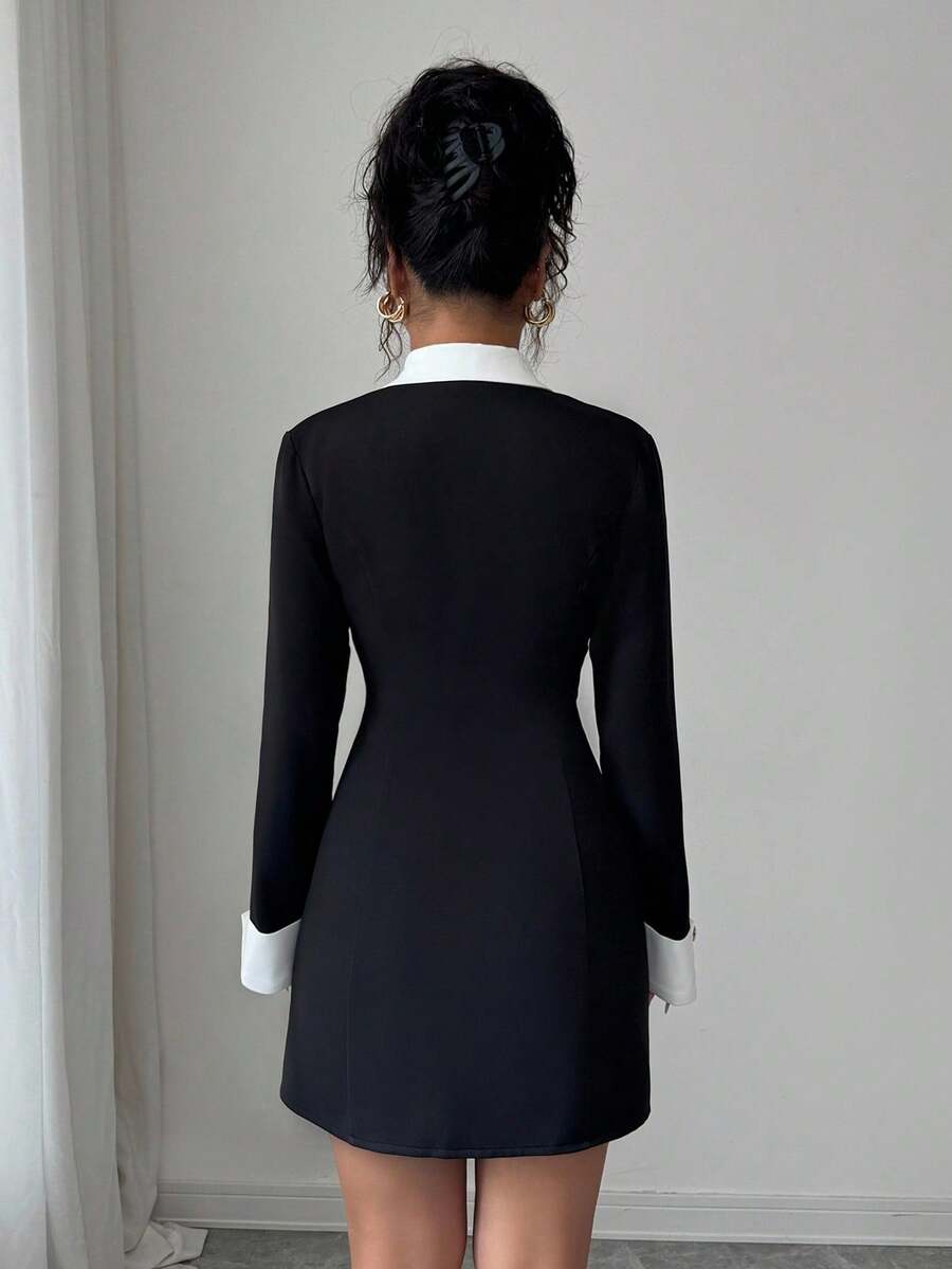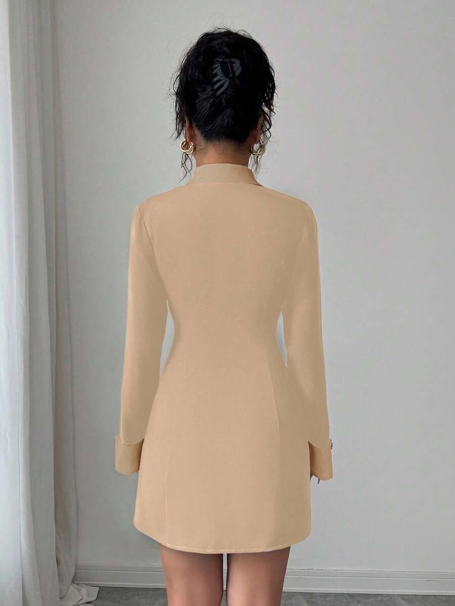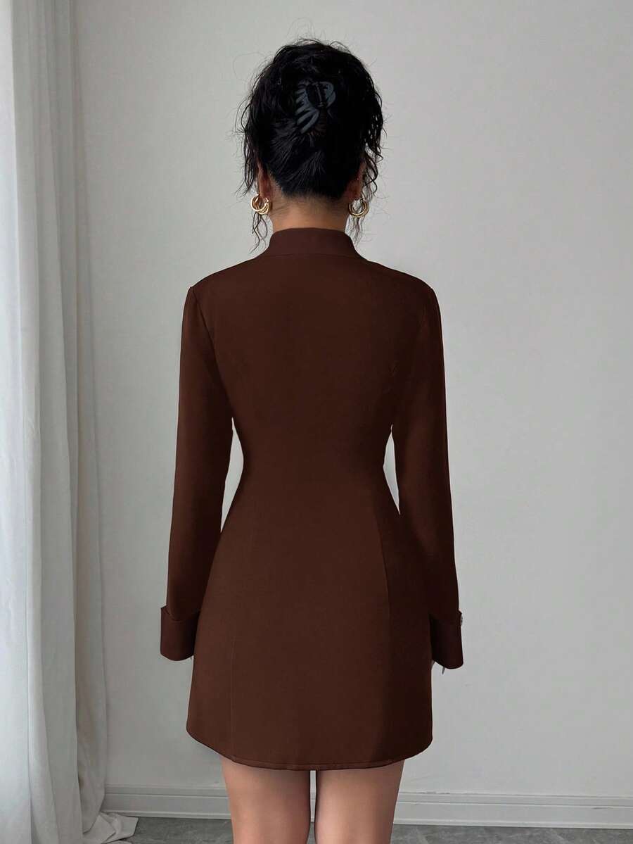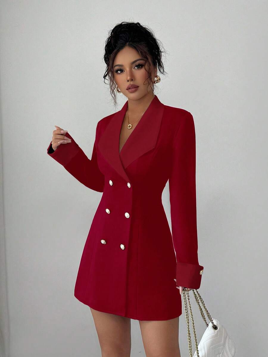 Selianne Minimalistička Claret Duga Rukava Otvoreni Prednji Dvolični Kratki Haljina, Prikladna Za Službene Večere, Okupljanja Sestara, Večernje Datume, Crvene Haljine Za Žene, Božićna Ženska Odjeća, Elegantne Haljine Za Žene, Žene Na Poslu