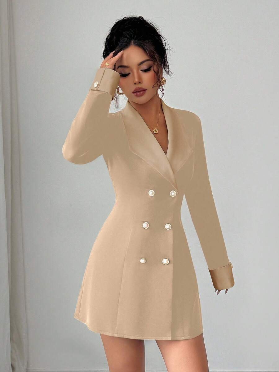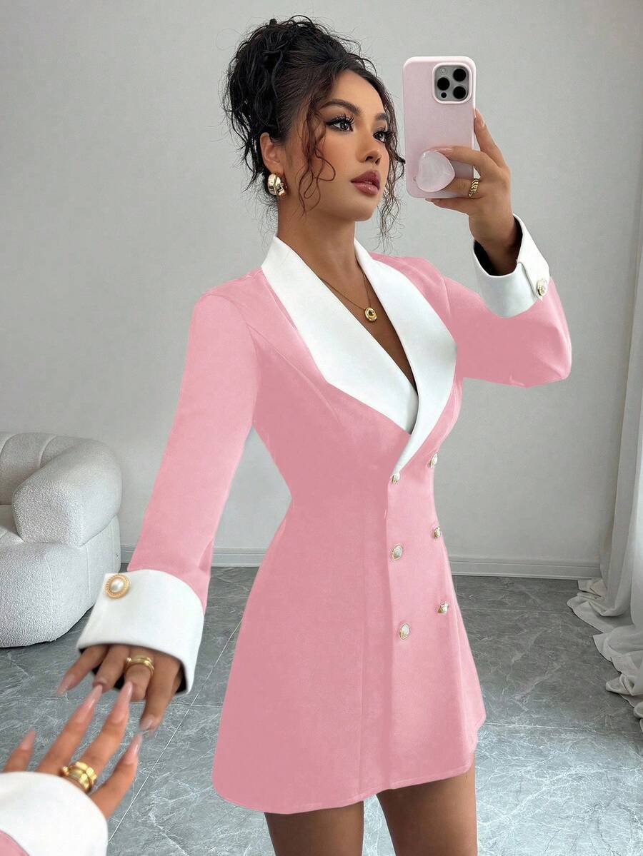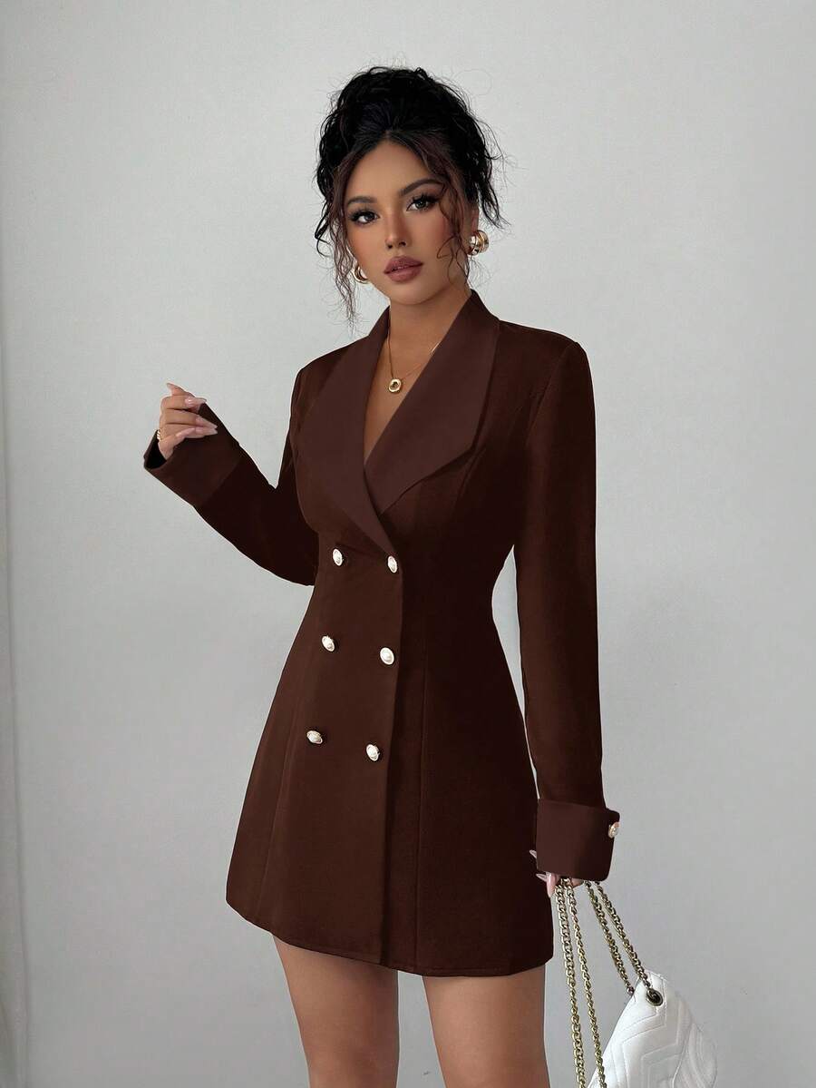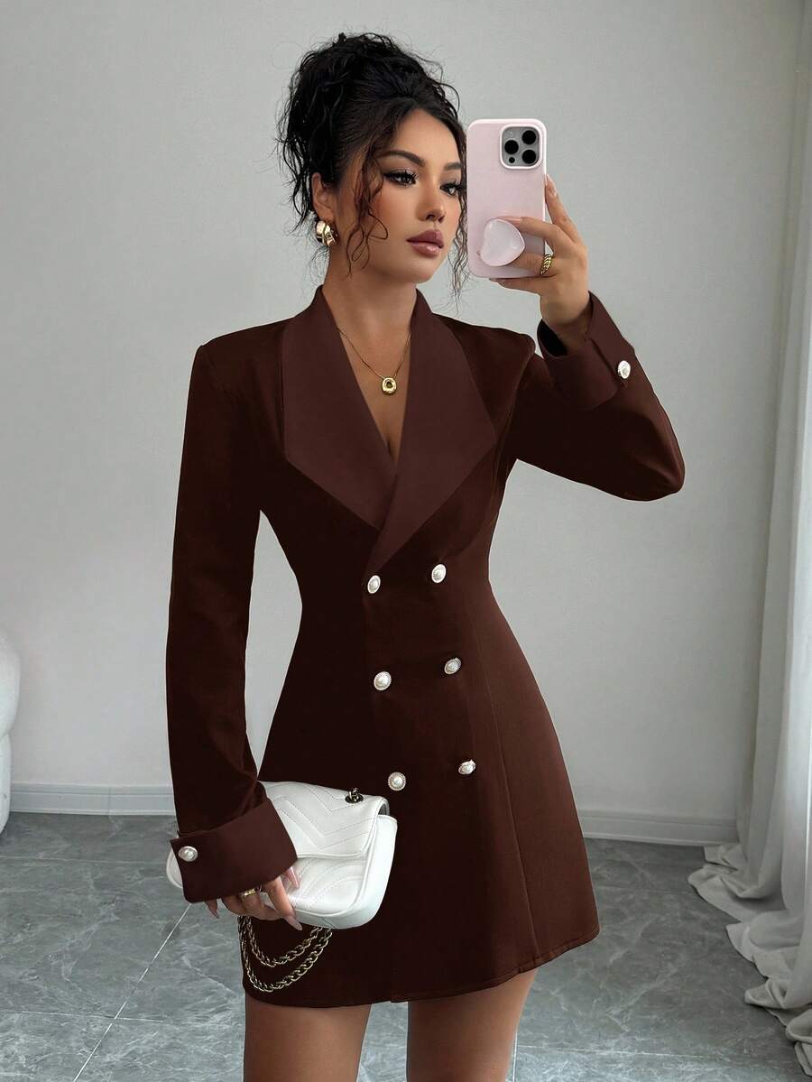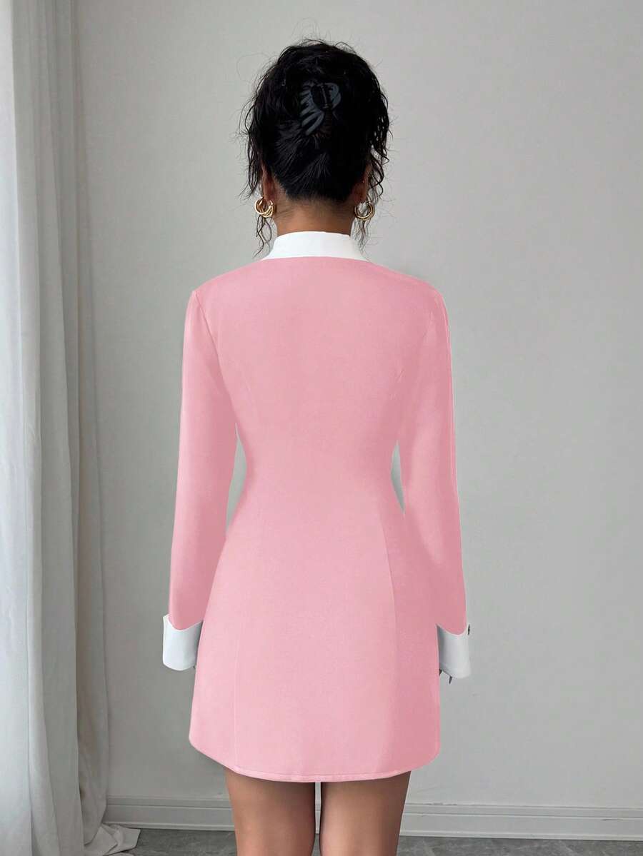 Selianne Minimalistička Claret Duga Rukava Otvoreni Prednji Dvolični Kratki Haljina, Prikladna Za Službene Večere, Okupljanja Sestara, Večernje Datume, Crvene Haljine Za Žene, Božićna Ženska Odjeća, Elegantne Haljine Za Žene, Žene Na Poslu