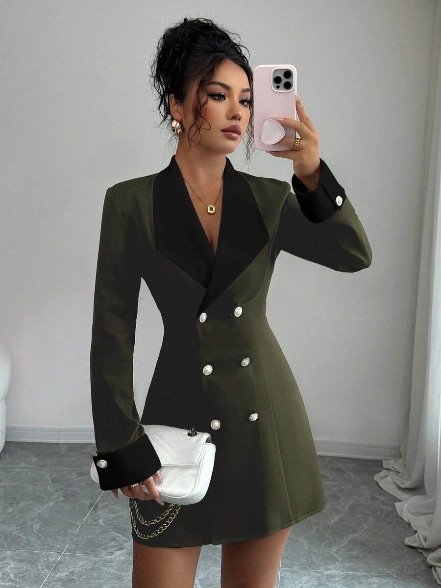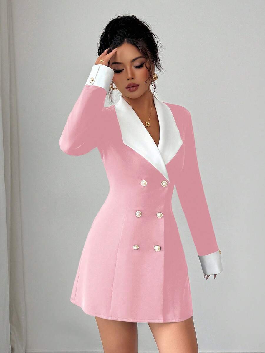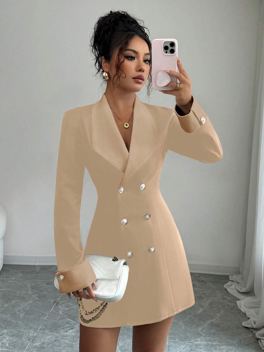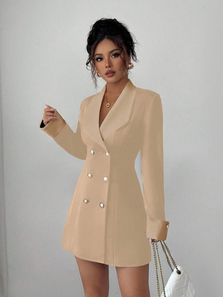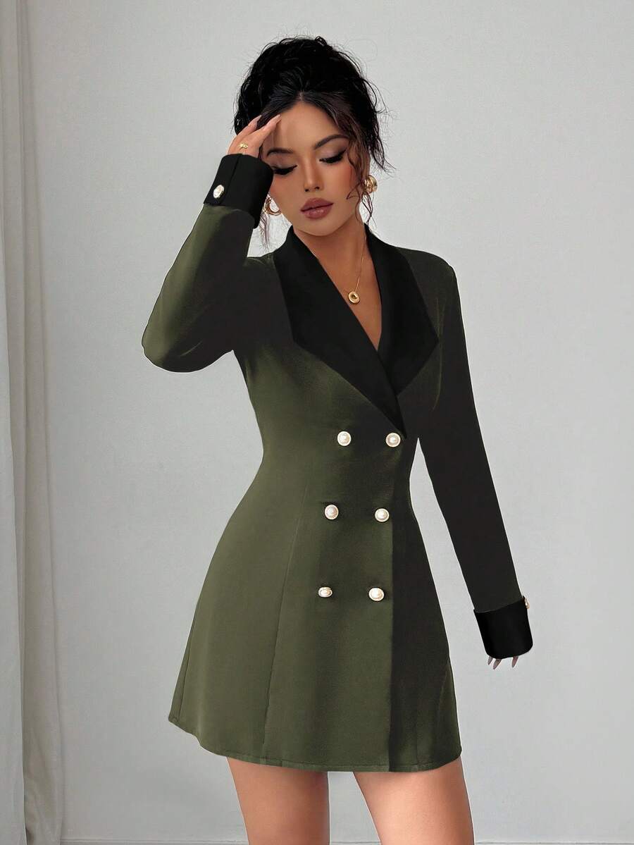 Selianne Minimalistička Claret Duga Rukava Otvoreni Prednji Dvolični Kratki Haljina, Prikladna Za Službene Večere, Okupljanja Sestara, Večernje Datume, Crvene Haljine Za Žene, Božićna Ženska Odjeća, Elegantne Haljine Za Žene, Žene Na Poslu