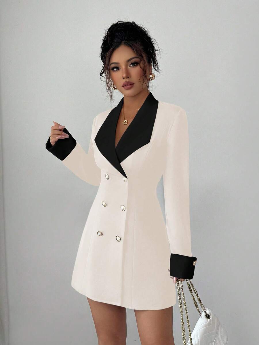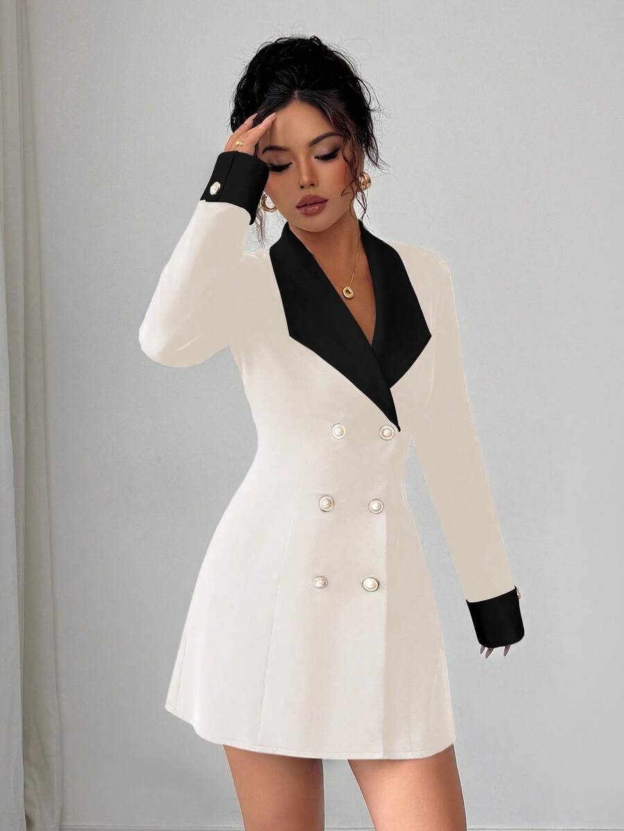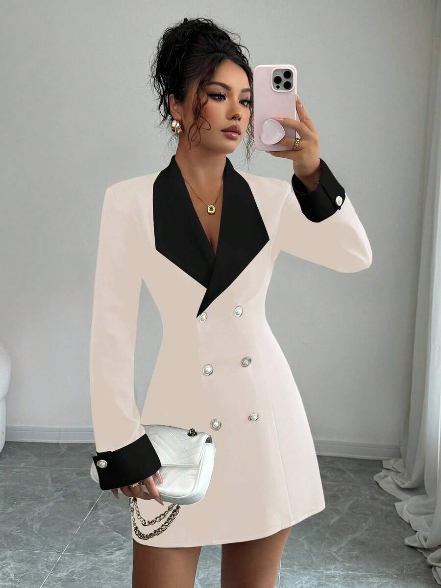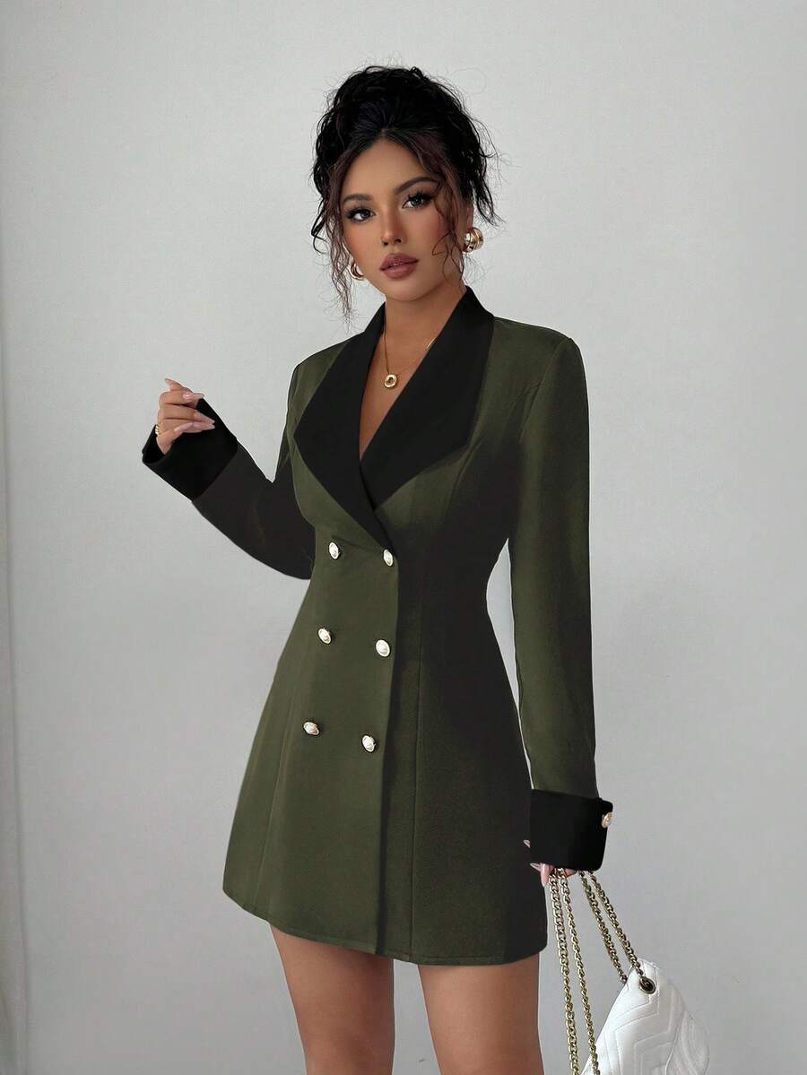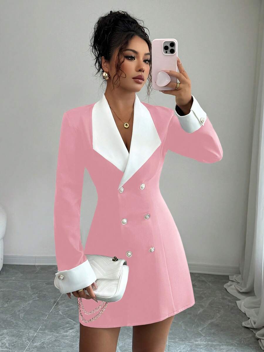 Selianne Minimalistička Claret Duga Rukava Otvoreni Prednji Dvolični Kratki Haljina, Prikladna Za Službene Večere, Okupljanja Sestara, Večernje Datume, Crvene Haljine Za Žene, Božićna Ženska Odjeća, Elegantne Haljine Za Žene, Žene Na Poslu