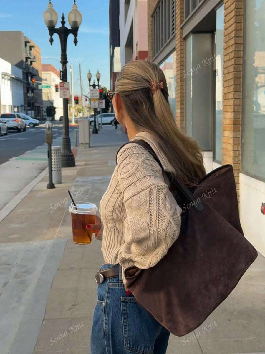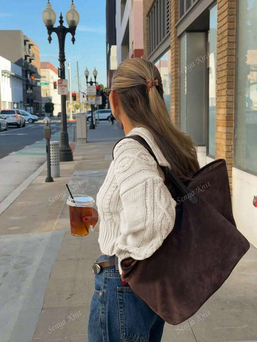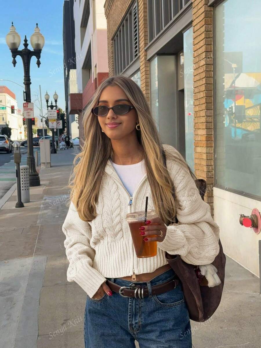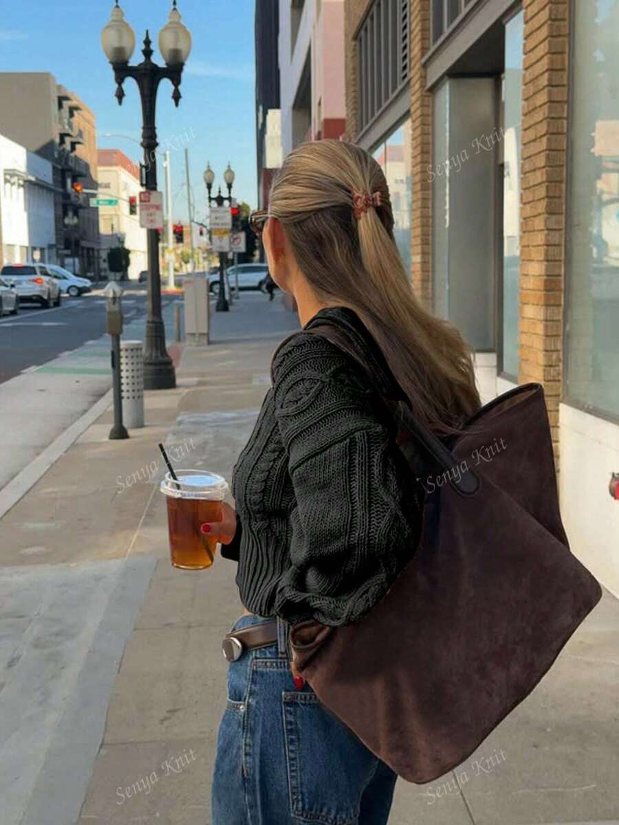 Senya Autumn And Winter New Vintage Big Lapel Double Head Zip Twisted Knit Cardigan, Loose Drop Shoulder Casual Jumper, Short Daily Commuting,Teacher,Airport Jumper Tops