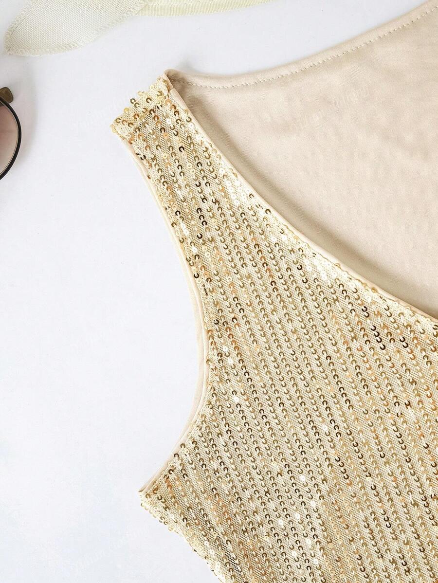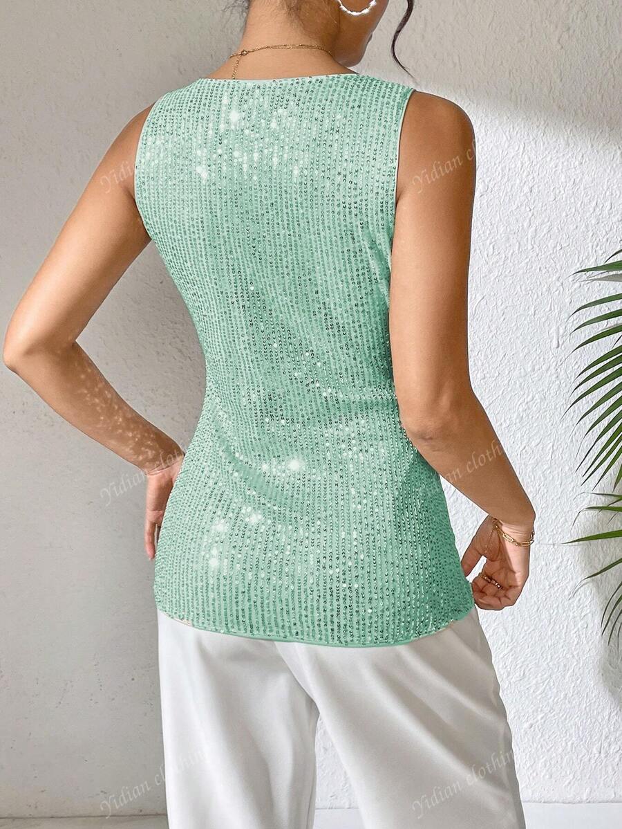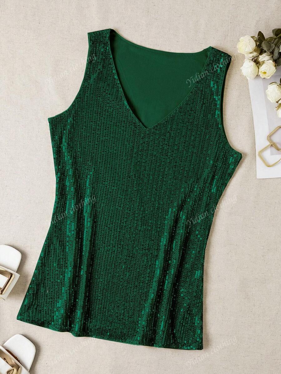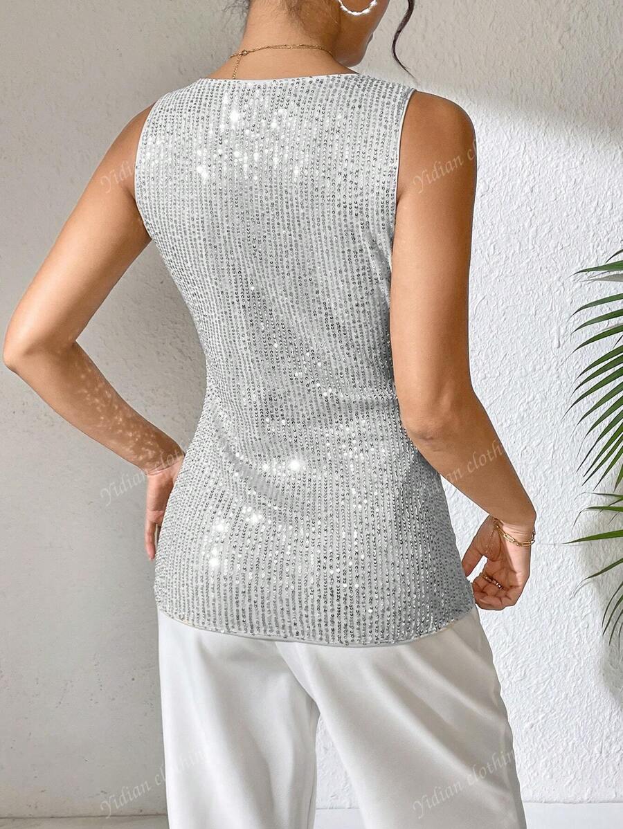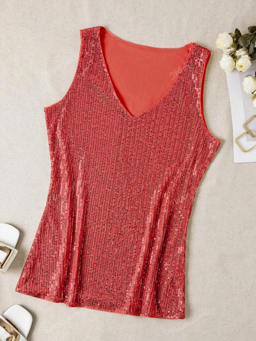 Sequin V-Neck Sleeveless Tank Top, Elegant Tank Top For Spring And Summer