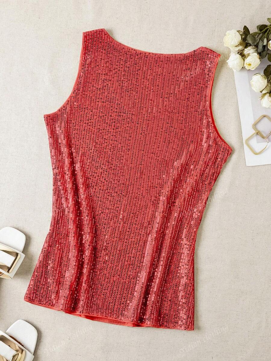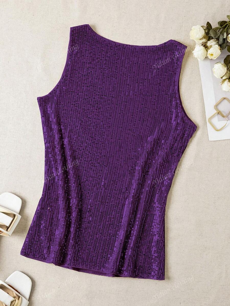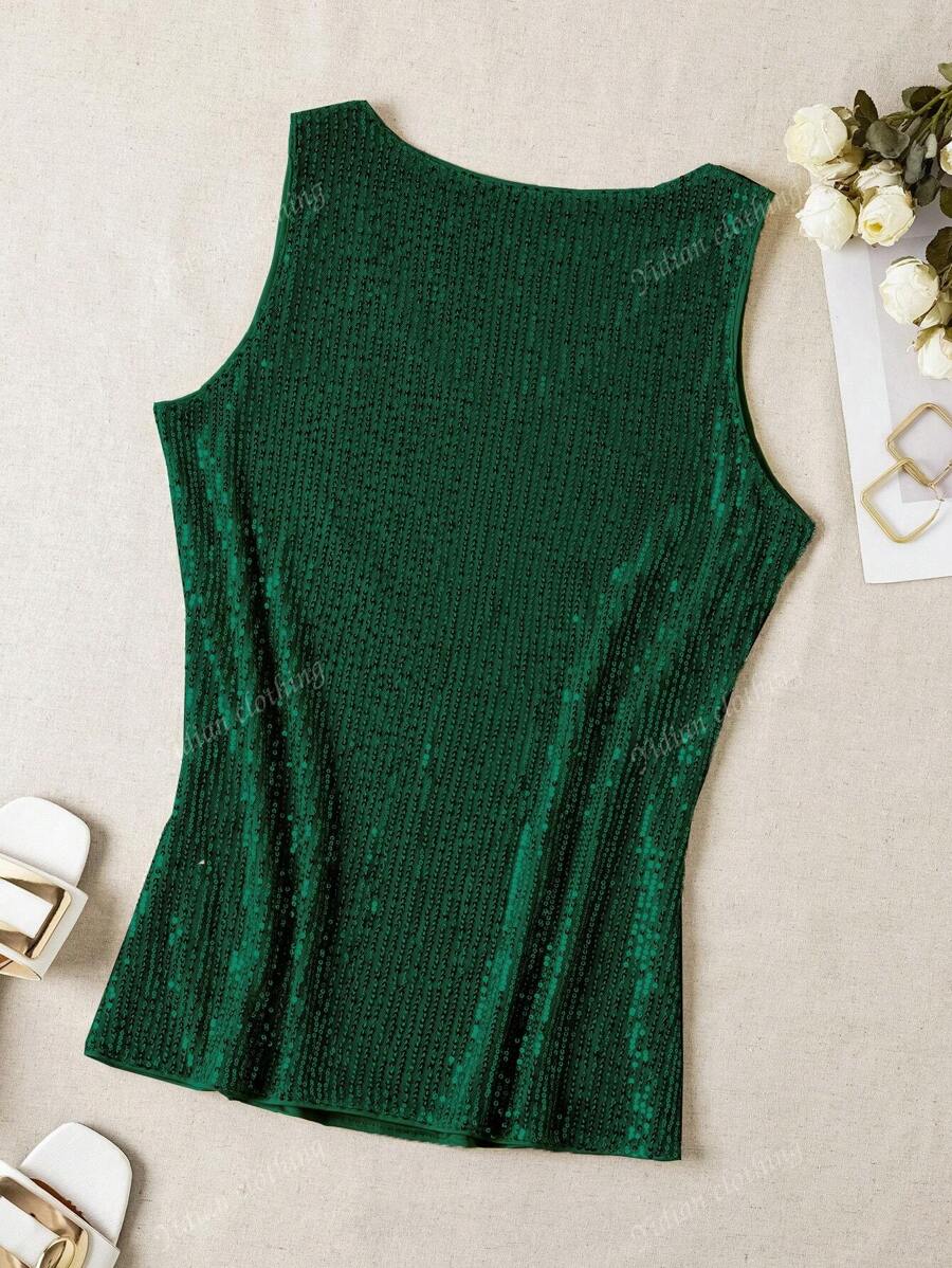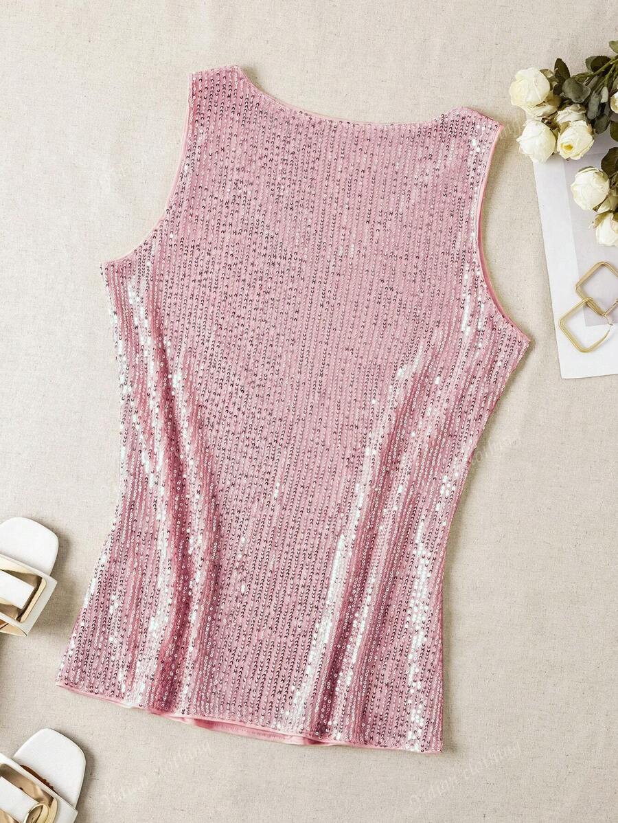 Sequin V-Neck Sleeveless Tank Top, Elegant Tank Top For Spring And Summer