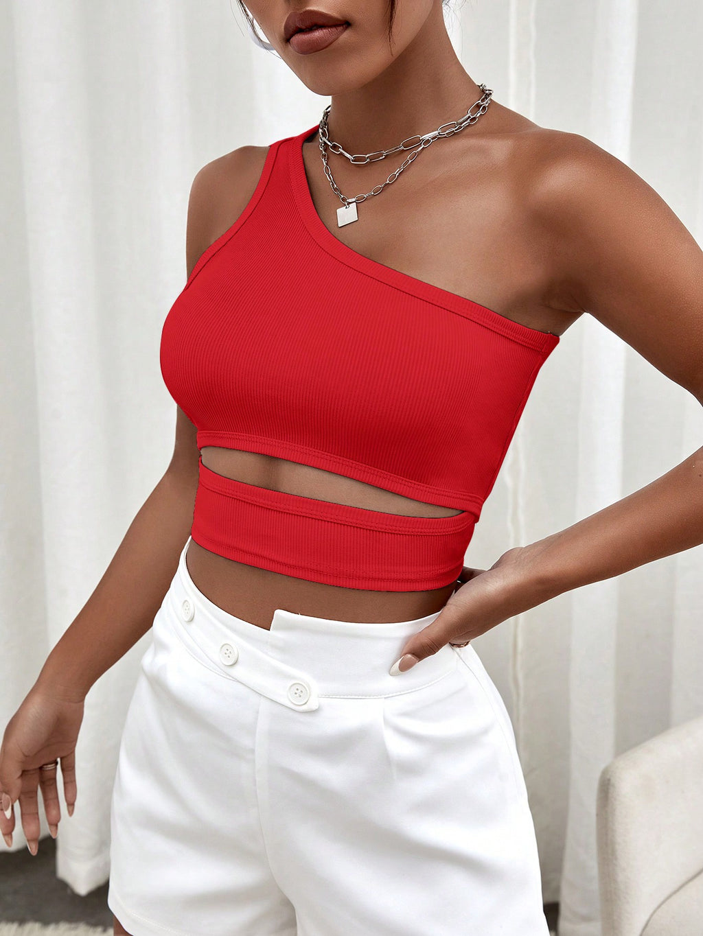 SHEIN BAE Damen Einfarbiges Slim Fit Crop top s jednim rameom s izrezom Für Den Sommer