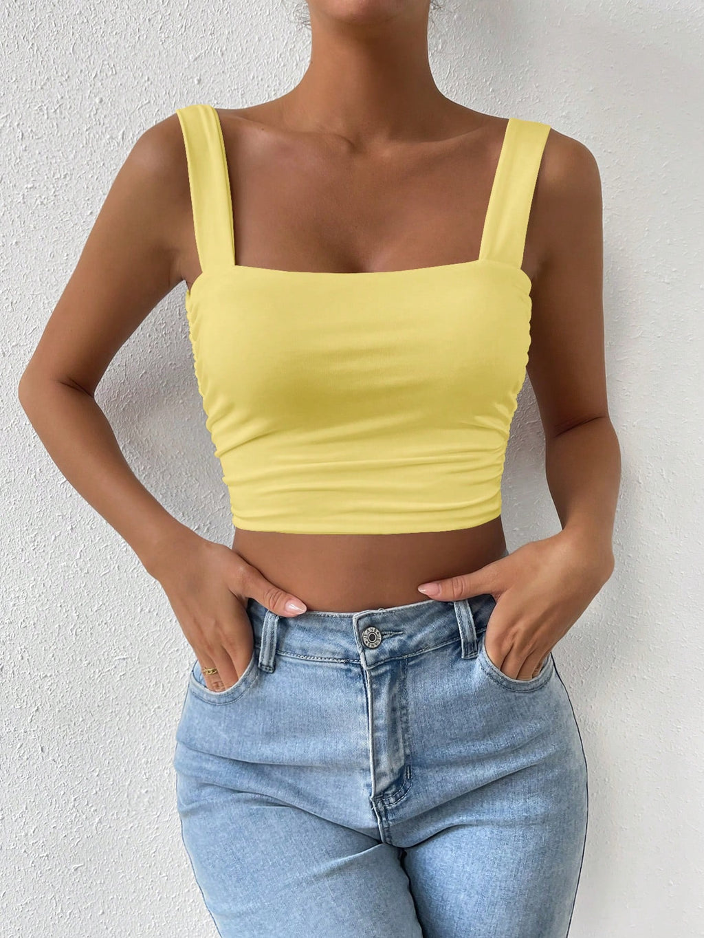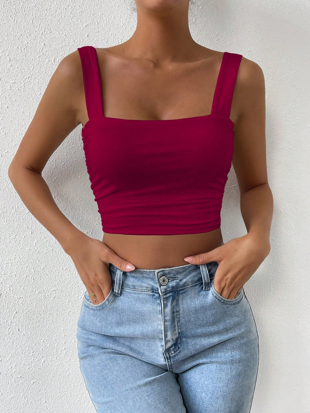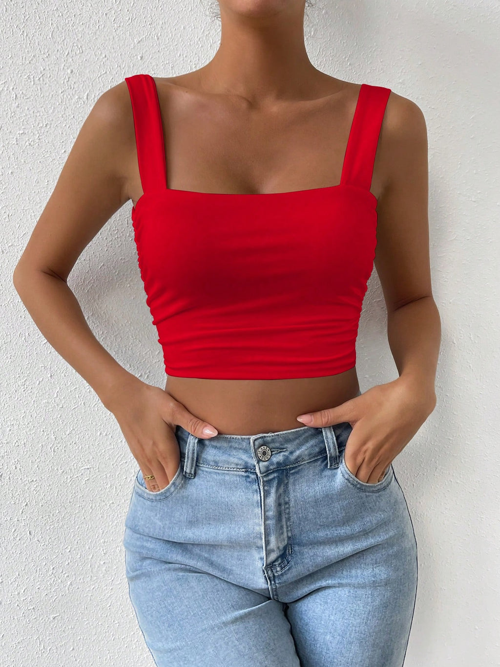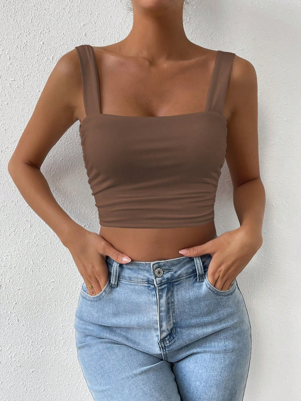 SHEIN ChicEase majica sa skraćenim remenom s čvrstim ruchovima, osnovni top