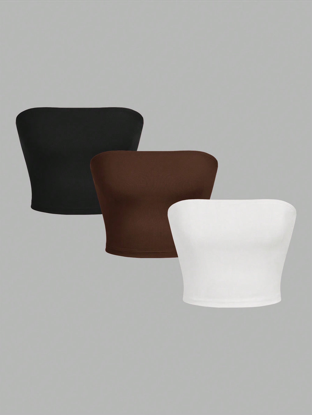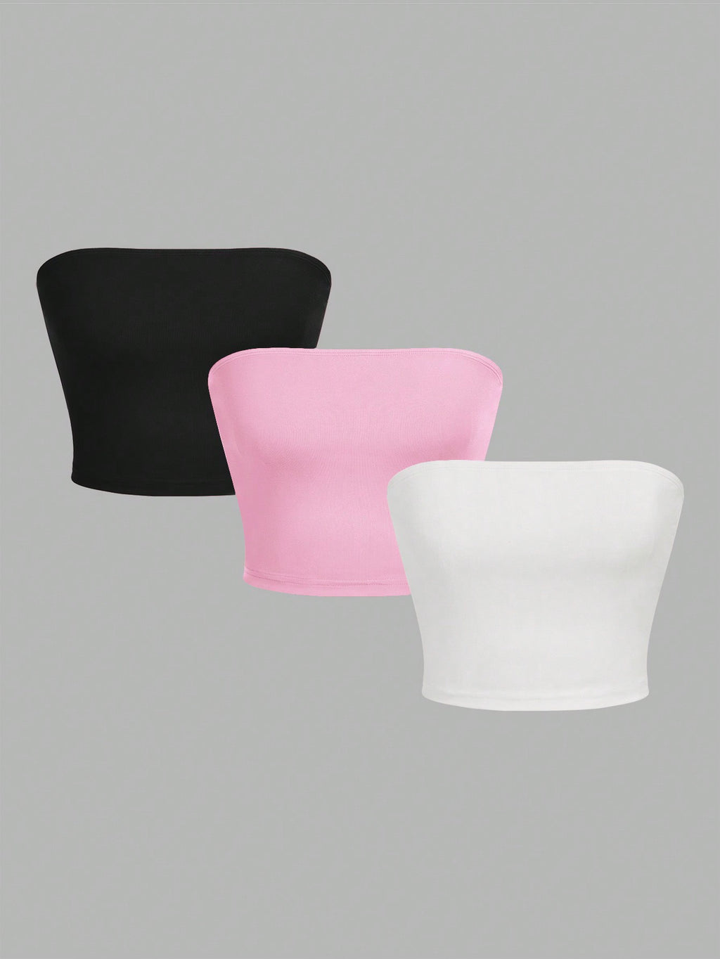 SHEIN EZwear 3 komada ležerne jednostavne i čiste jednobojne kratke majice za žene, ljeto