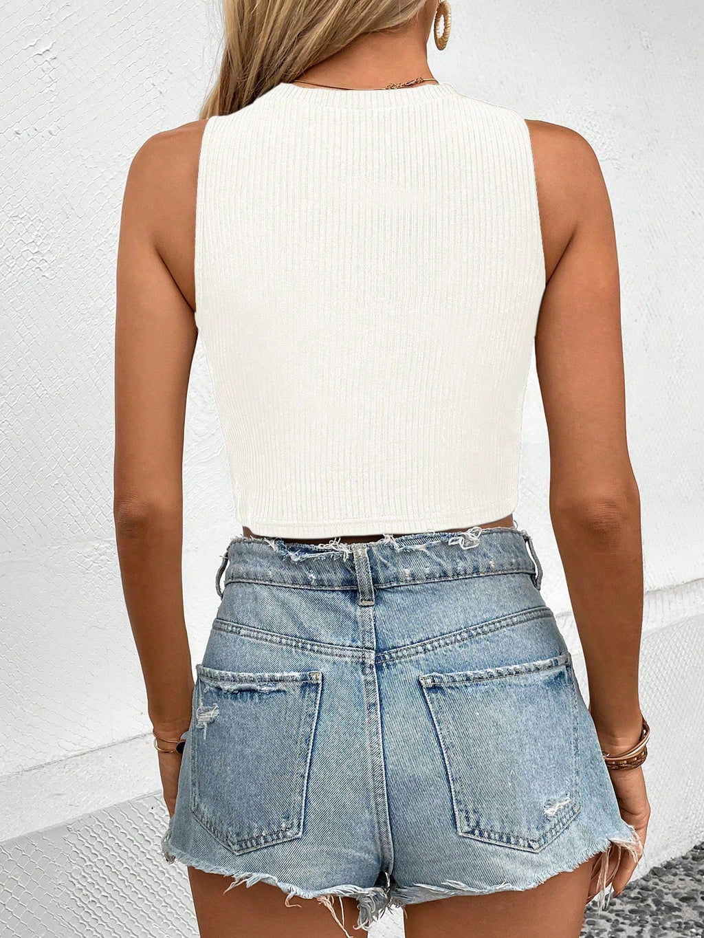 SHEIN LUNE Damen Twist prednja majica bez rukava mit einem einfarbigen Design, für den Sommer