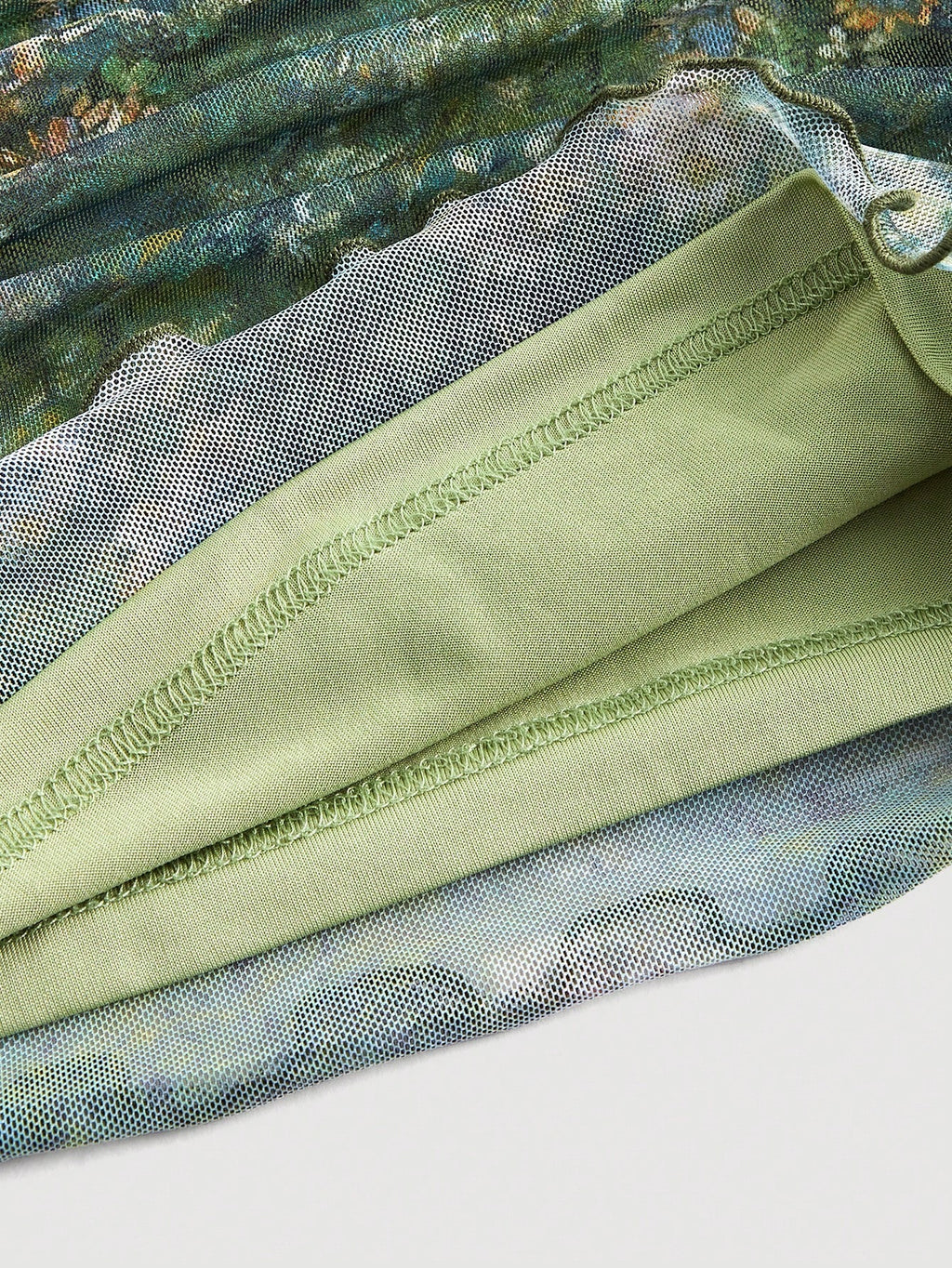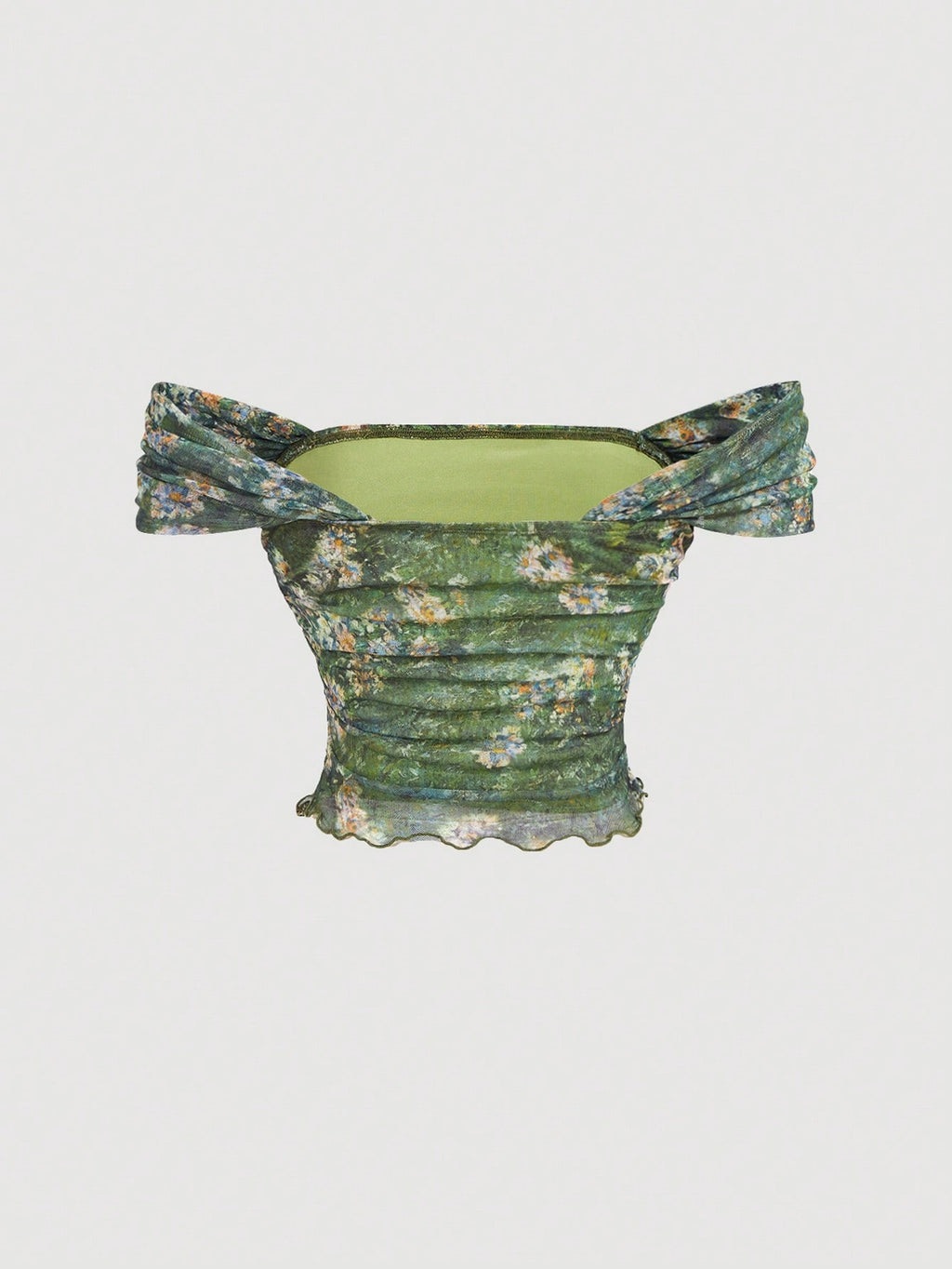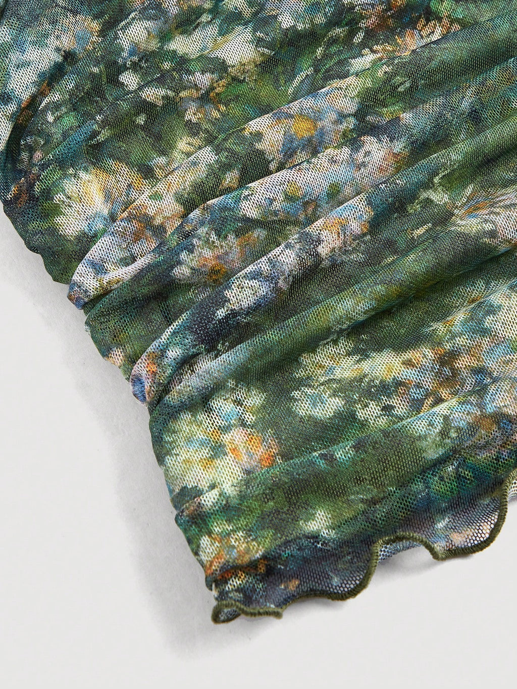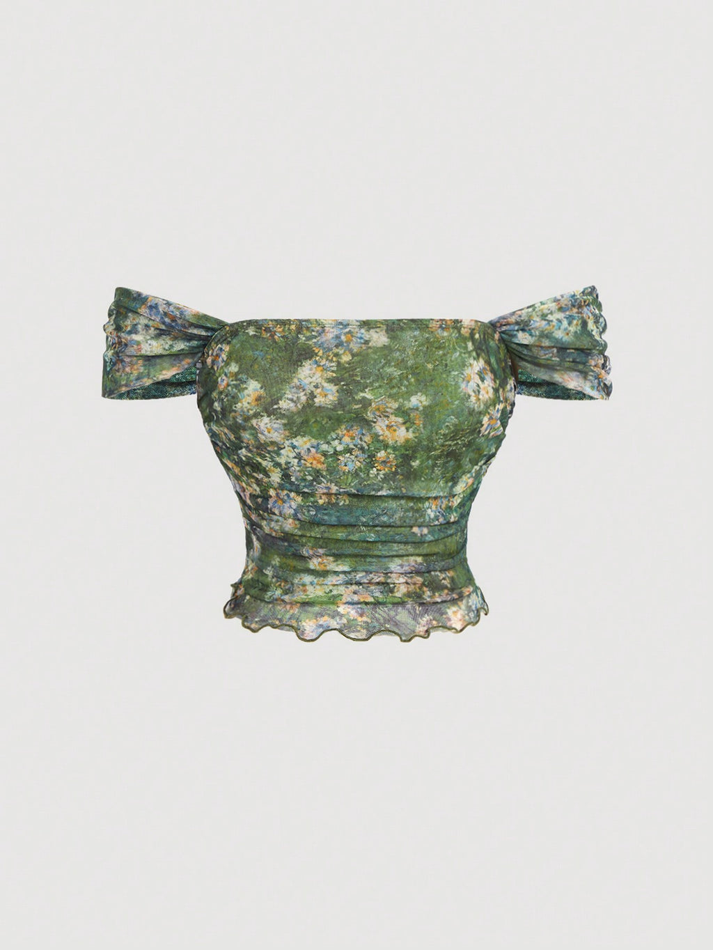 SHEIN MOD Vintage cvjetna mrežasta bluza s otvorenim ramenima, top sa otvorenim ramenima, Vintage Van Gogh slika s printom, Ausgeh-topice Damen, Urlaubsoutfits, Vintage Kleidung Damen
