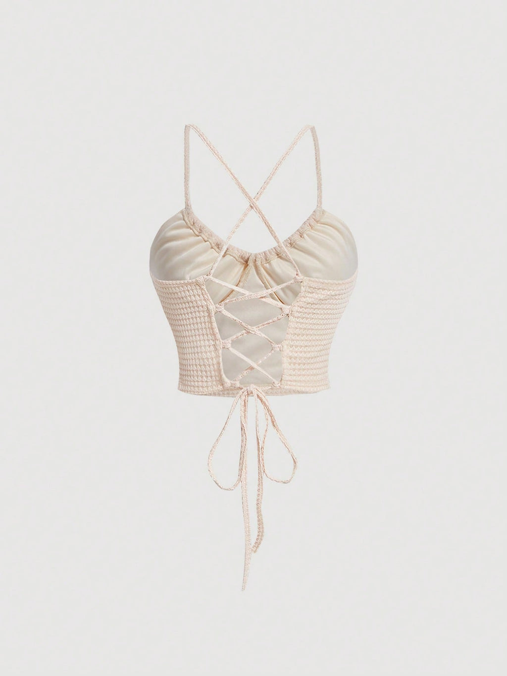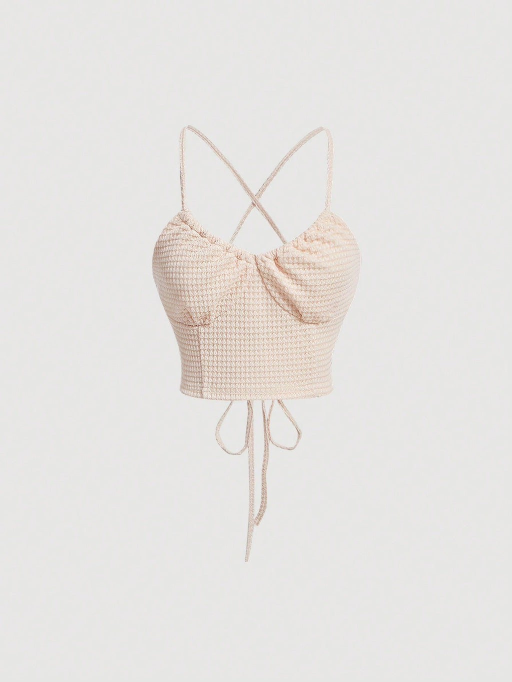 SHEIN MOD Karirani top bez naramenica bez pozadi i zavezivanja, idealan za muzičke festivale