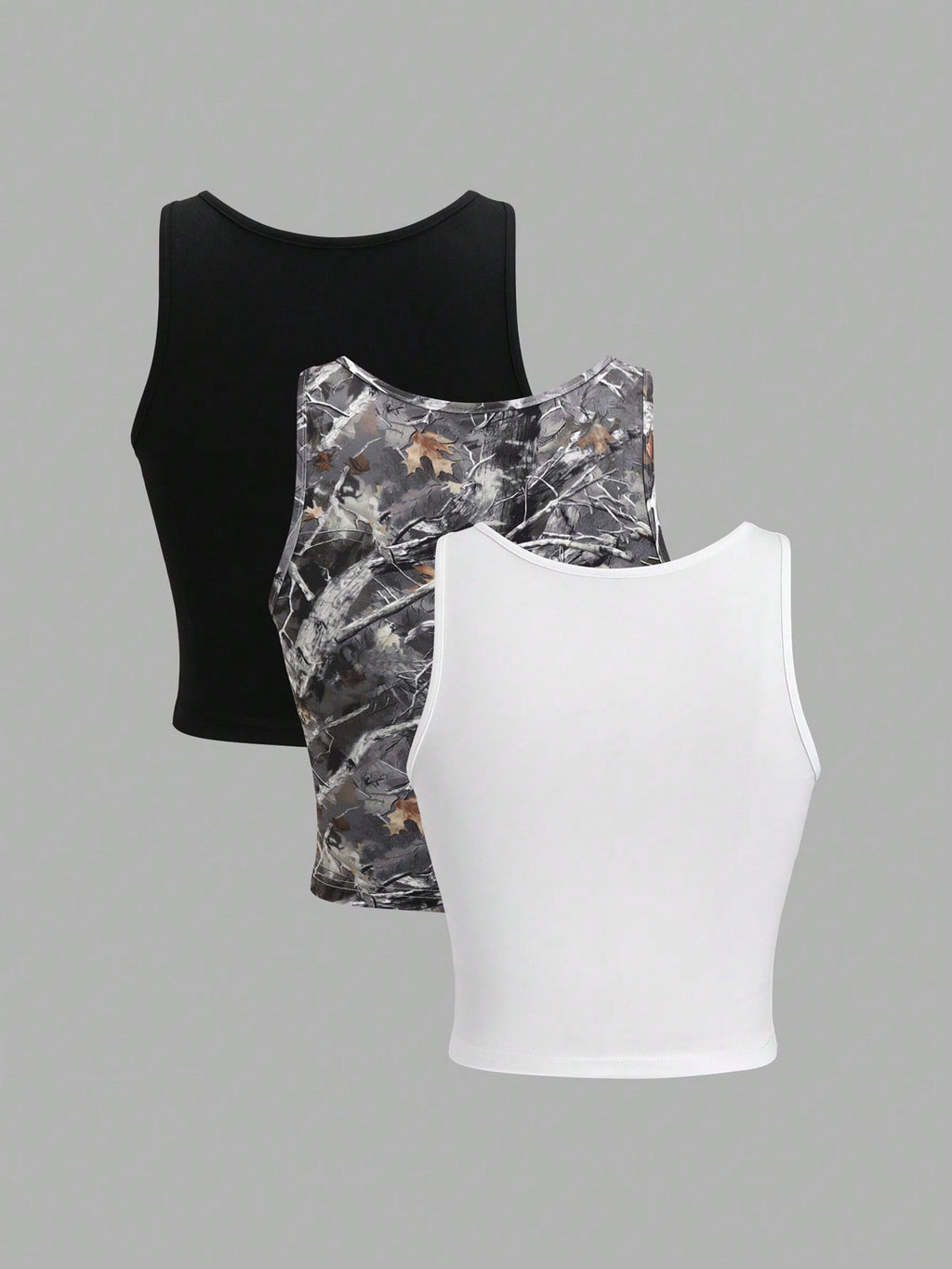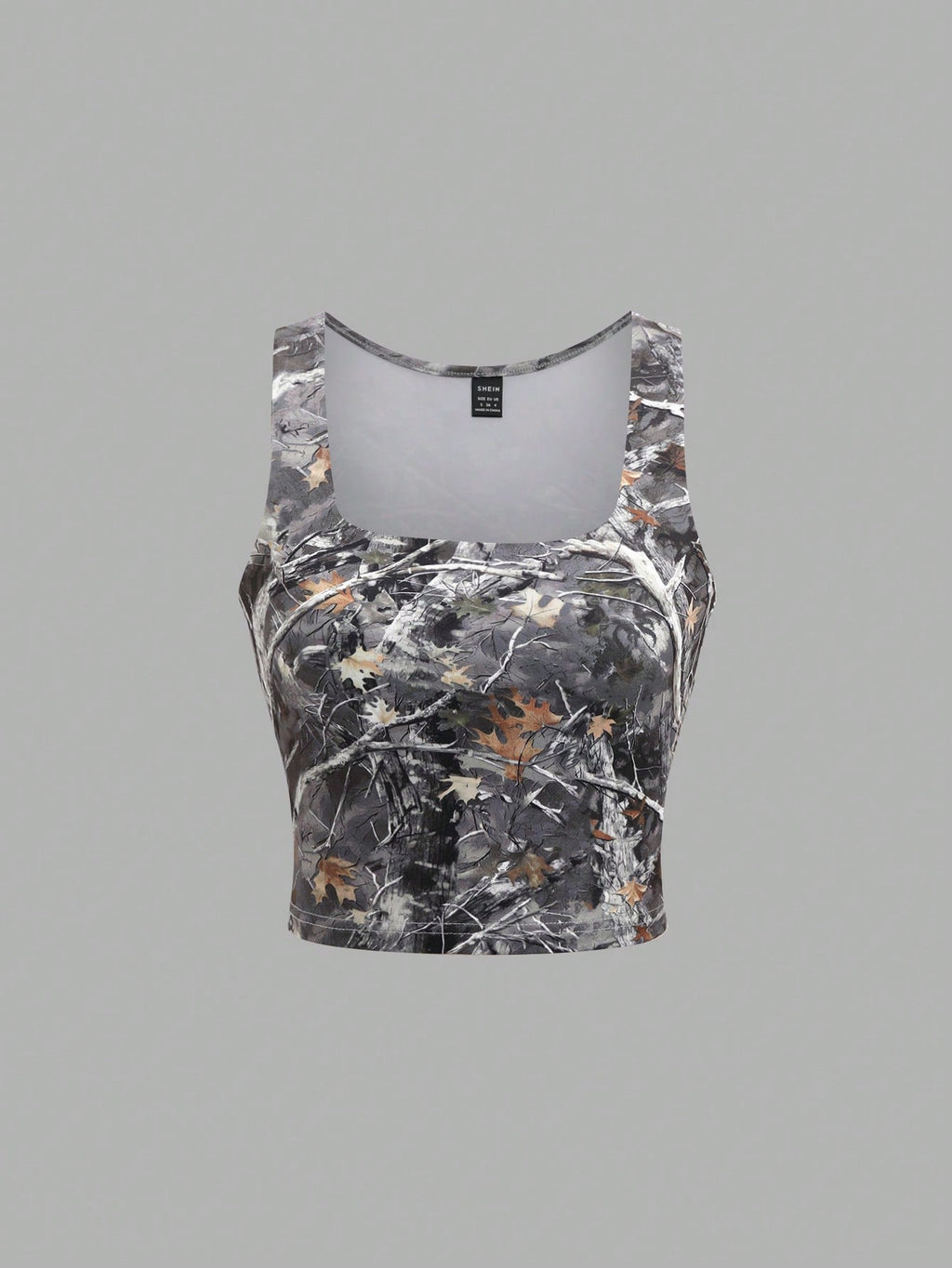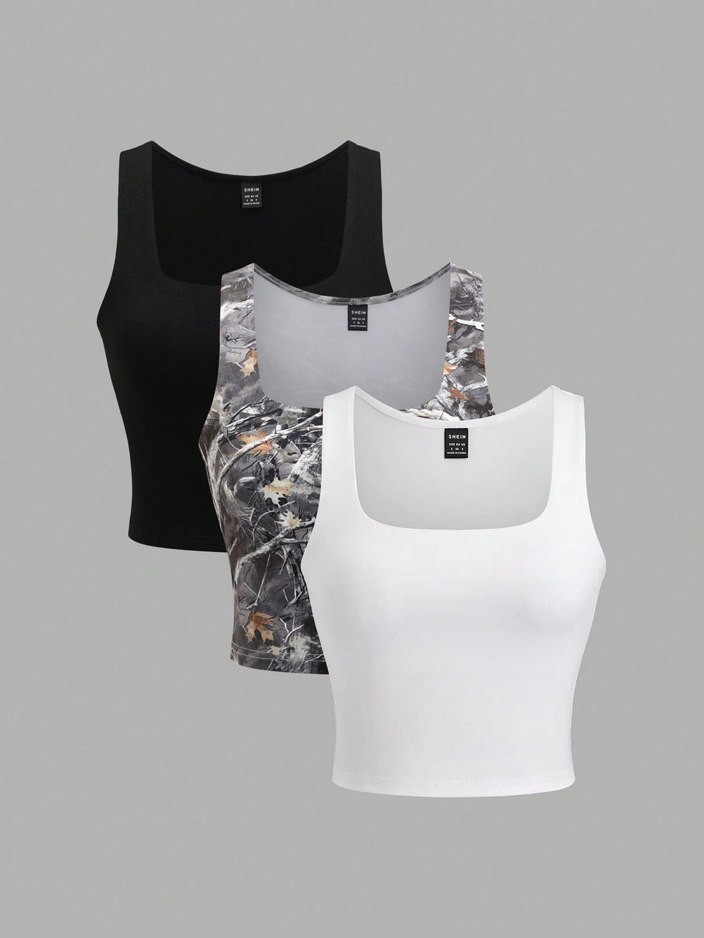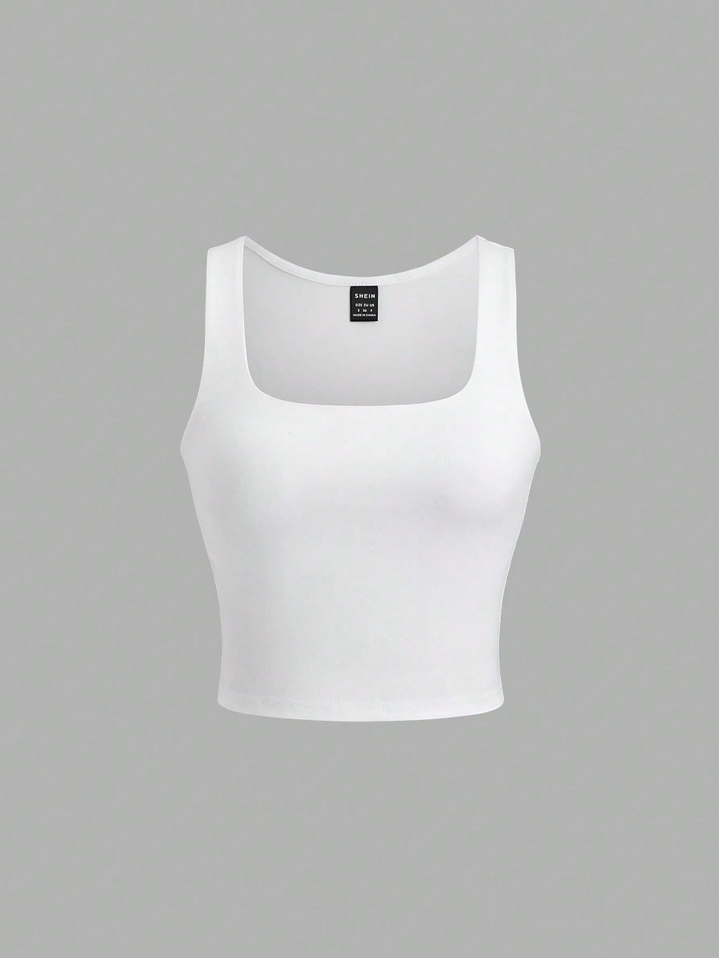 SHEIN MOOSTA 1 komad kratka majica s četvrtastim izrezom s dubokim krojem sa satenskim zrnastim uzorkom
