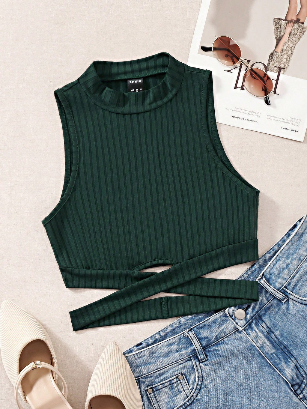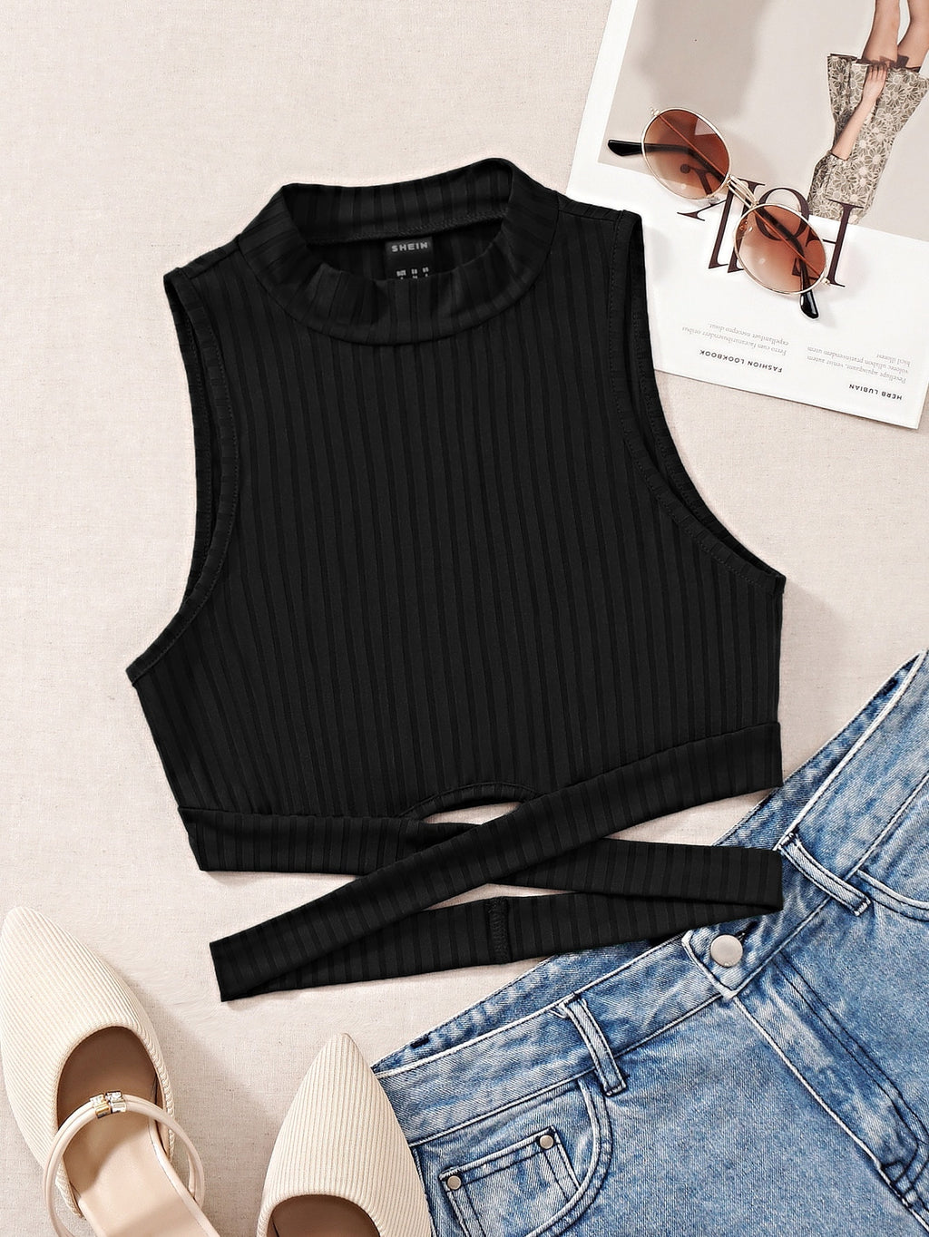 SHEIN MOOSTA majica bez rukava mit Rippenstrick Criss-Cross