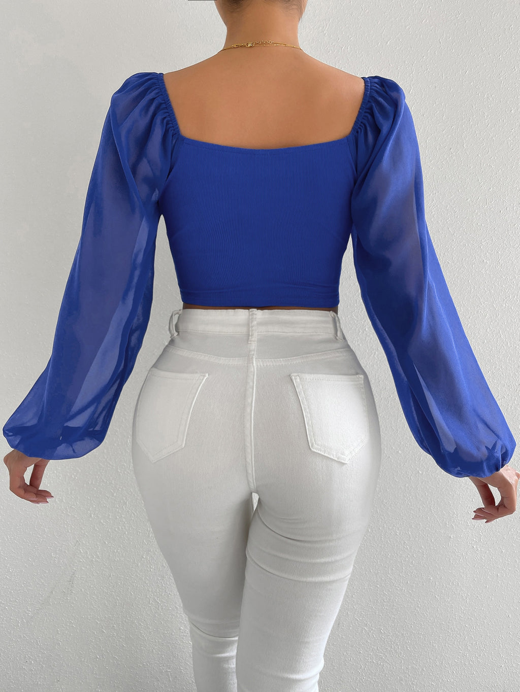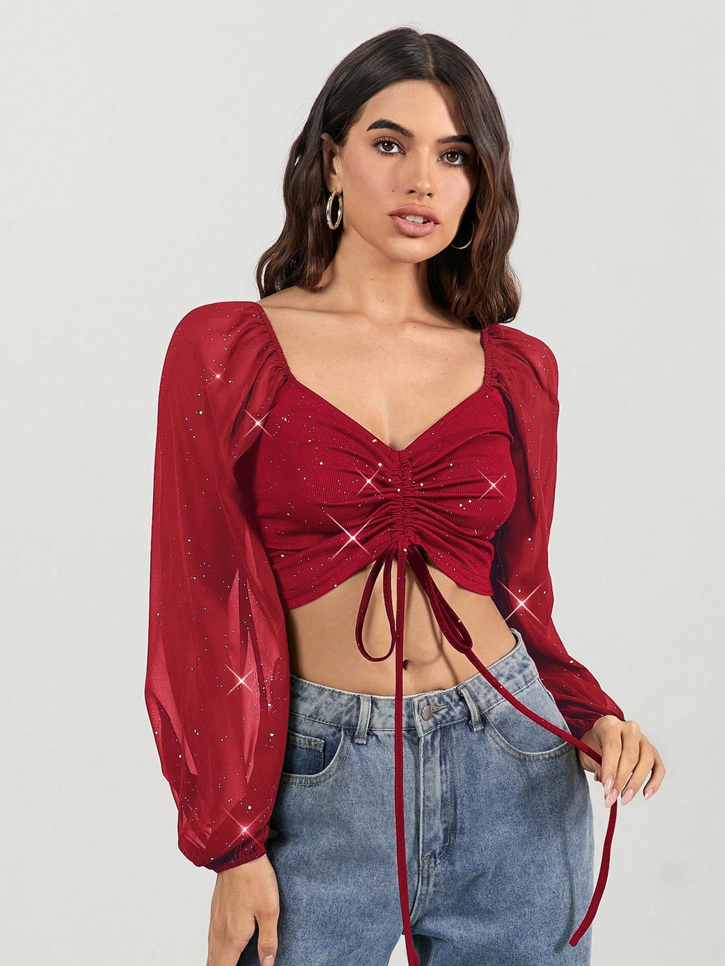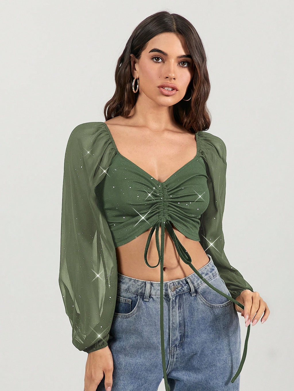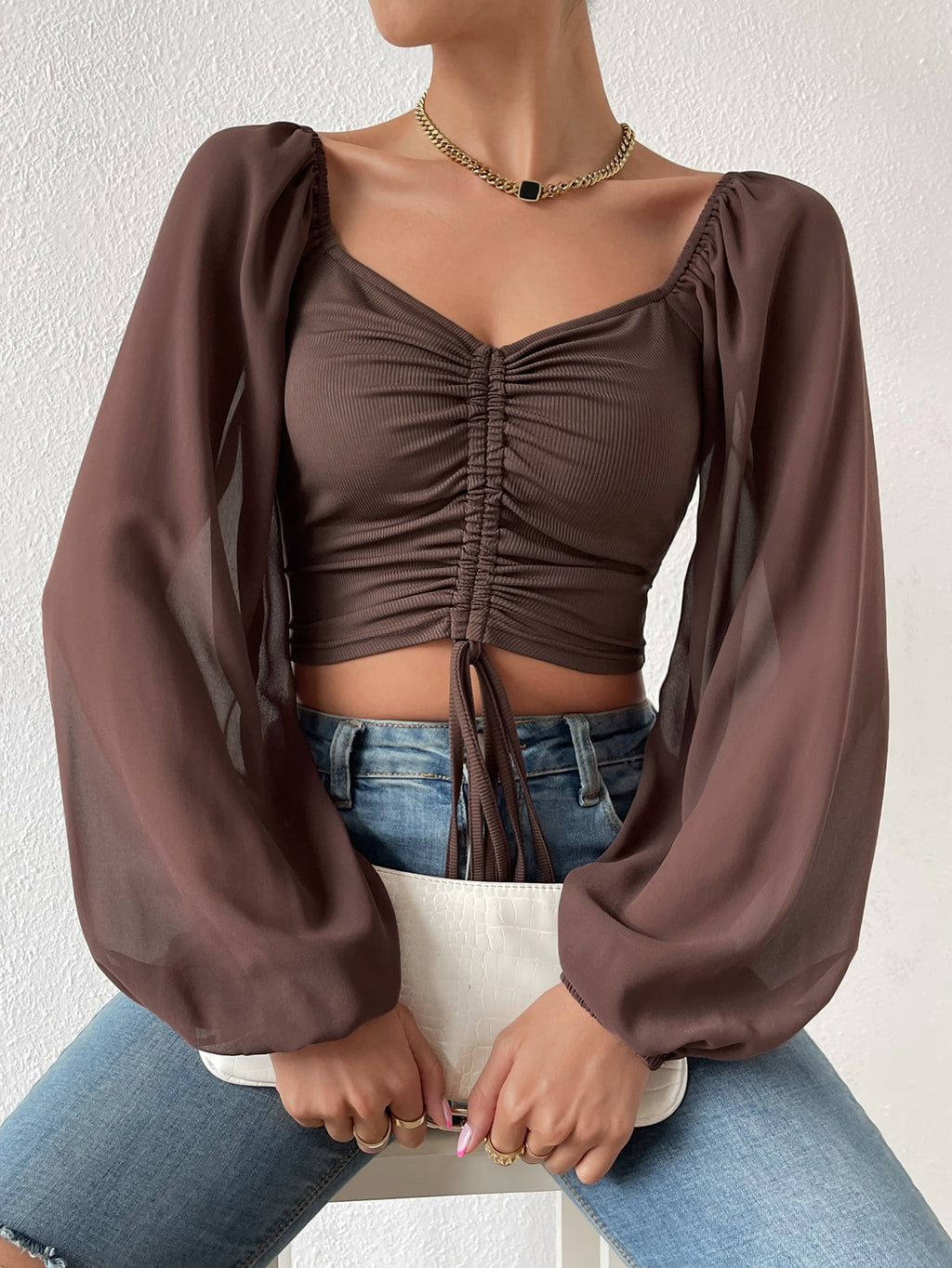 SHEIN Raffinéa izrezana majica sa lantern rukavima i vezicom