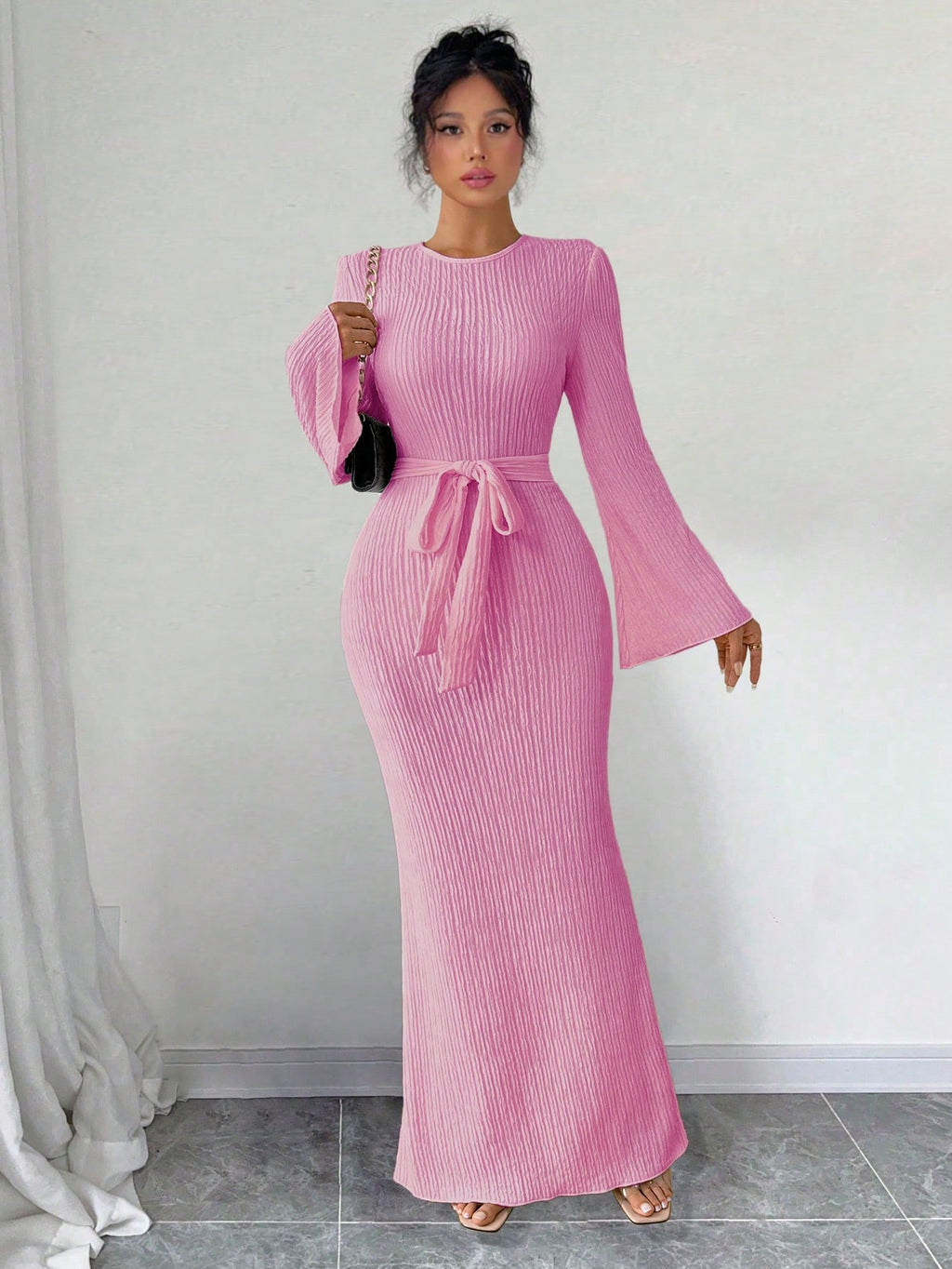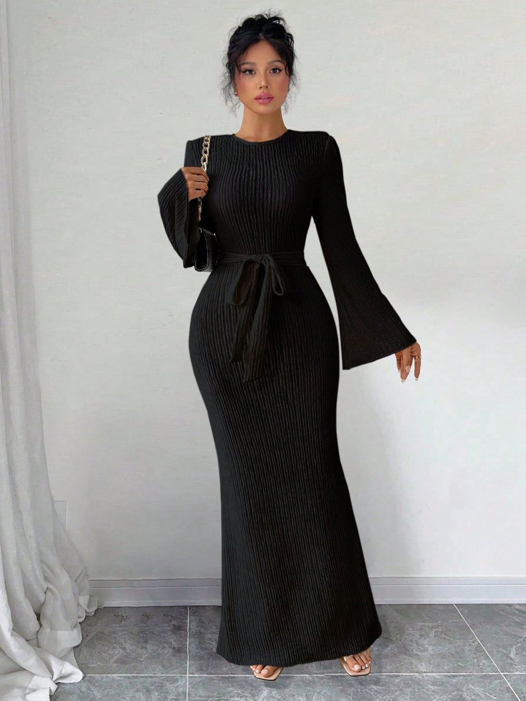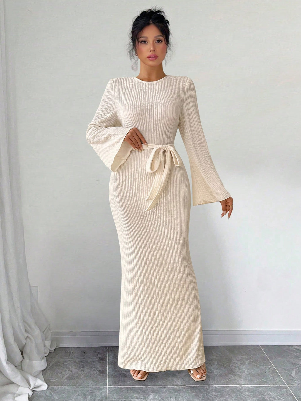 SHEIN Raffinéa ženska elegantna jednobojna haljina zvonastih rukava, proljeće