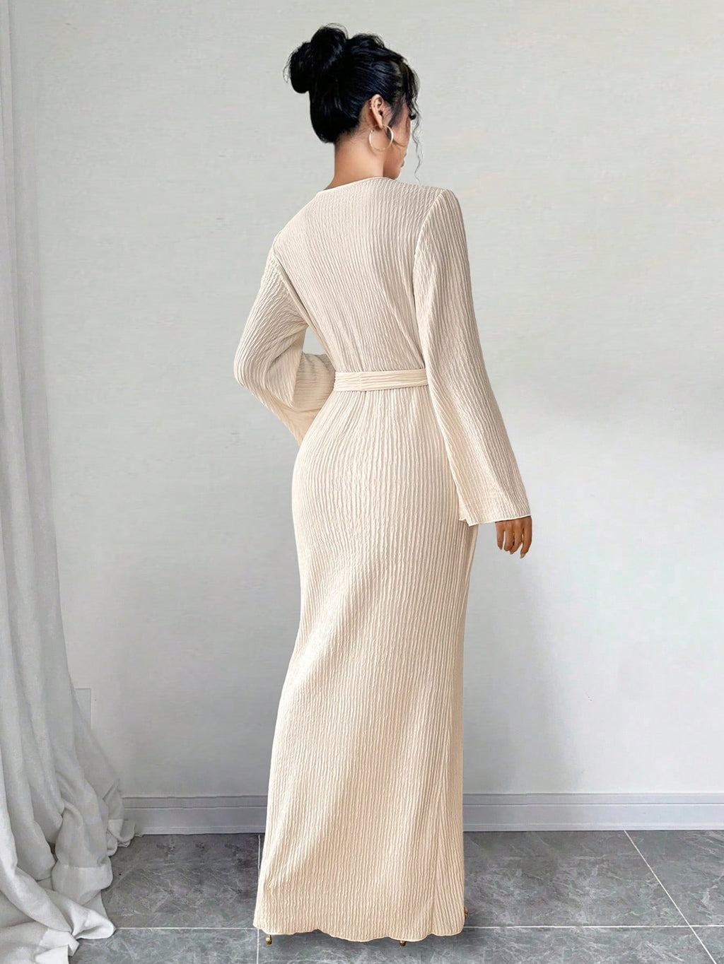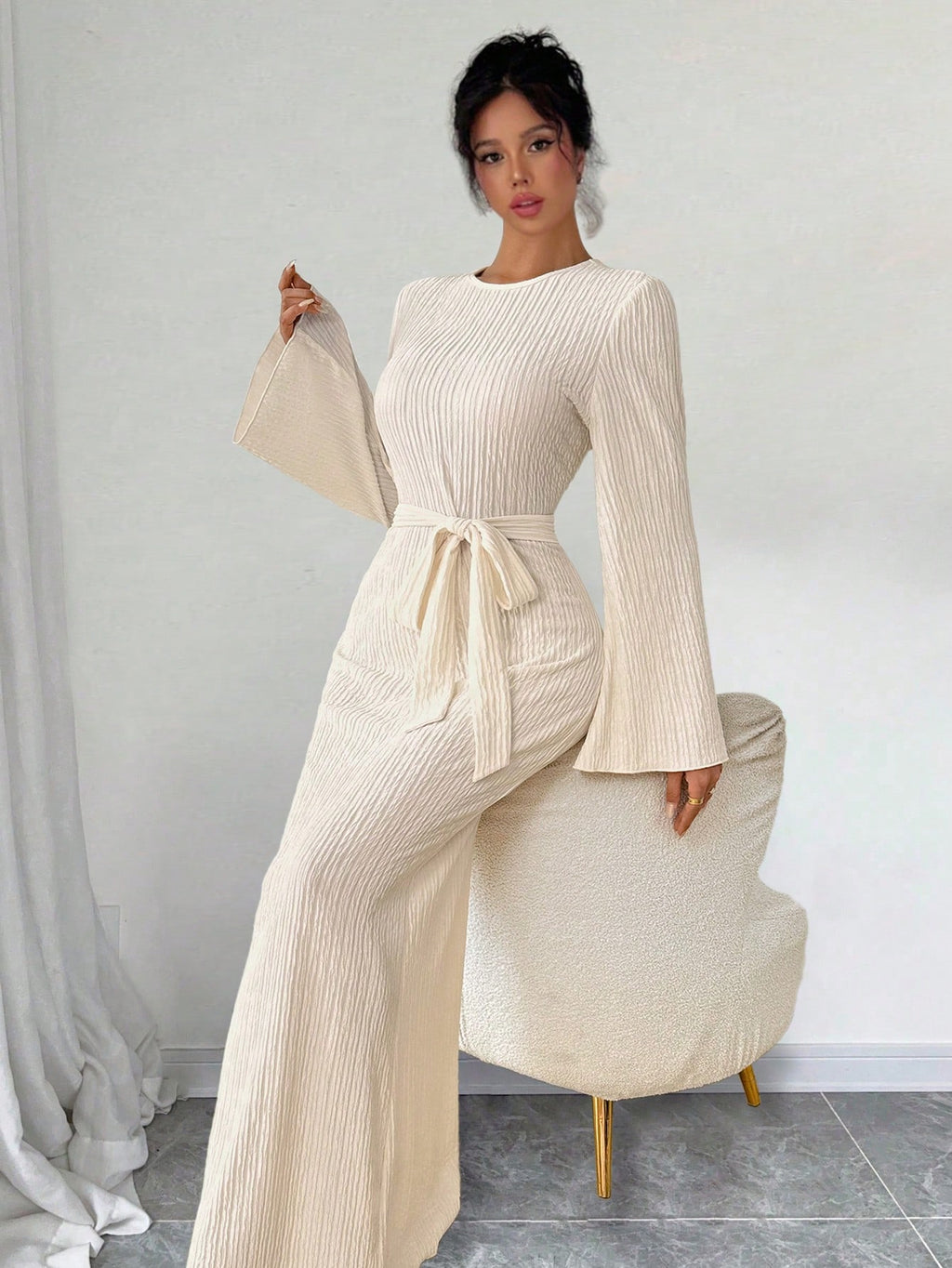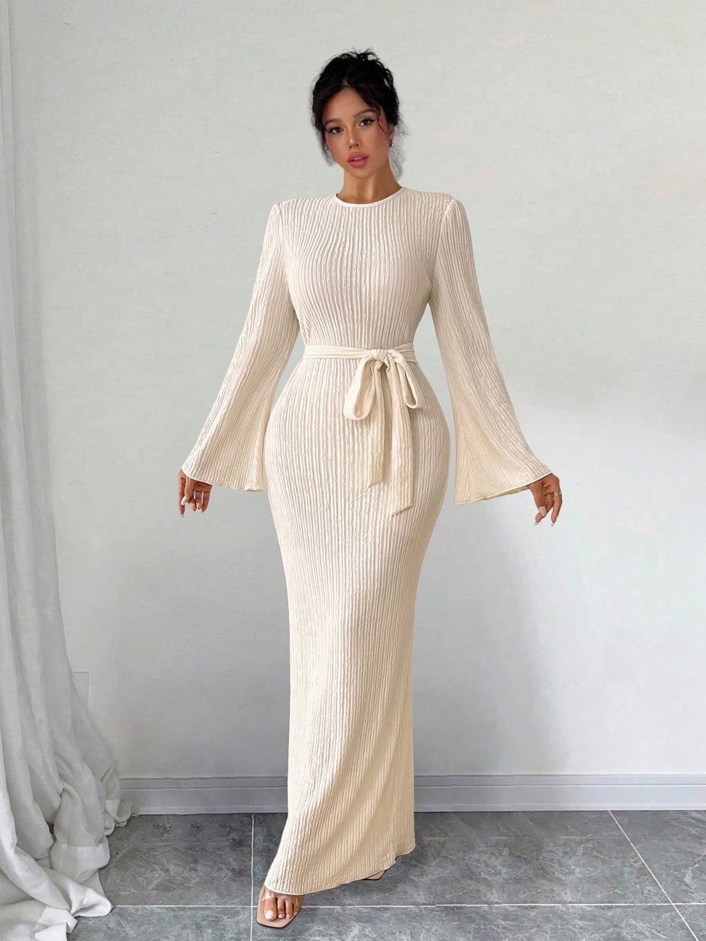 SHEIN Raffinéa ženska elegantna jednobojna haljina zvonastih rukava, proljeće