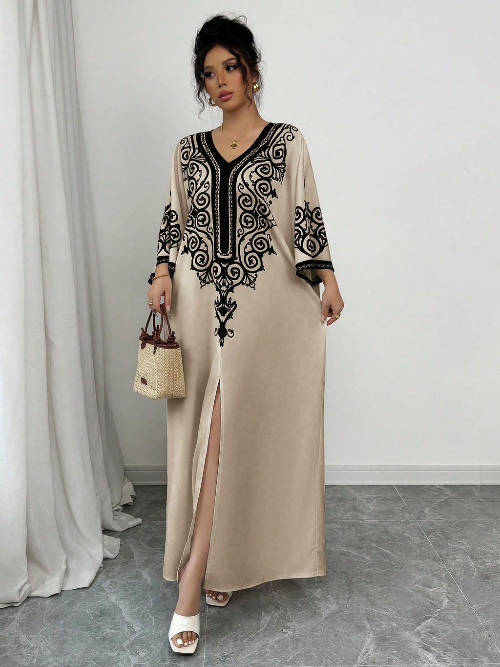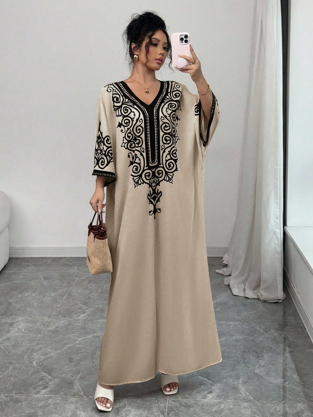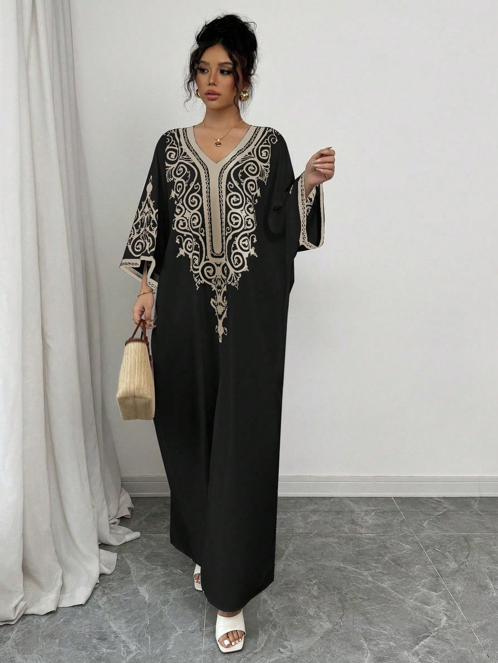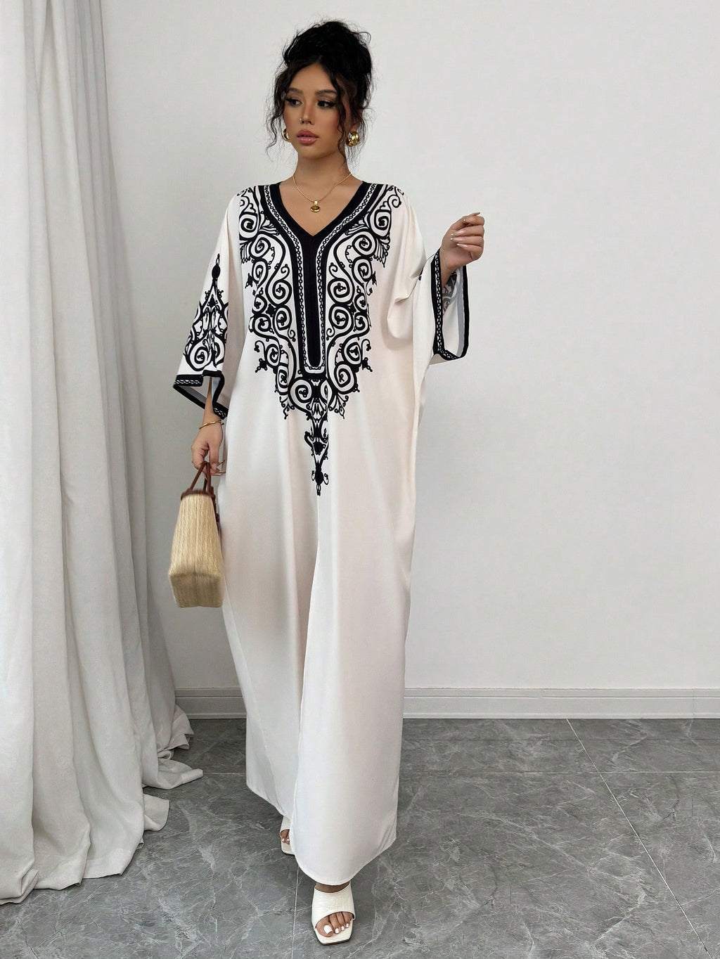 SHEIN Raffinéa ženska haljina s V-izrezom s ispisom šišmiših rukava sa strane