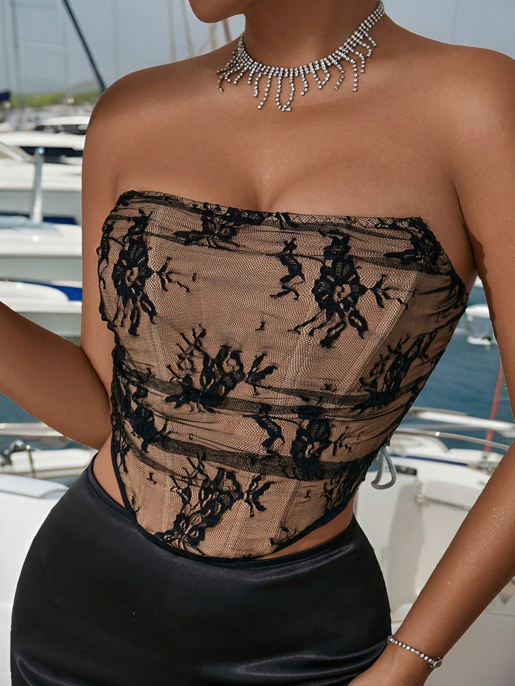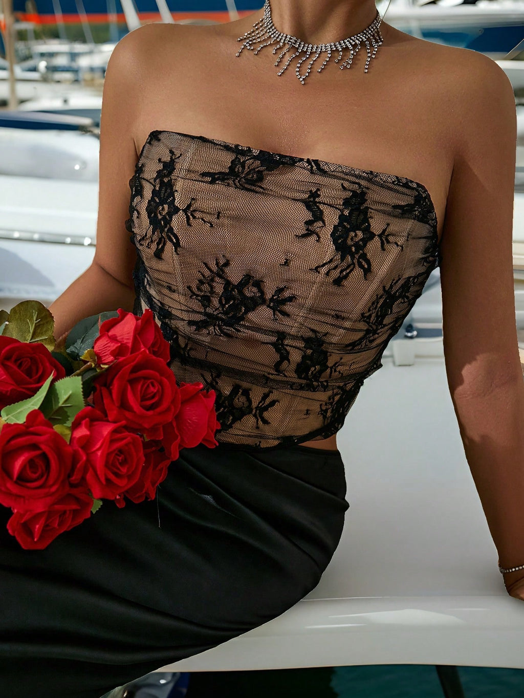 SHEIN X Ignacia Antonia Allurite Damen Ärmellose Tops mit kontrastierenden Farben, verschiedenen Kombinationen und Fischgräten-Spitze