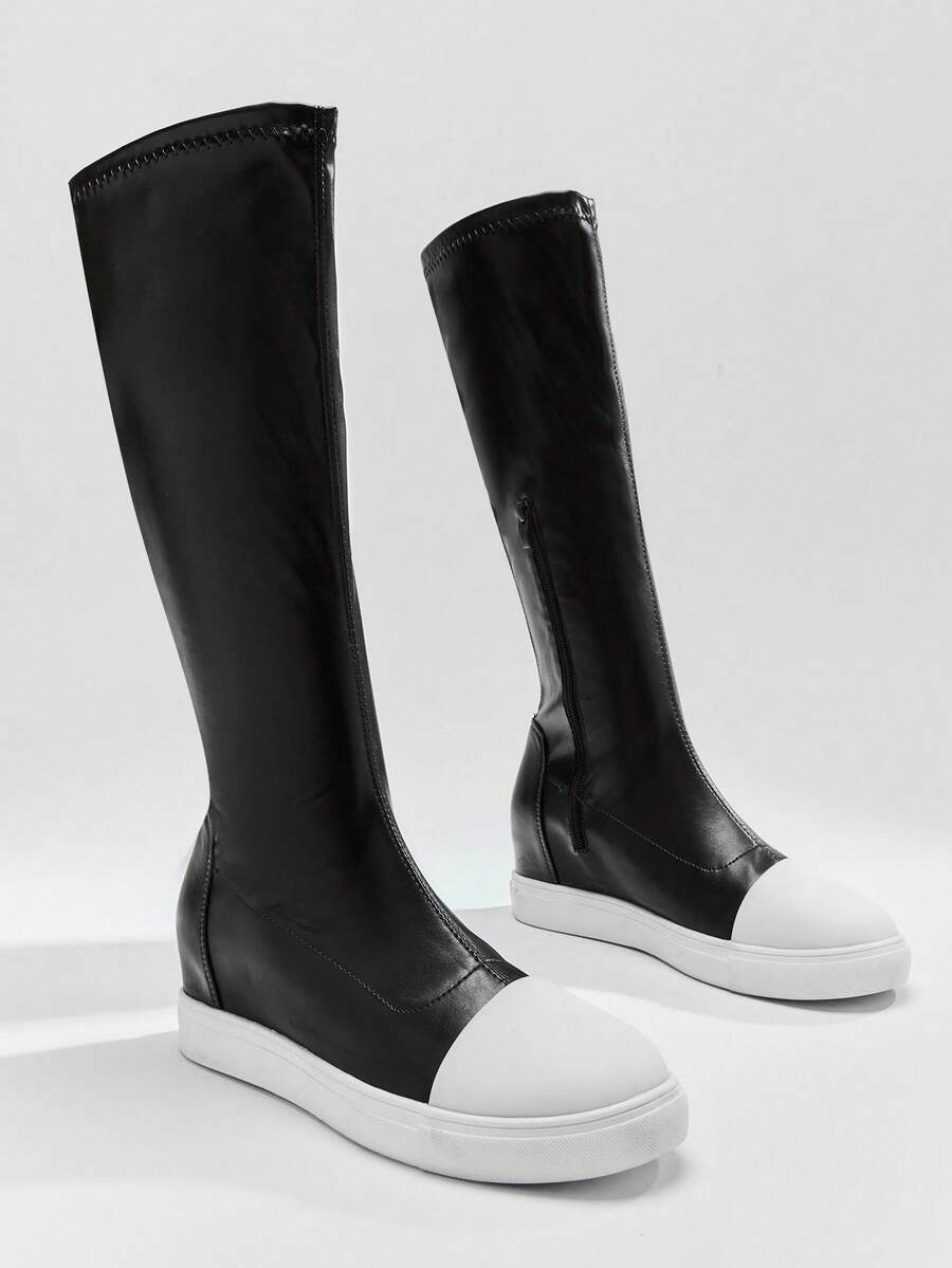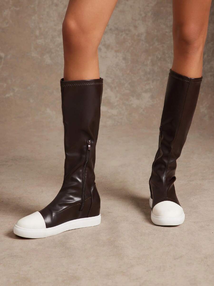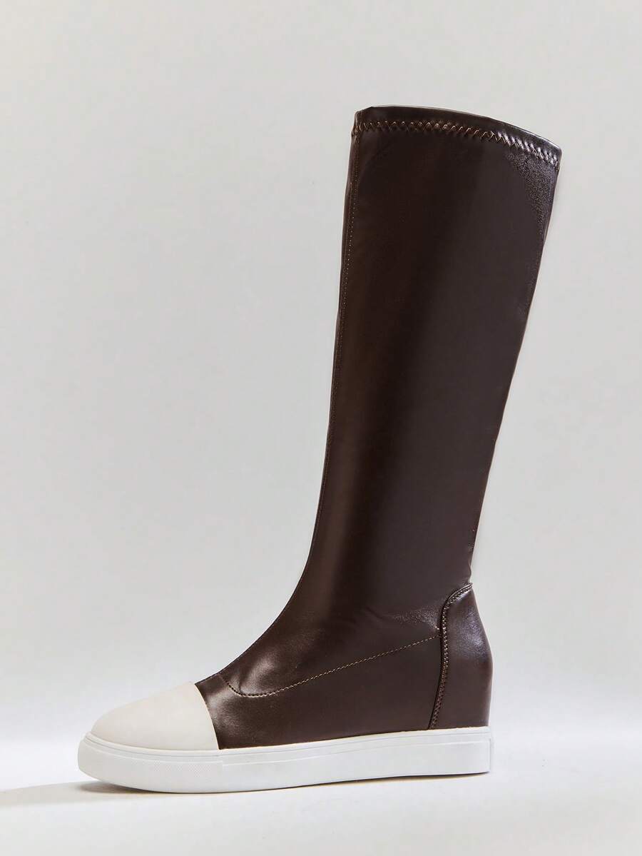 SHUZIA Ženske Elegantne Čizme od Faux Kože sa Udobnom Lug Potpeticom do Koljena