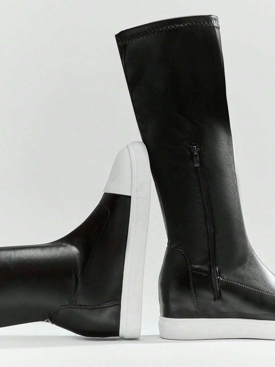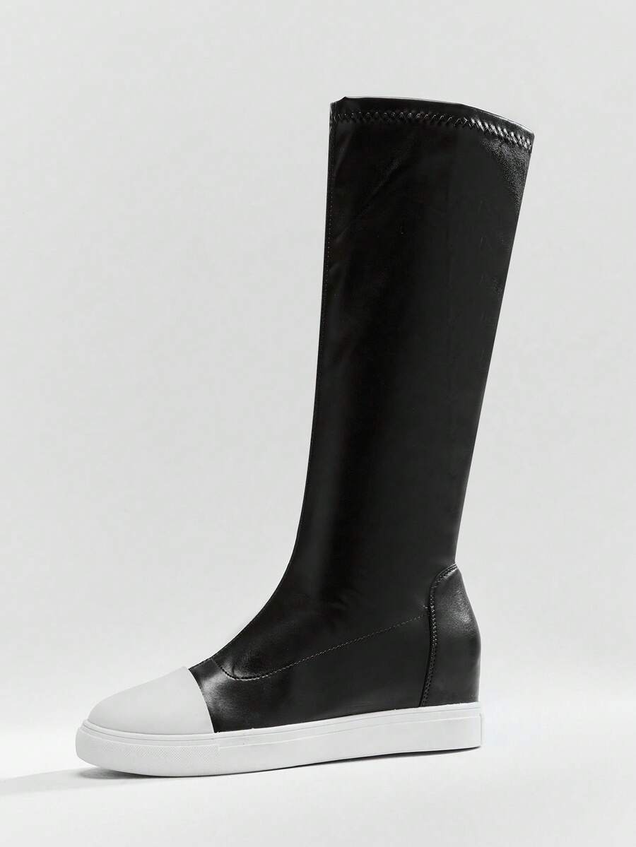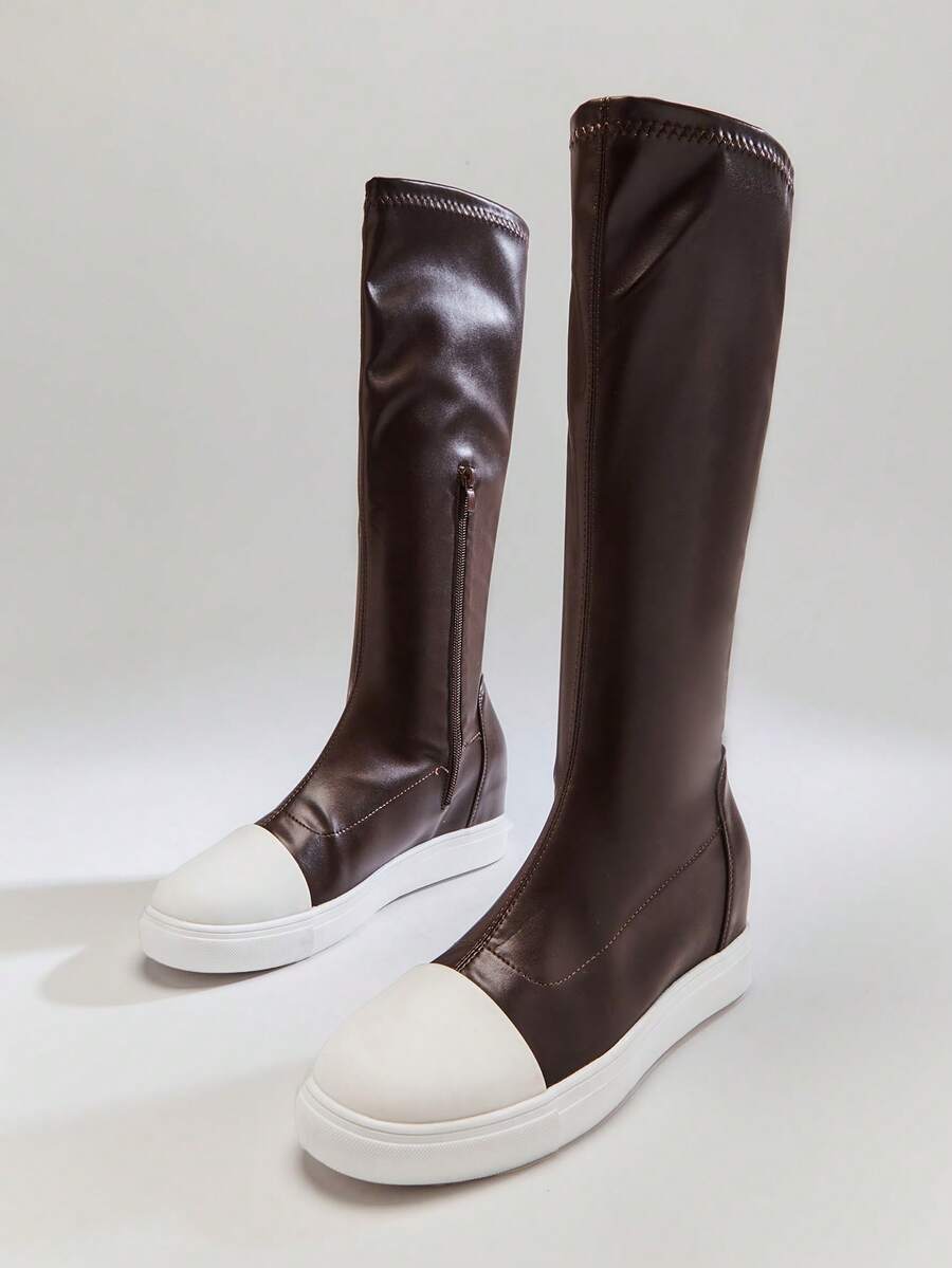SHUZIA Ženske Elegantne Čizme od Faux Kože sa Udobnom Lug Potpeticom do Koljena
