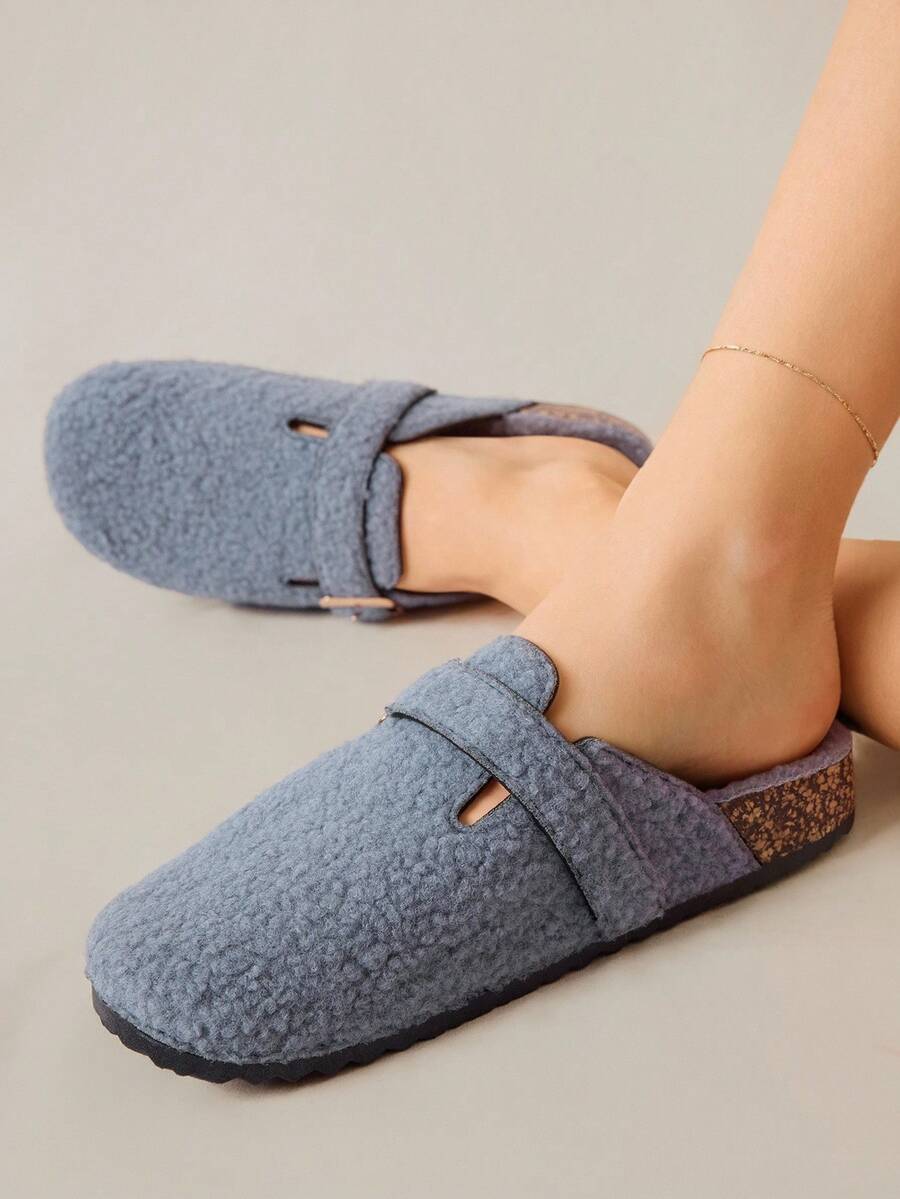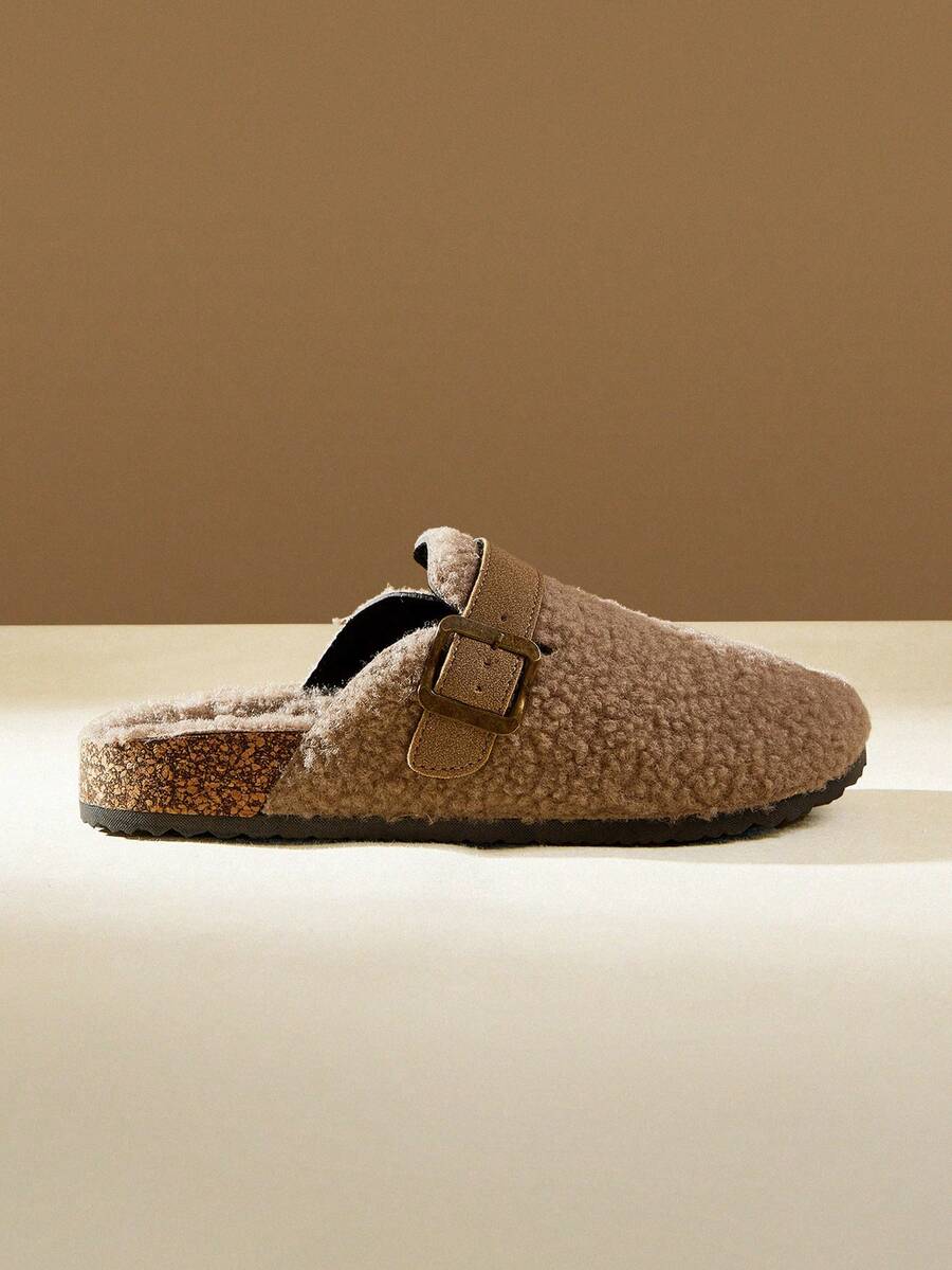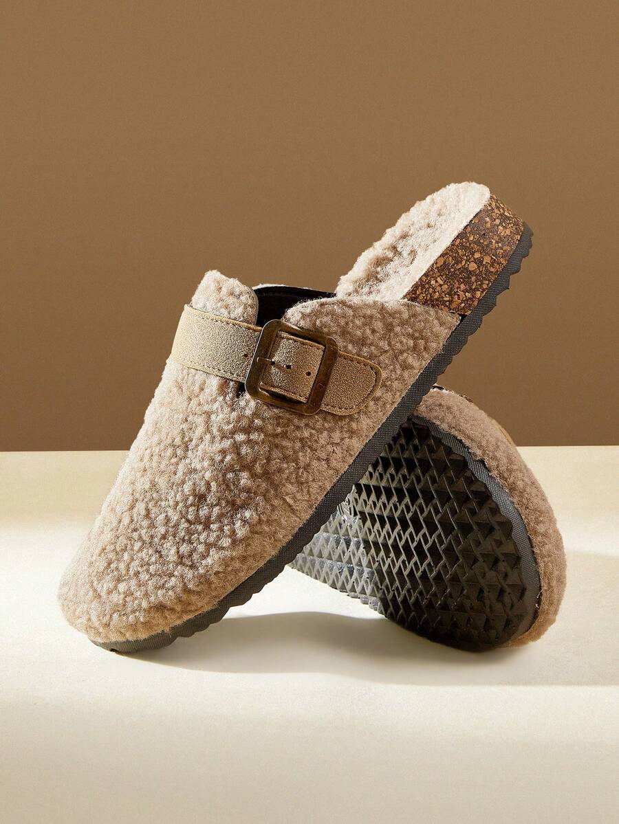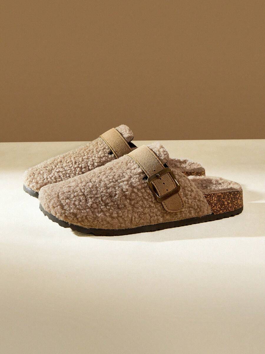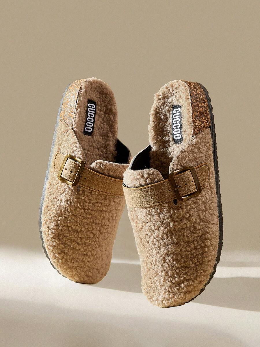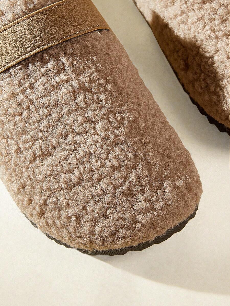 Solecia Khaki Fuzzy Strap Flats, Moda za Putovanje, Kupovinu, Kod Kuće, Odmor