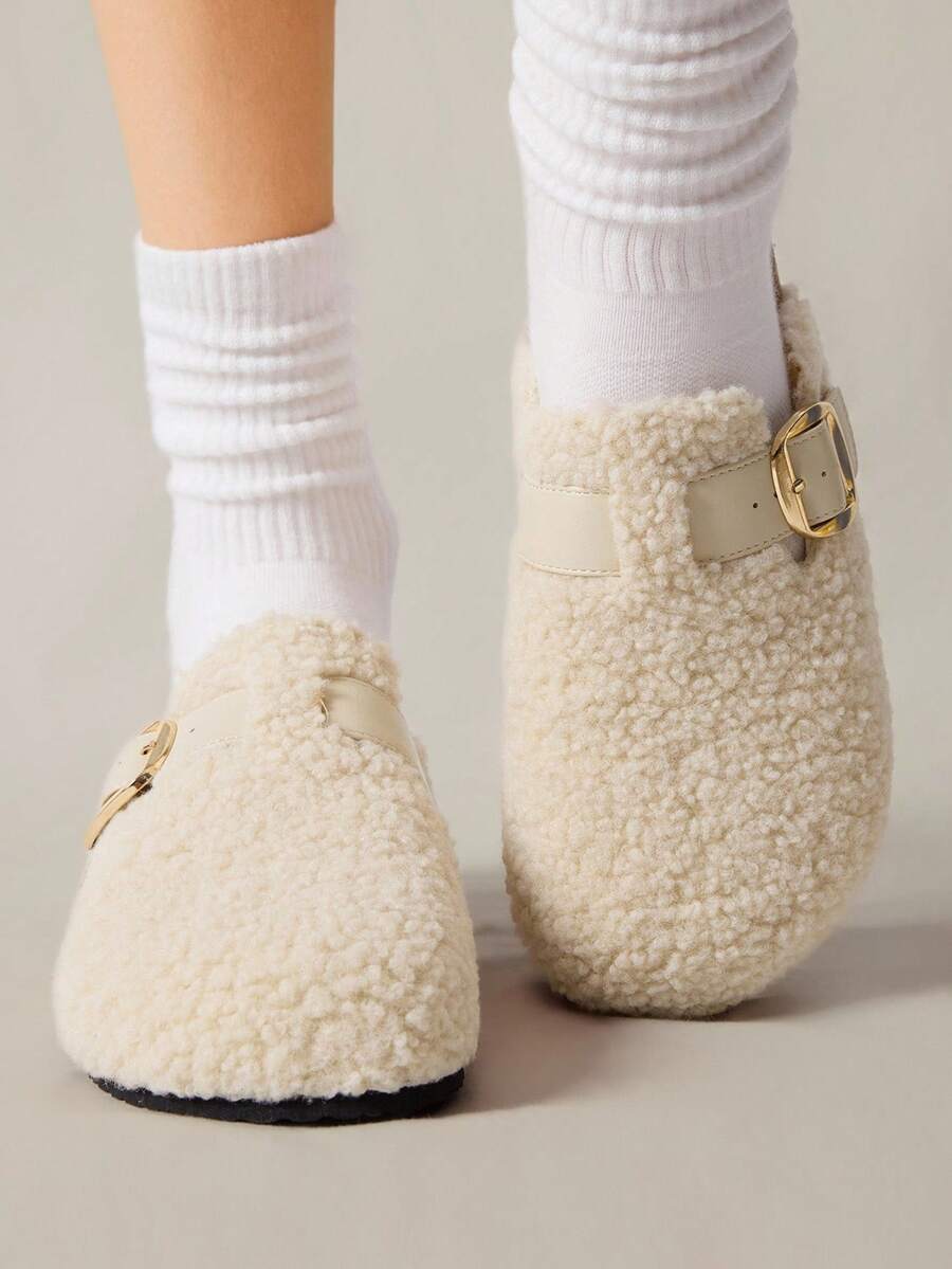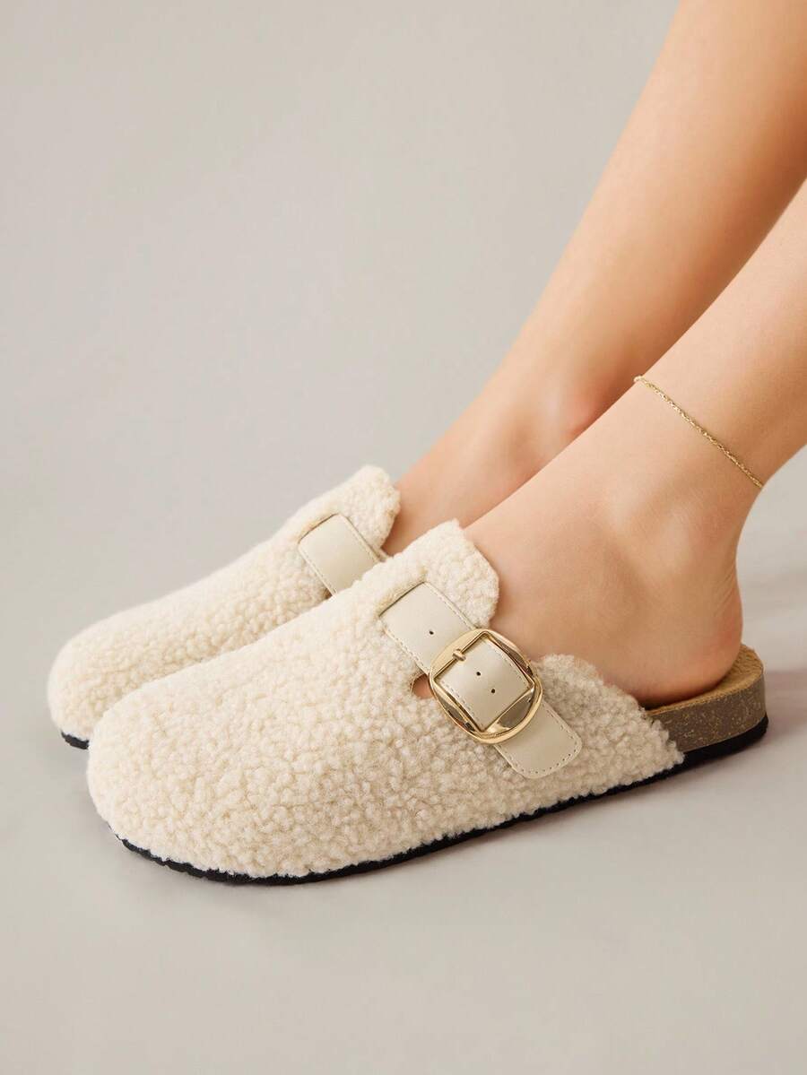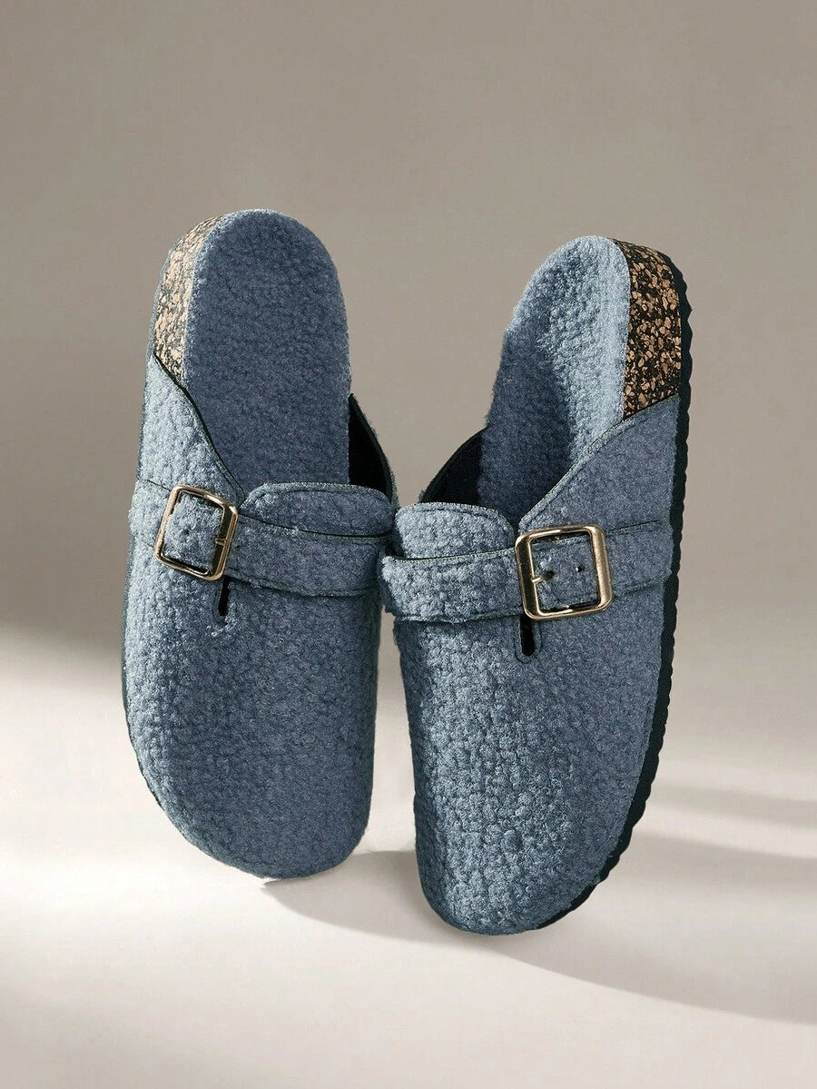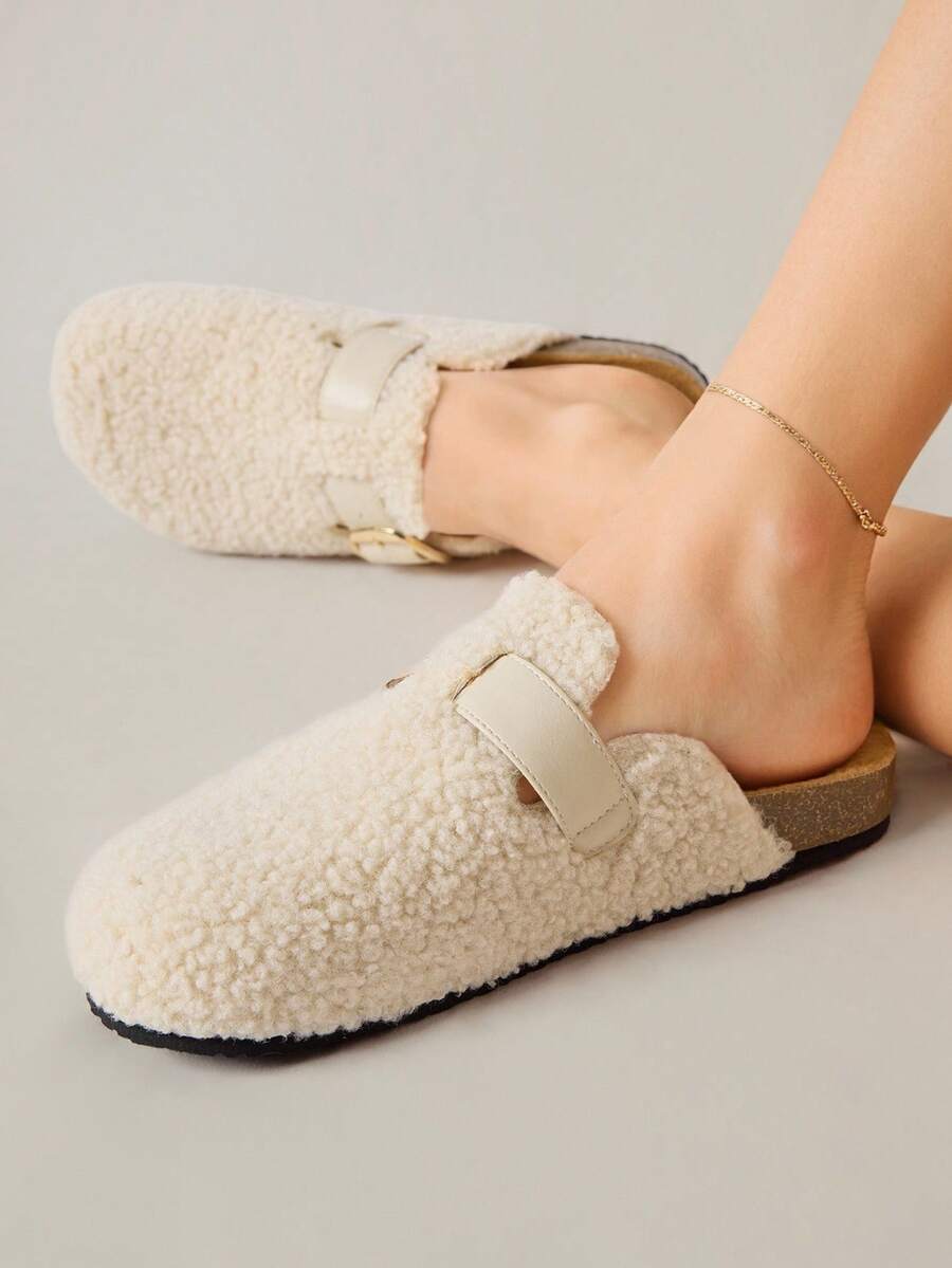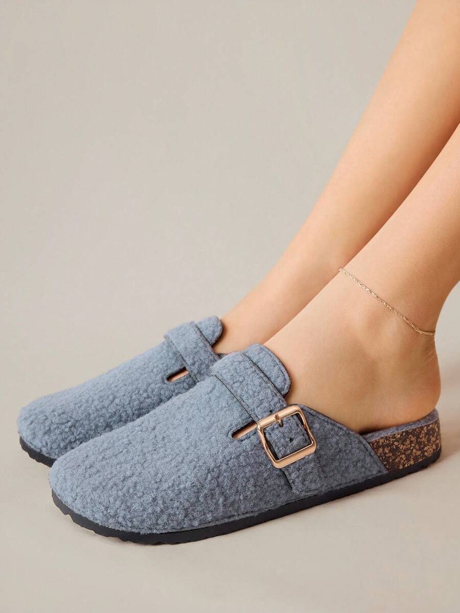 Solecia Khaki Fuzzy Strap Flats, Moda za Putovanje, Kupovinu, Kod Kuće, Odmor