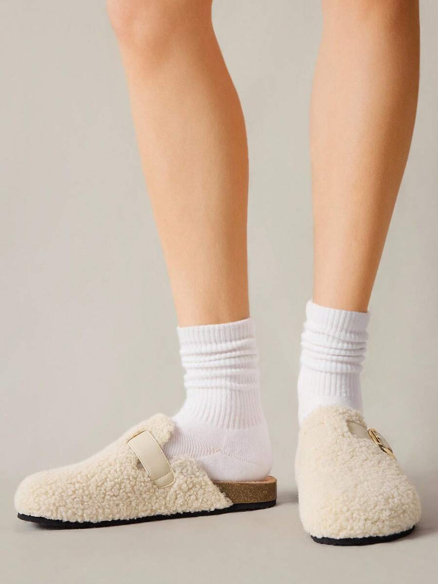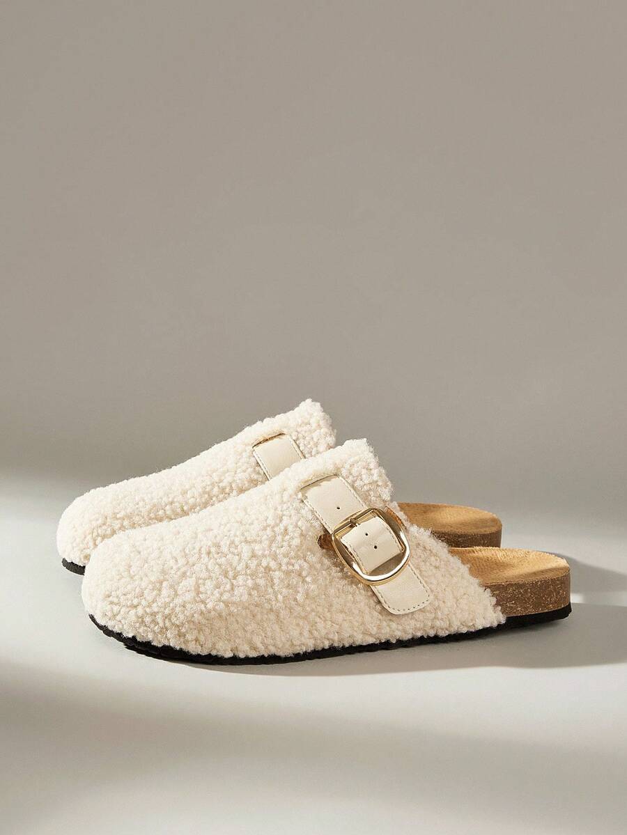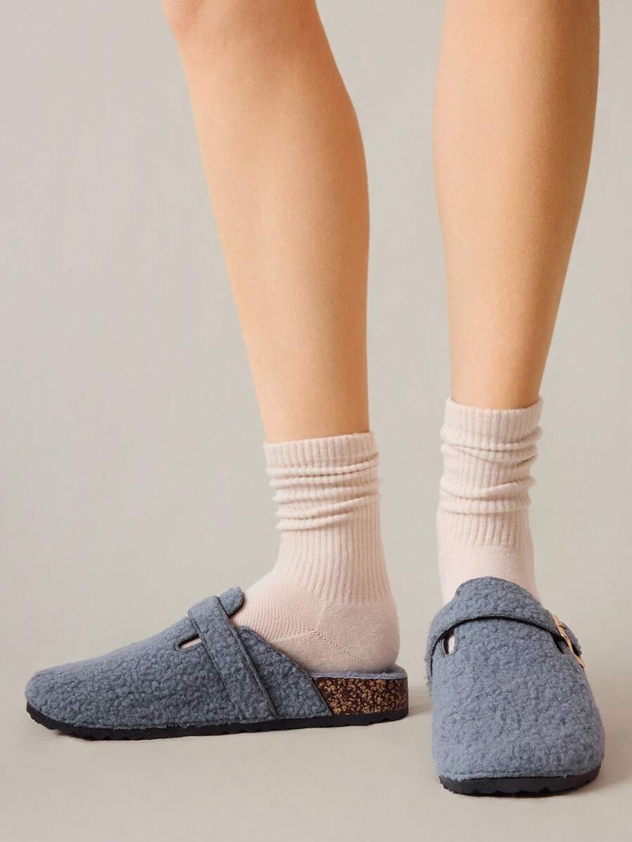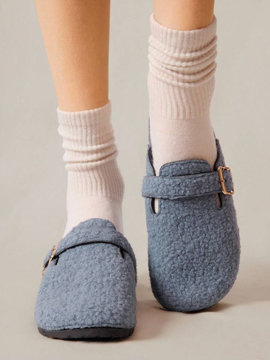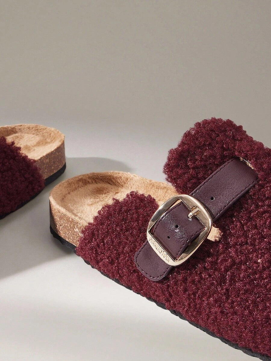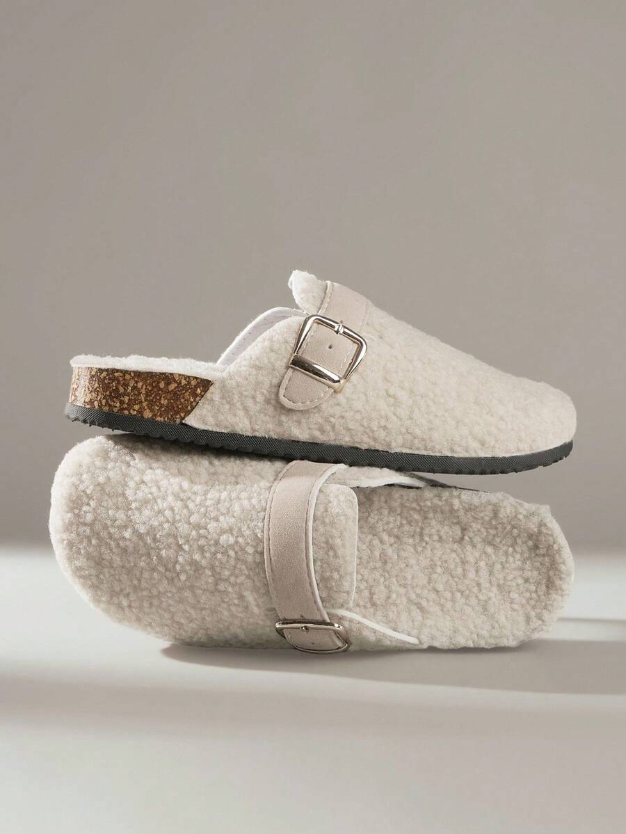 Solecia Khaki Fuzzy Strap Flats, Moda za Putovanje, Kupovinu, Kod Kuće, Odmor