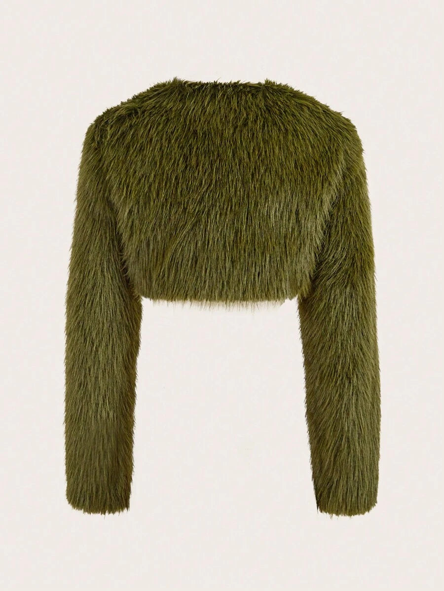 Sweetina bijeli modni kaput s dugim rukavima, mekanom (pahuljastom) teksturom i otvorenim prednjim dijelom, idealan za jesen i zimu