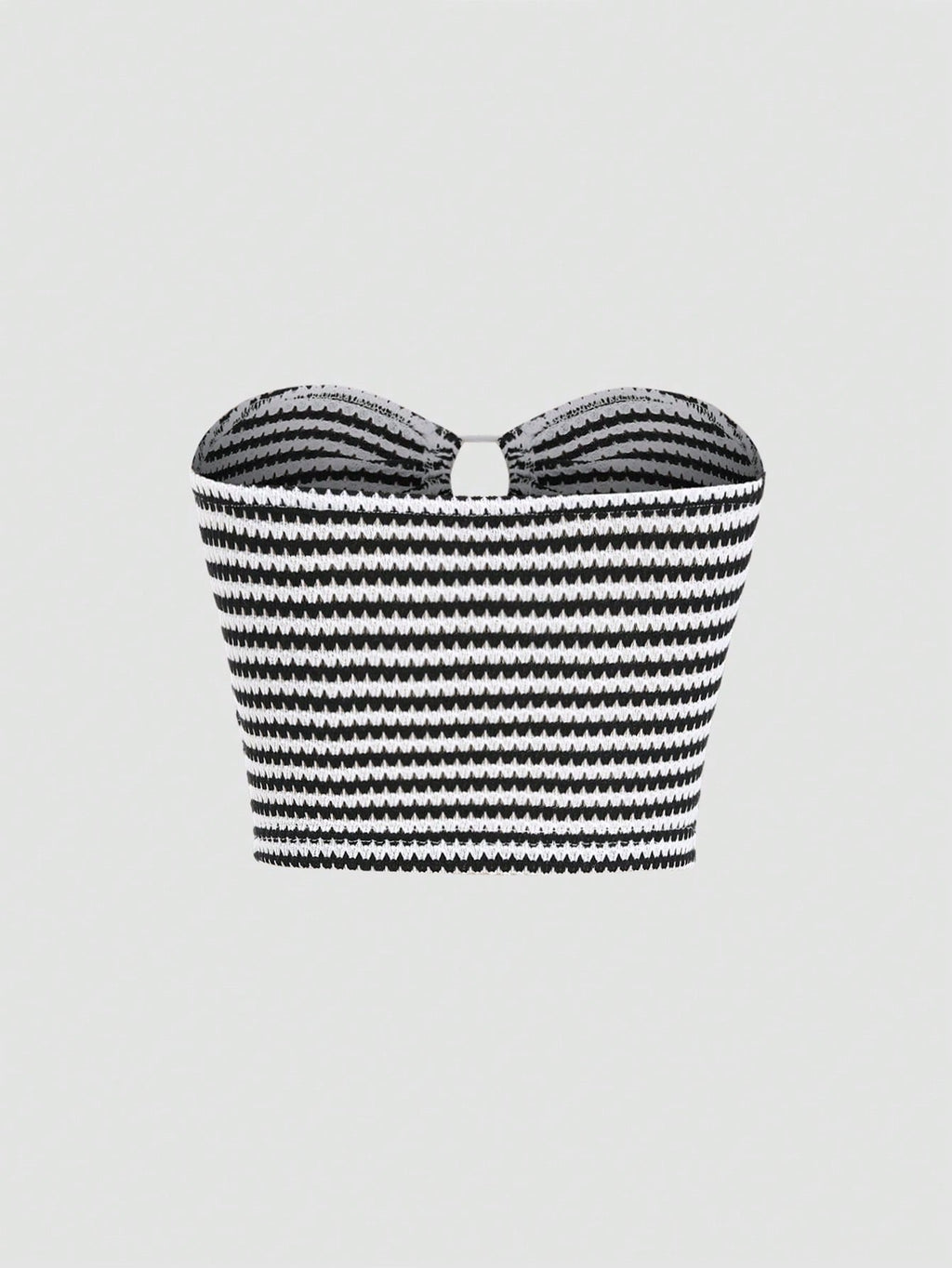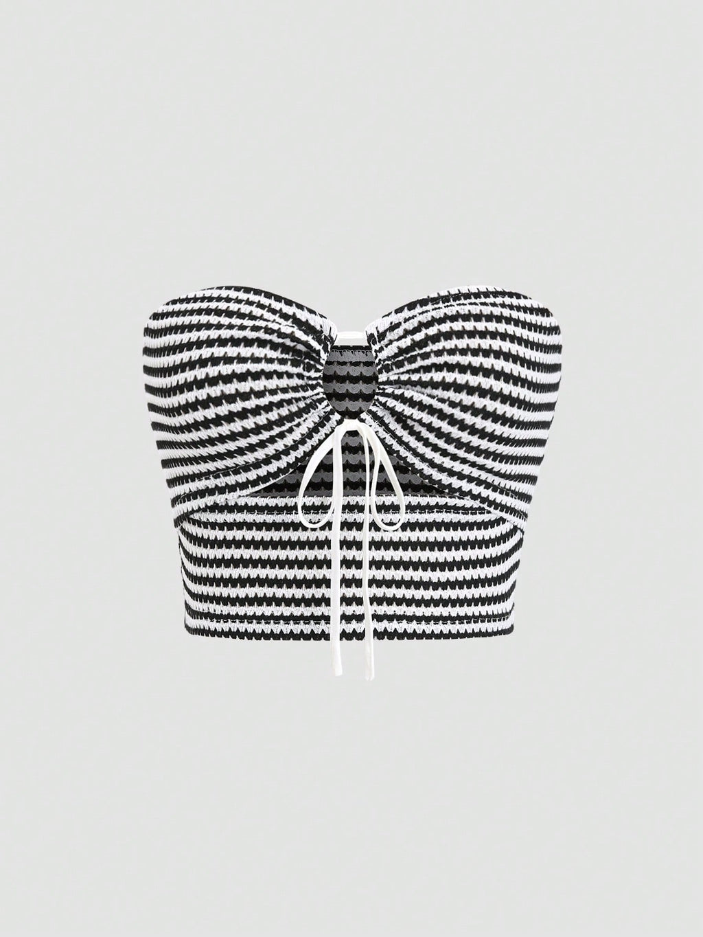 Sweetra ženska prugasta ležerna majica s trakom s detaljima čvorova i izdubljenim za ljeto