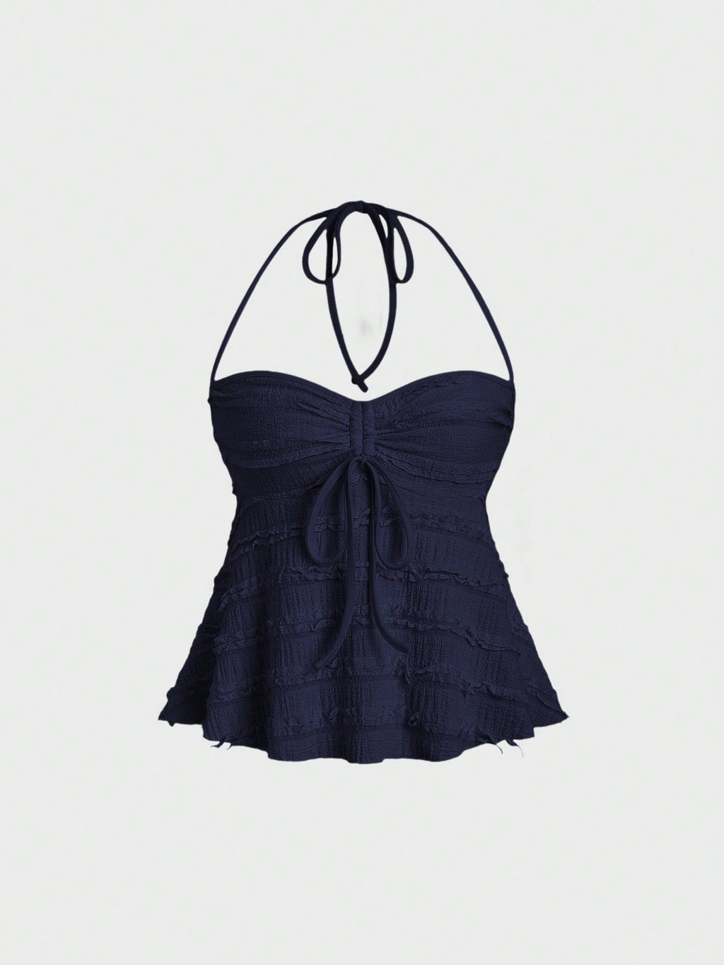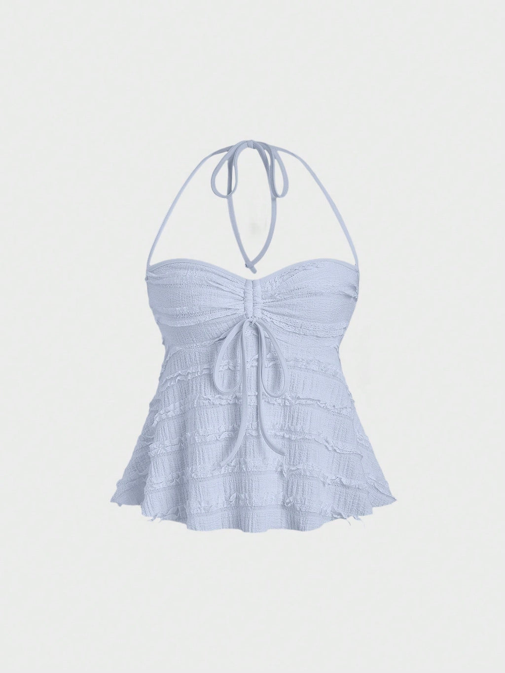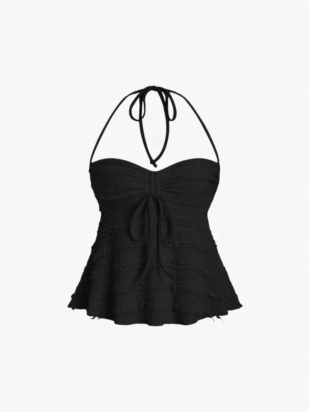 Sweetra Einfarbige sexy majica bez rukava für den Sommer mit Kordelzug und Halterungen am Rücken