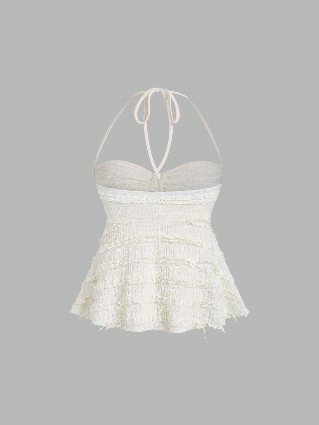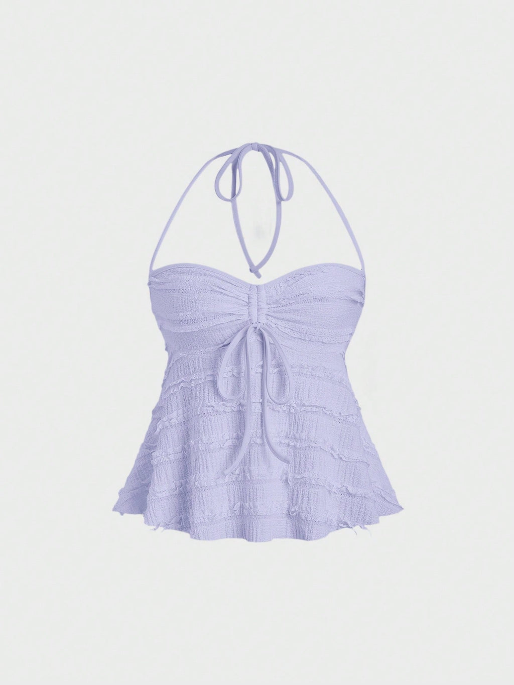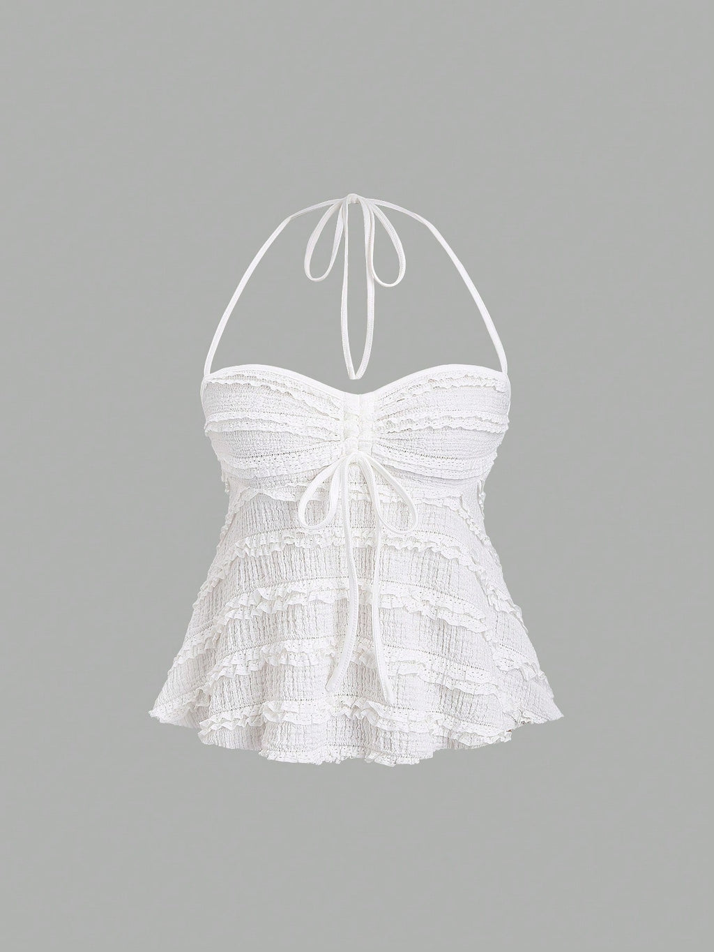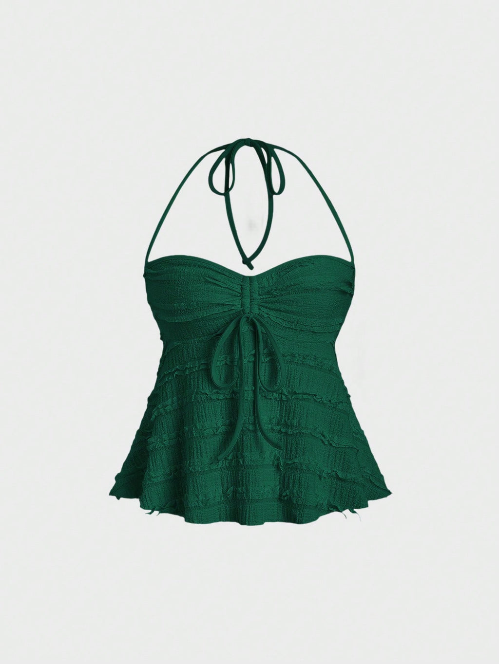 Sweetra Einfarbige sexy majica bez rukava für den Sommer mit Kordelzug und Halterungen am Rücken