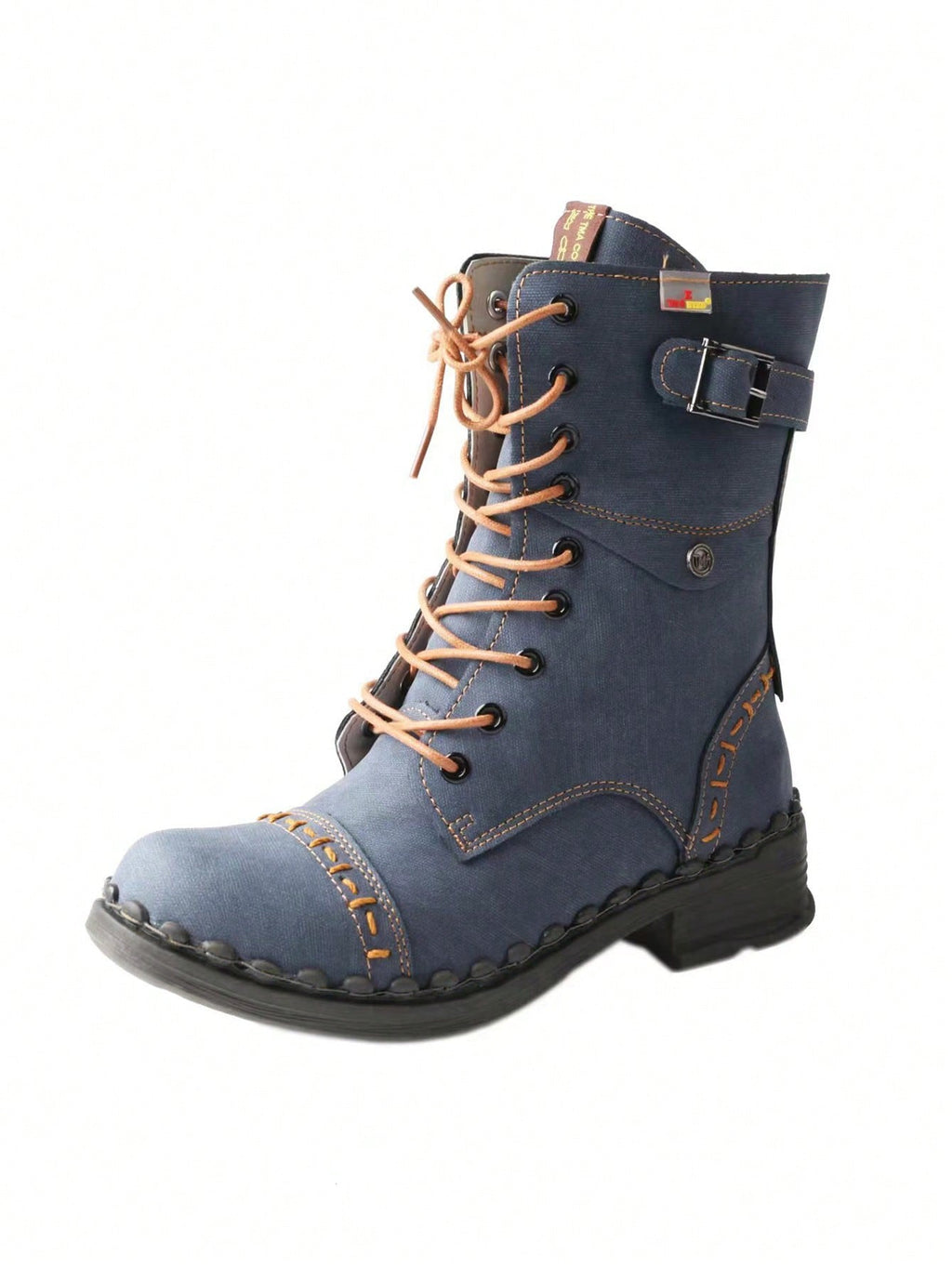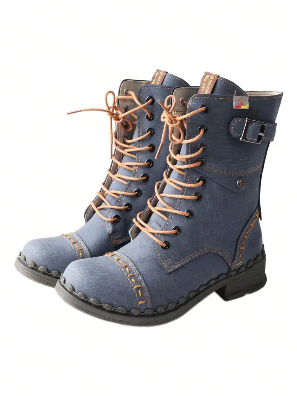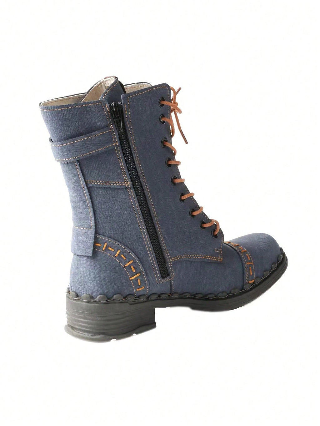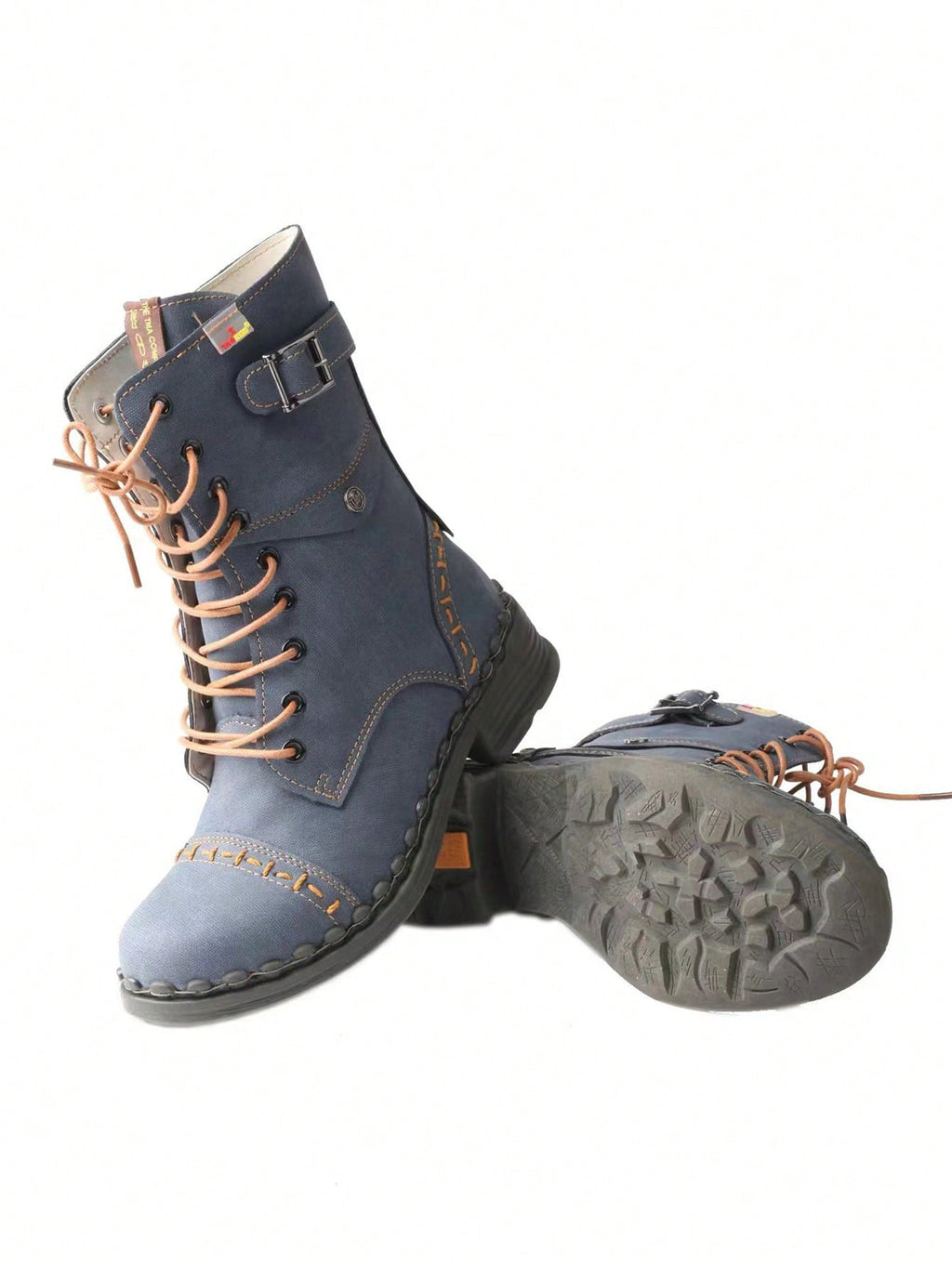 TMA EYES 1 Par TMA EYES Ženske Modne Ankle Čizme, Prava Koža, PU Postava, Metalna Kopča, Masažni Uložak, Voskirane Šnure, Kontrastno Šivanje, Protivklizni Izdržljivi Debeli Pet, Bočna Rajsferšlus za Lako Oblačenje/Skidanje, Udobne Casual Čizme Povećanih