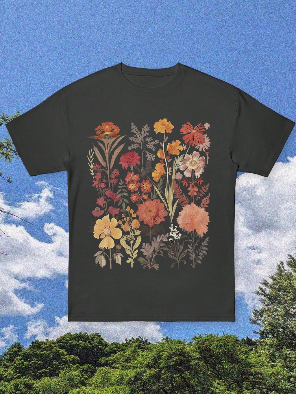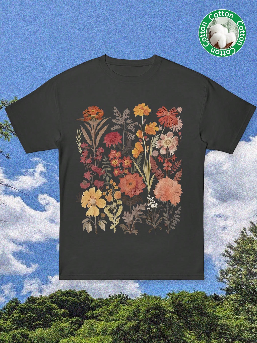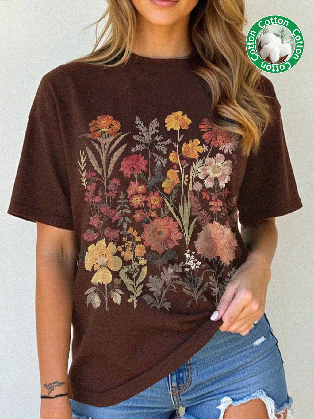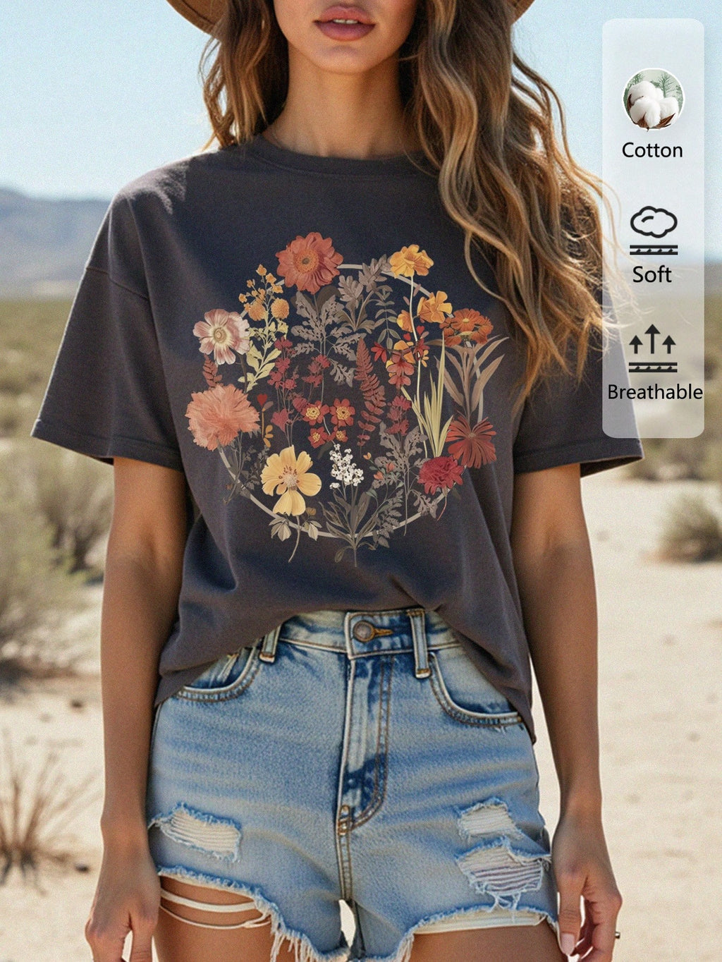Tseoso ležerna pamučna majica kratkih rukava s okruglim izrezom i cvjetnim grafikom, uski kroj za žene, pogodna za ljeto, prirodna