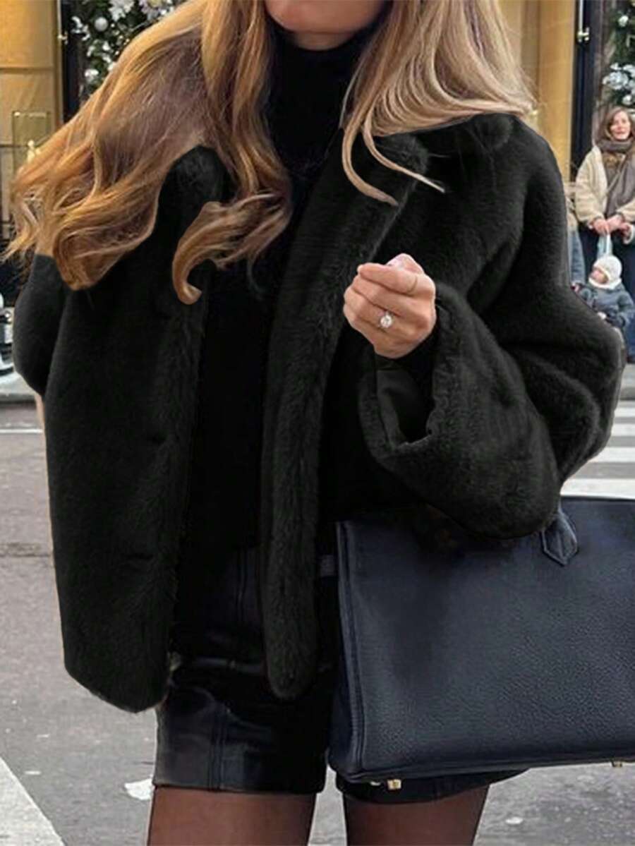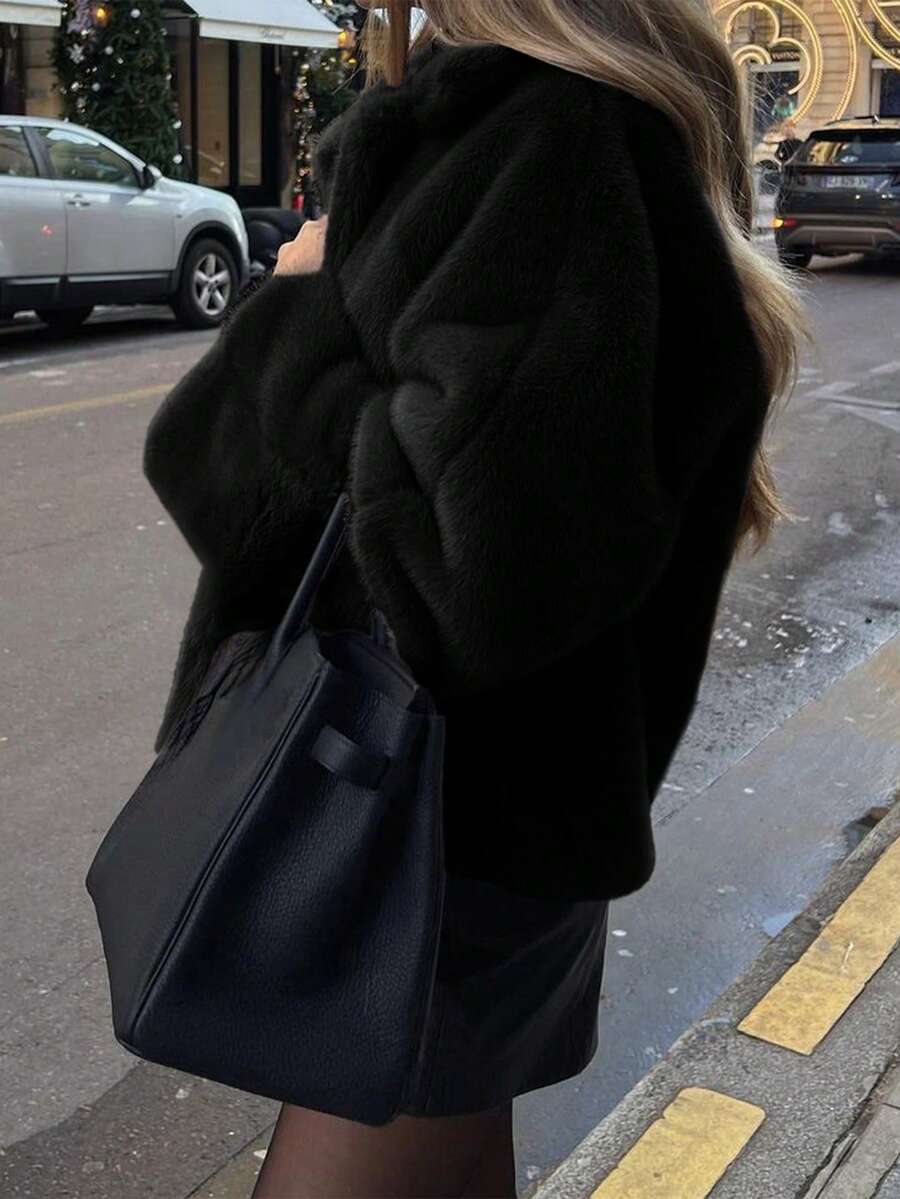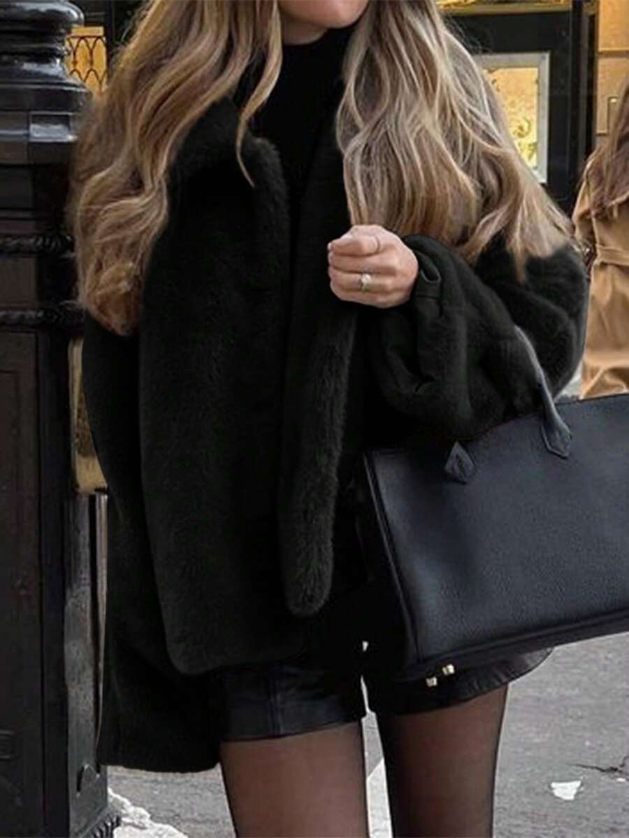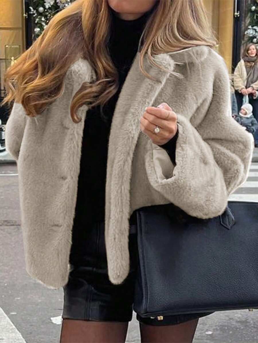 Zimska ženska odjeća u retro stilu – dugi kardigan s dugim rukavima od smeđeg umjetnog krzna, idealan za hladne dane
