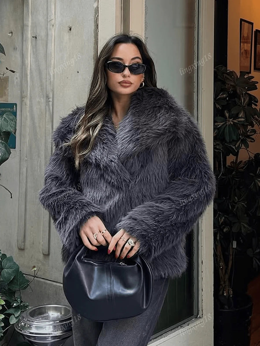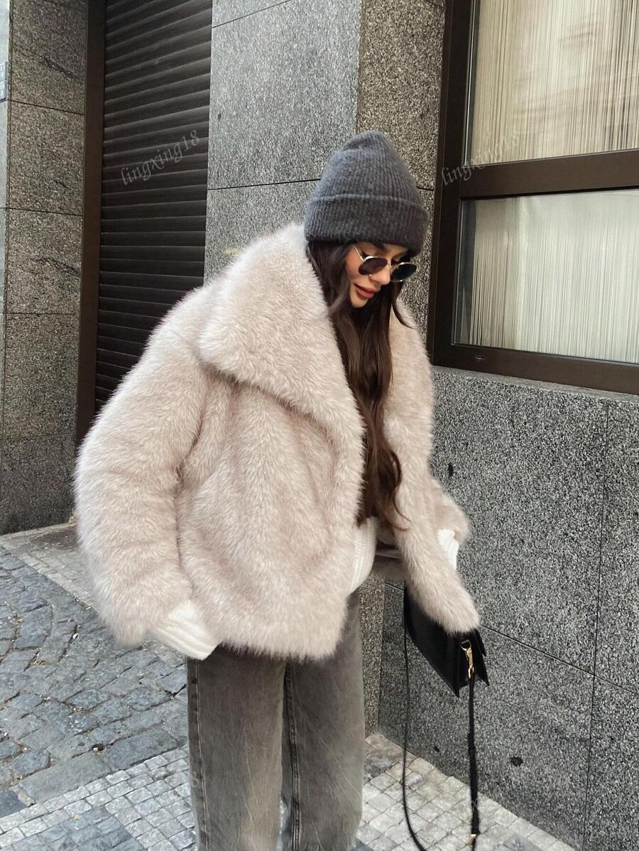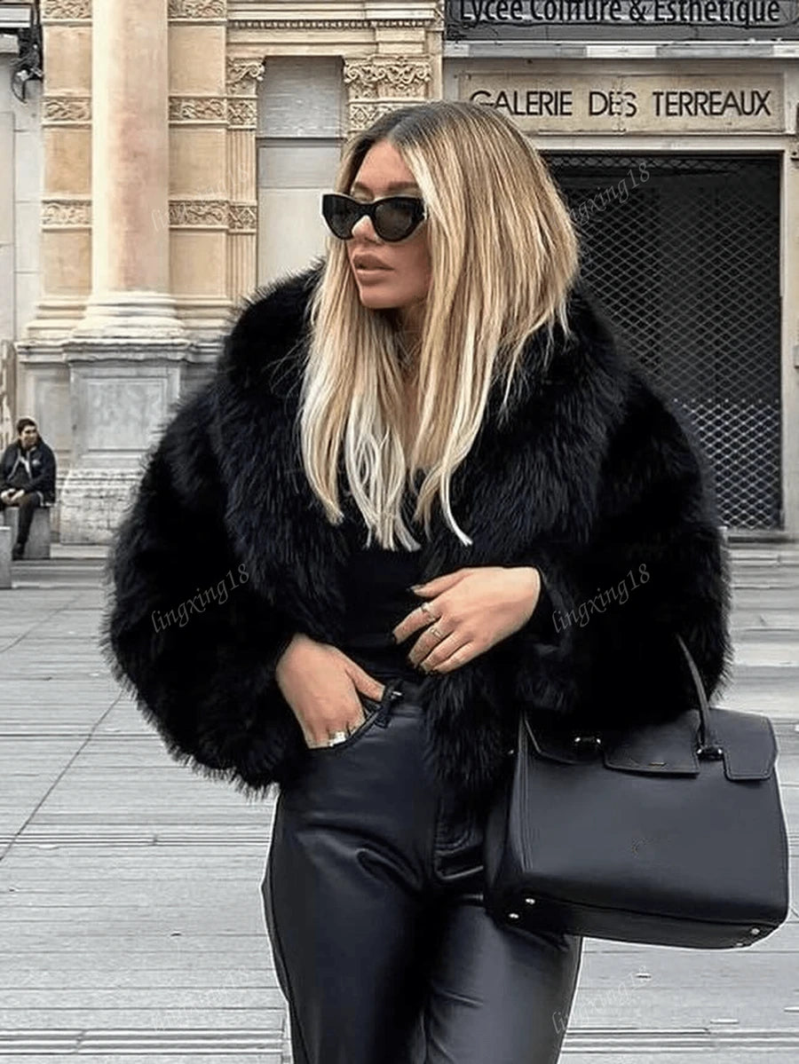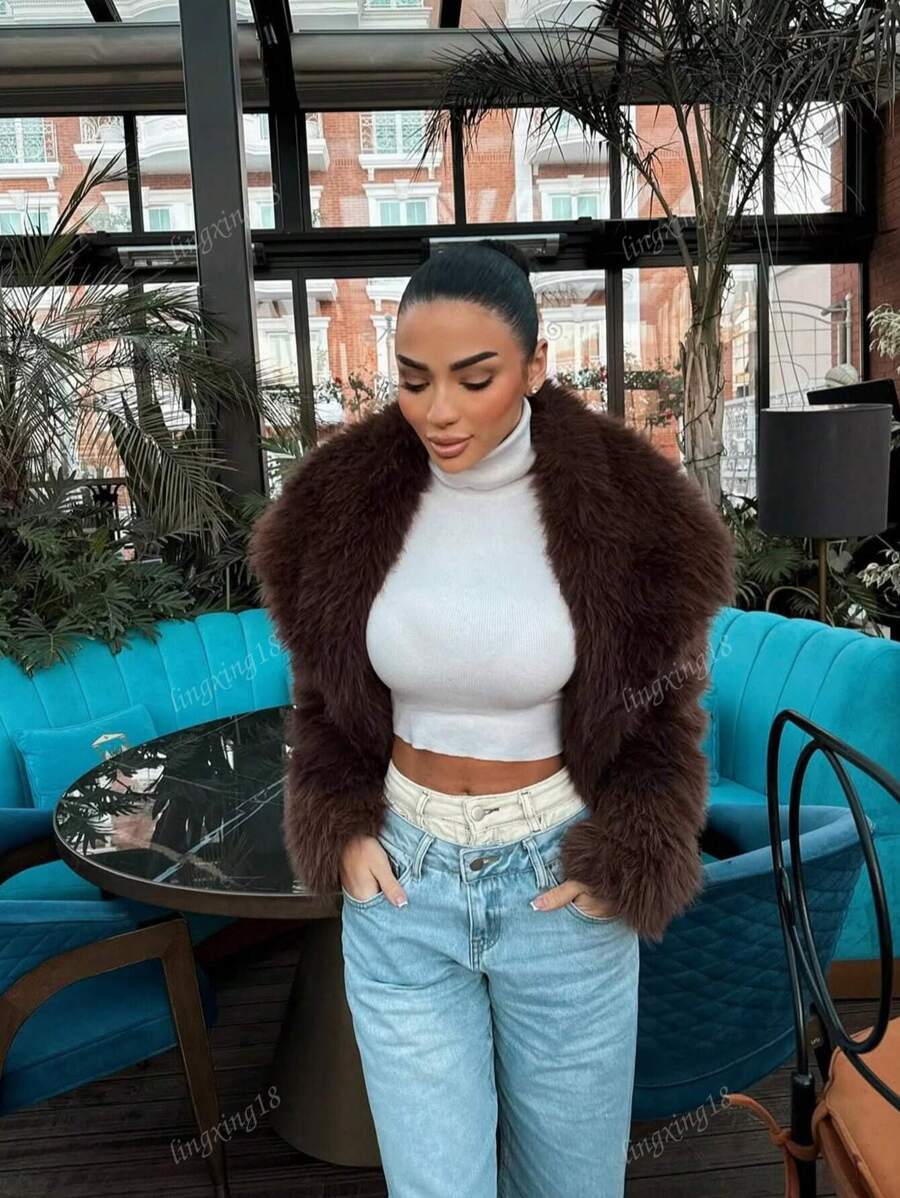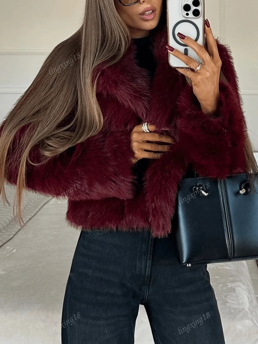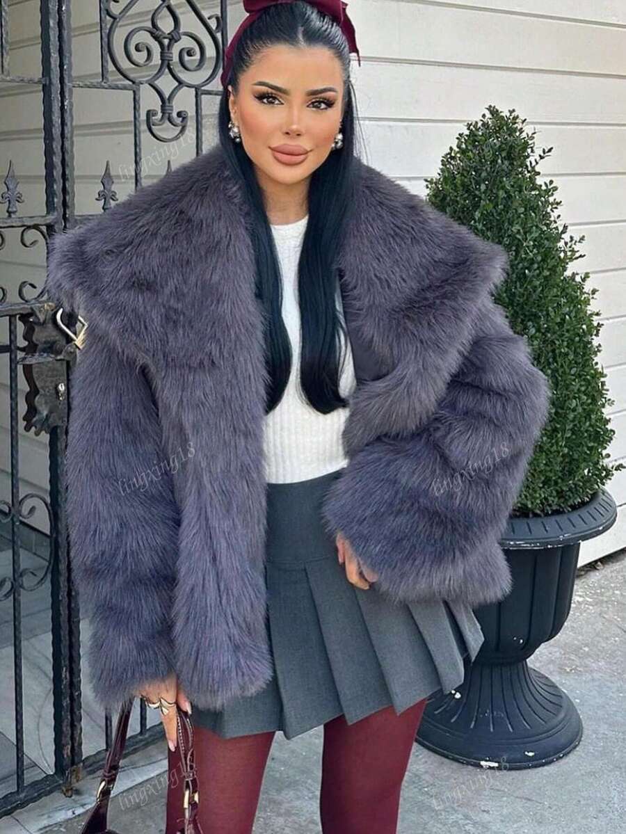 Ženska zimska nova kratka jakna od baršuna u jednobojnoj nijansi, visokokvalitetna s umjetnim krznom, elegantna za večernji izlazak