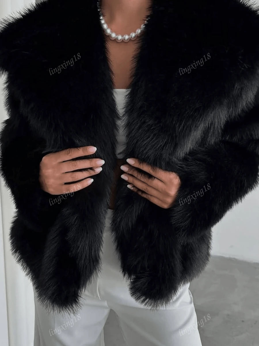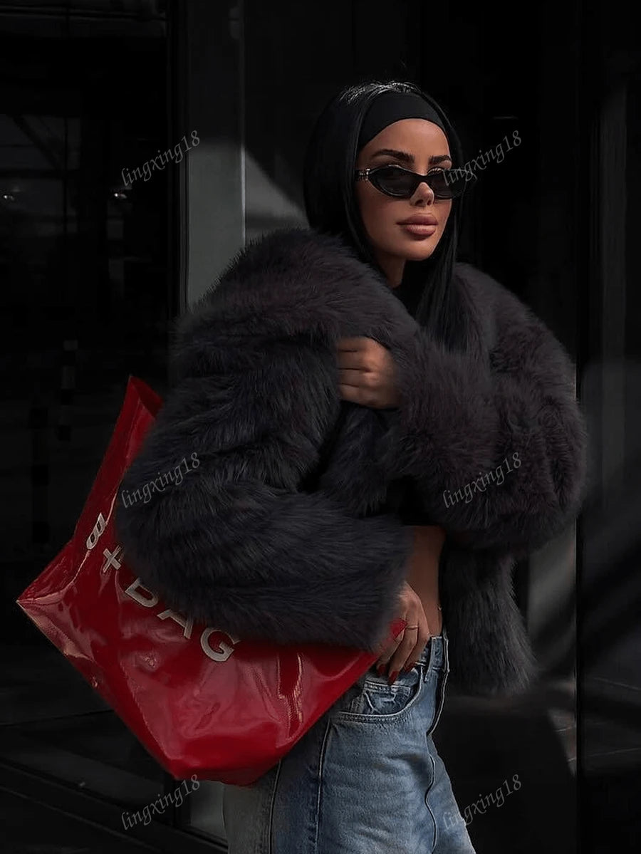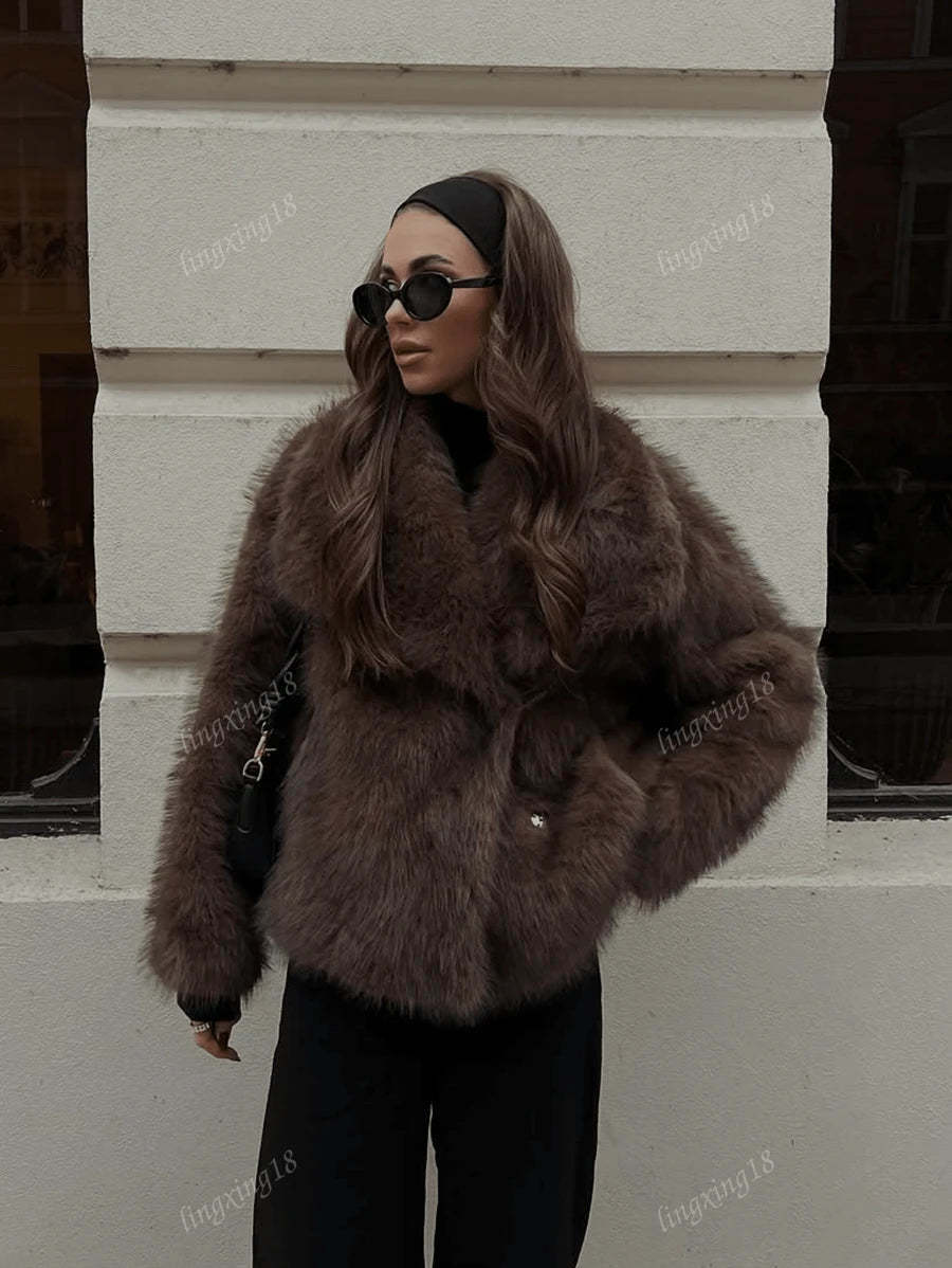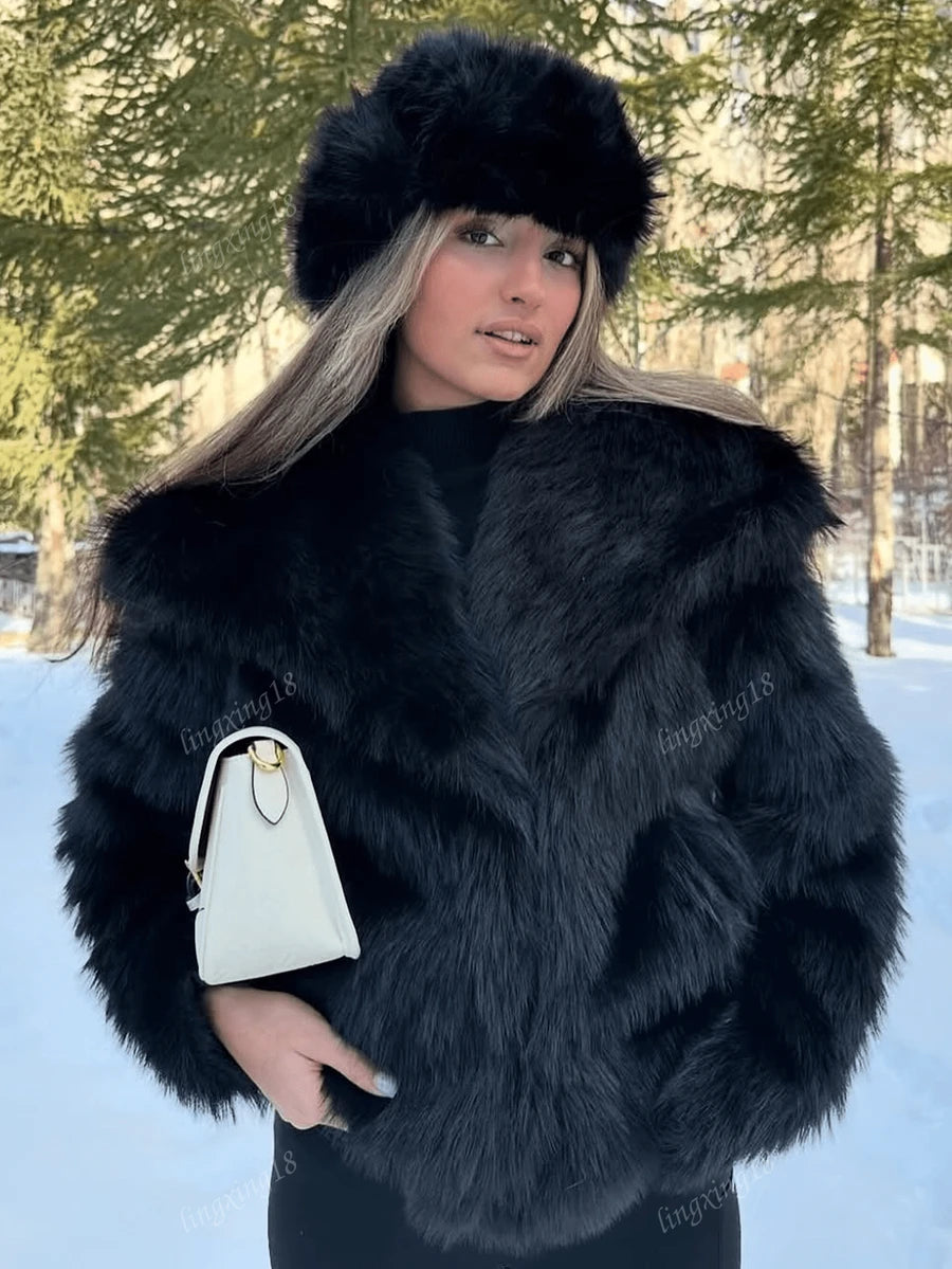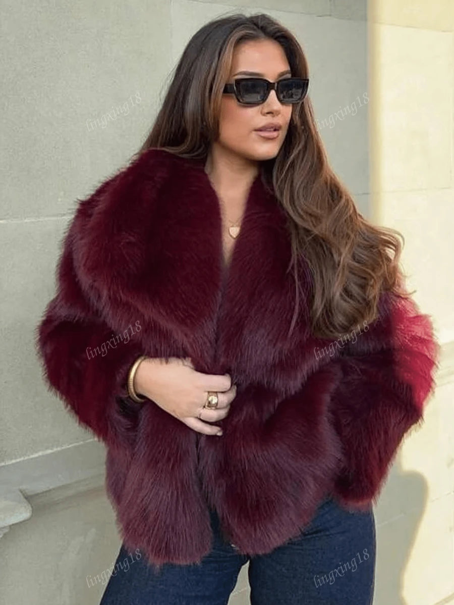 Ženska zimska nova kratka jakna od baršuna u jednobojnoj nijansi, visokokvalitetna s umjetnim krznom, elegantna za večernji izlazak
