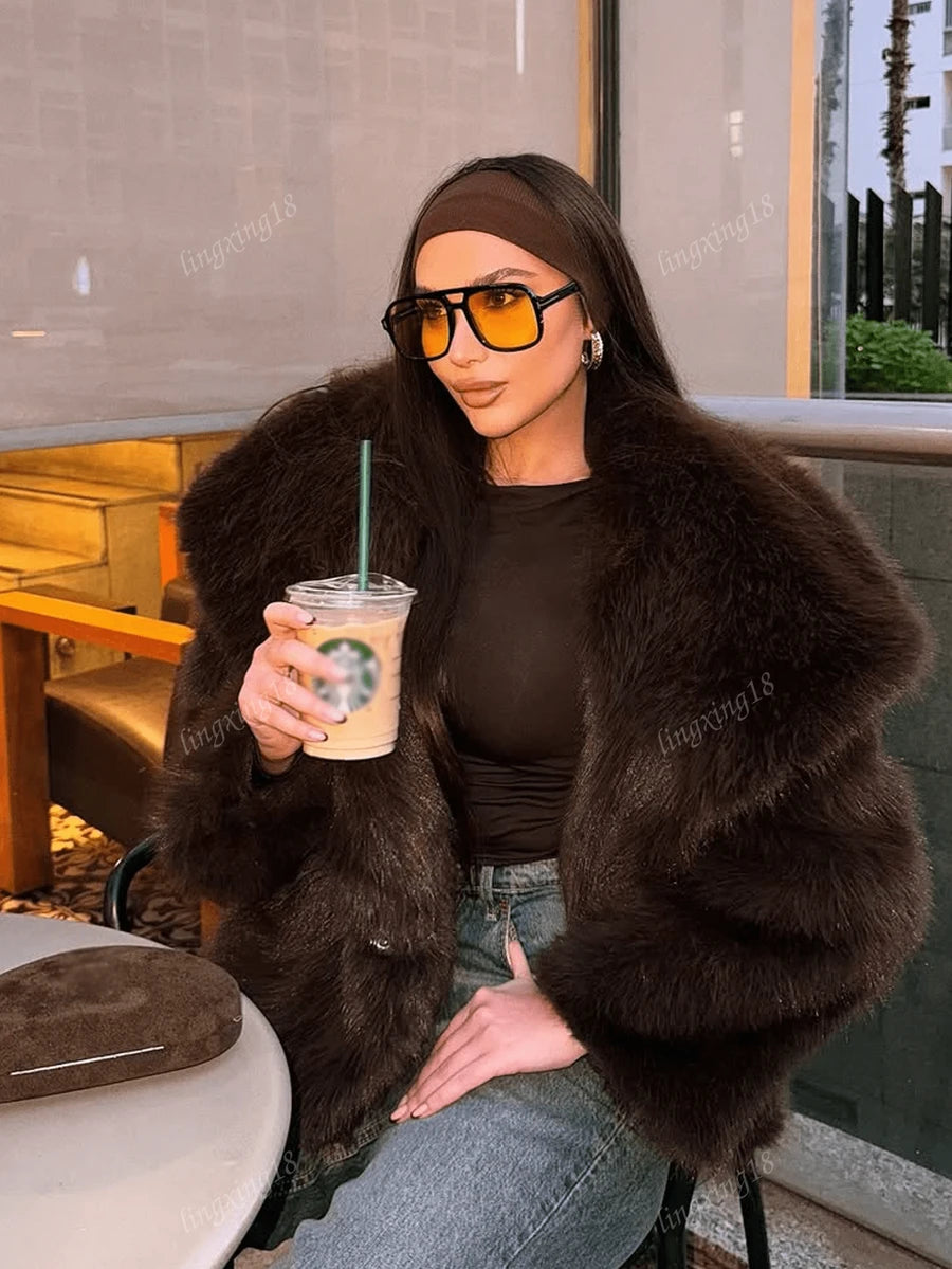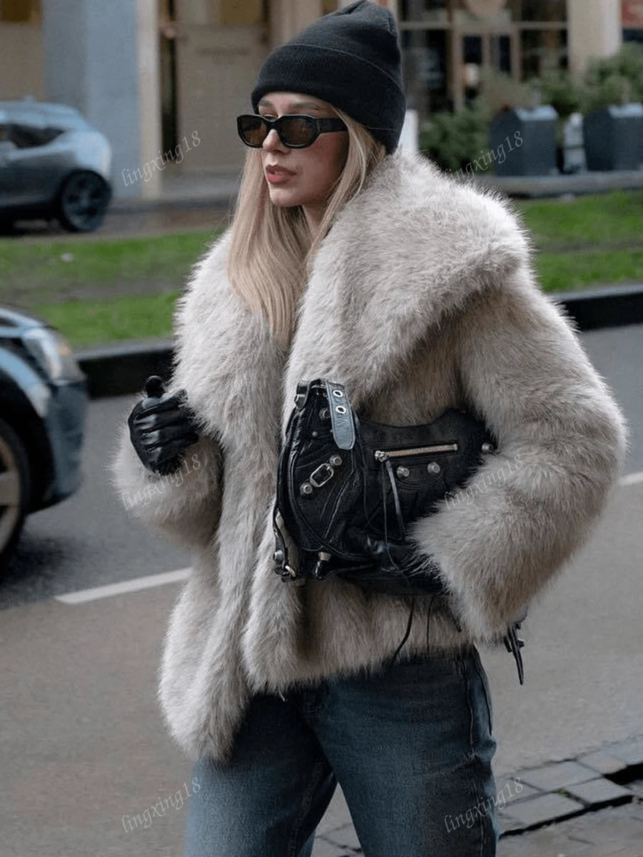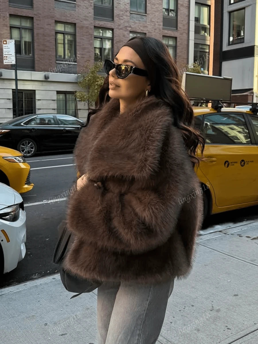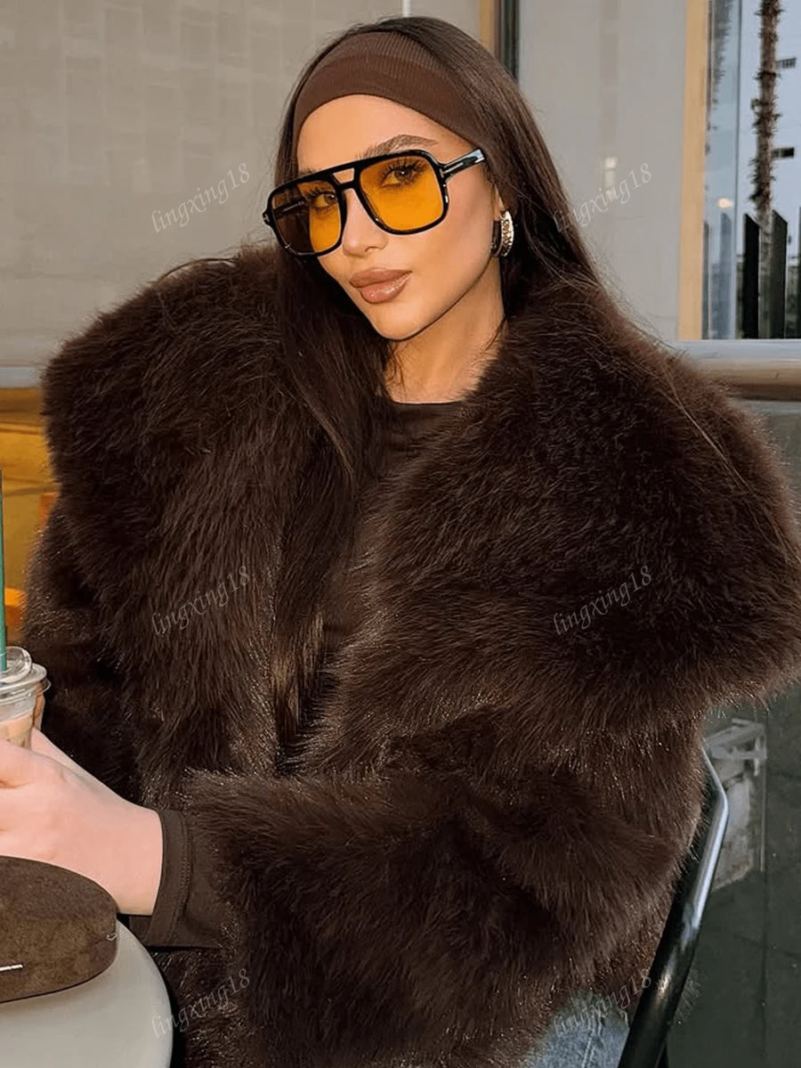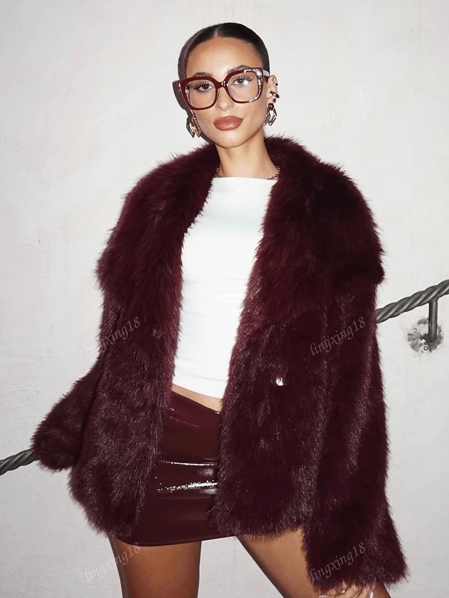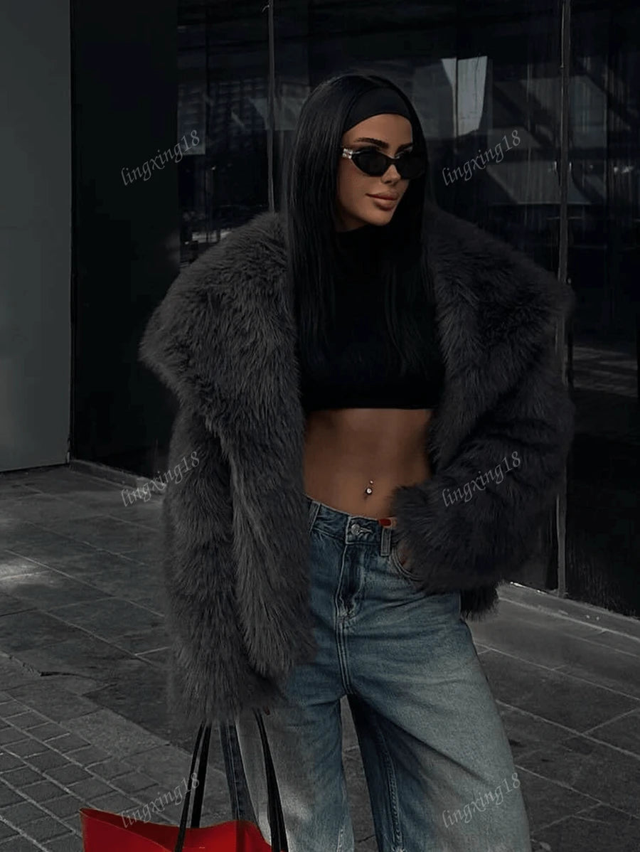 Ženska zimska nova kratka jakna od baršuna u jednobojnoj nijansi, visokokvalitetna s umjetnim krznom, elegantna za večernji izlazak
