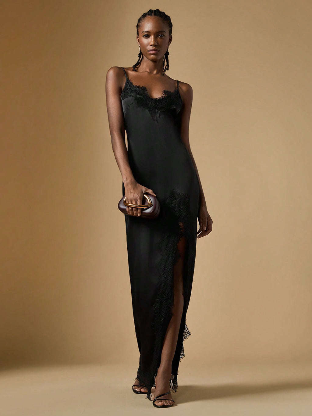 MIU AZRA Elenzya Asimetrična Prugasta Majica sa Dugim Rukavima za Žene, Elegantna Romantična, Casual i Komutna Odjeća, Haljina za Noć Veštica, Crna