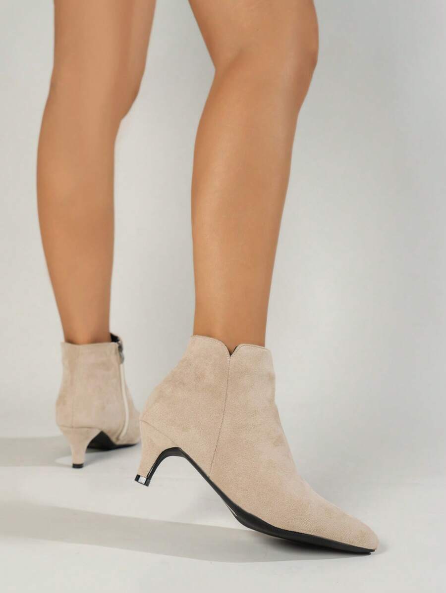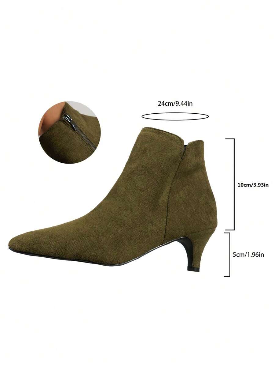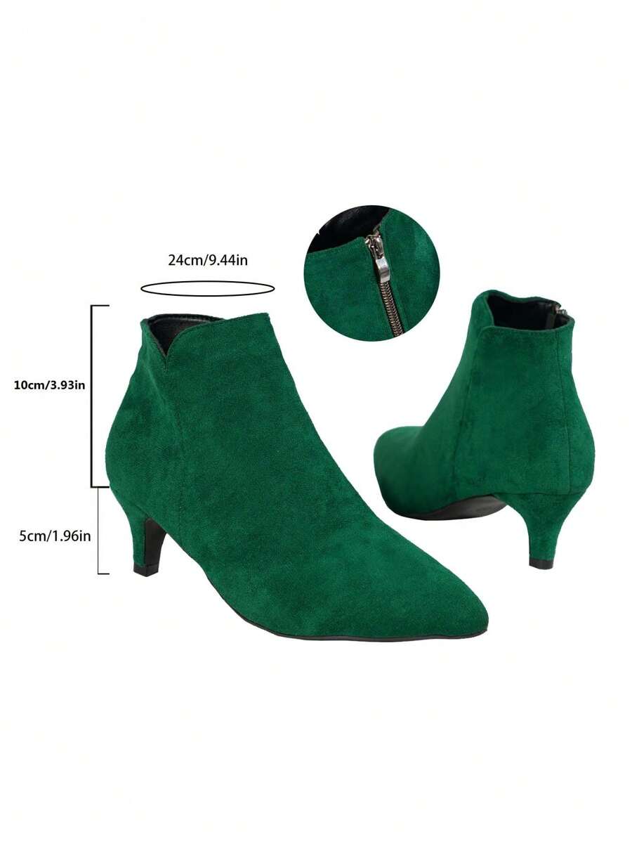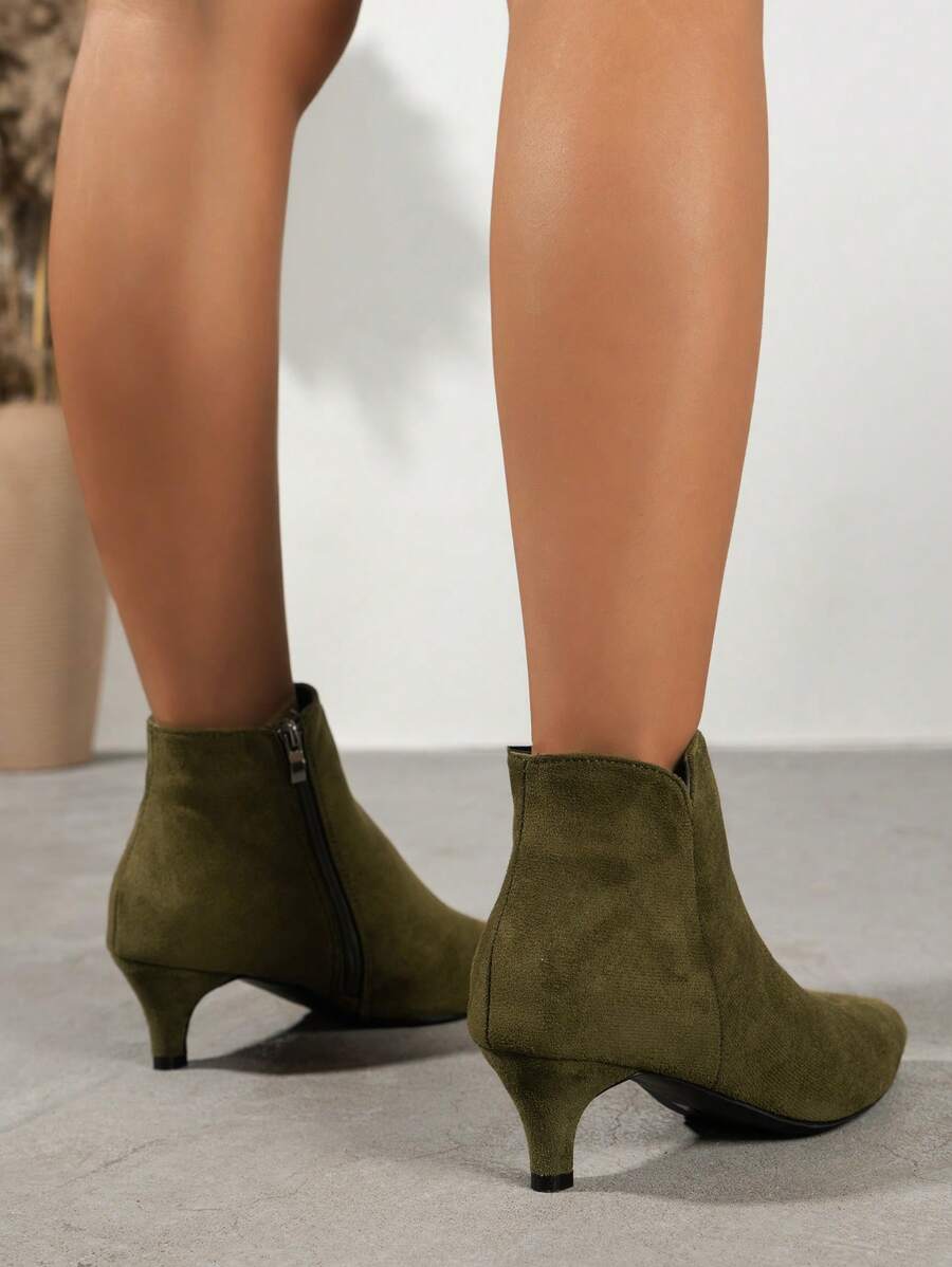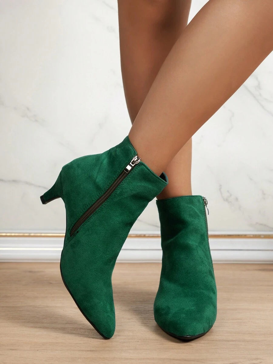 Ženska minimalistička kratka čizma sa uskim vrhom i blok petom s bočnim zatvaračem, zelena, jesen/zima
