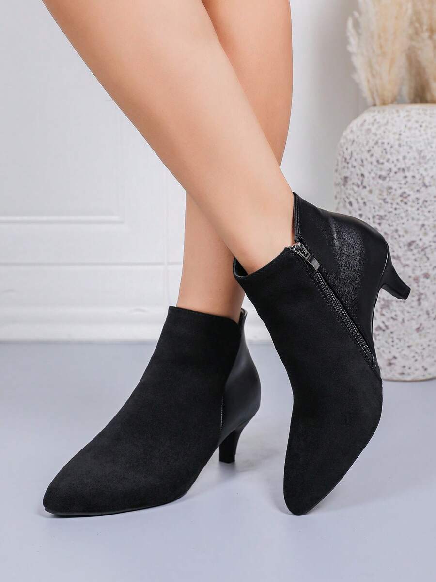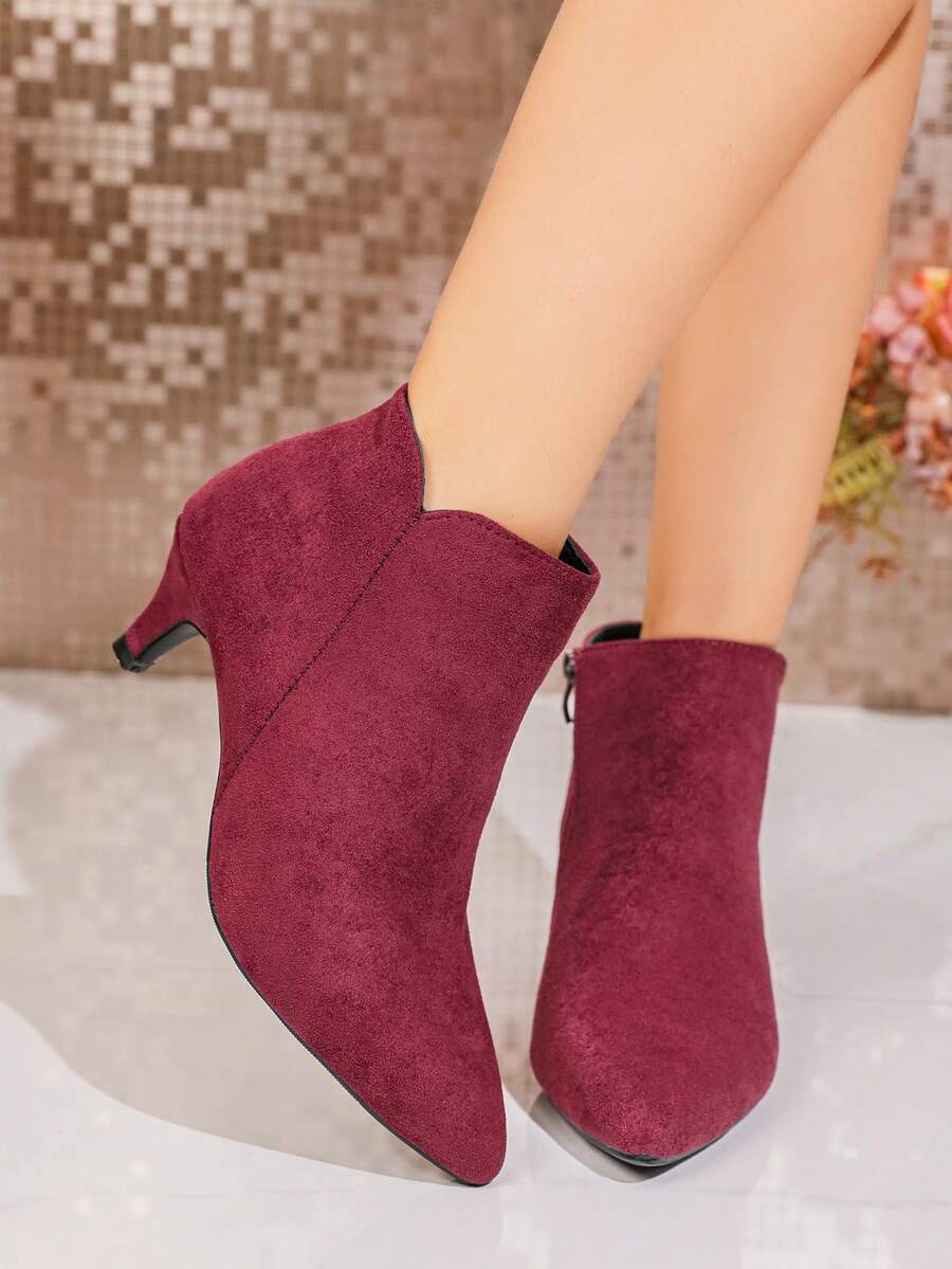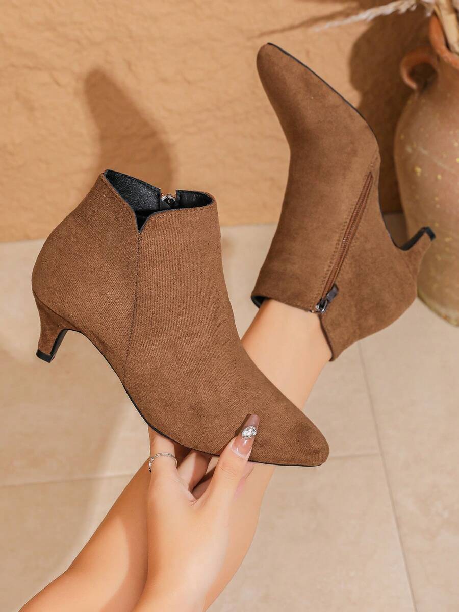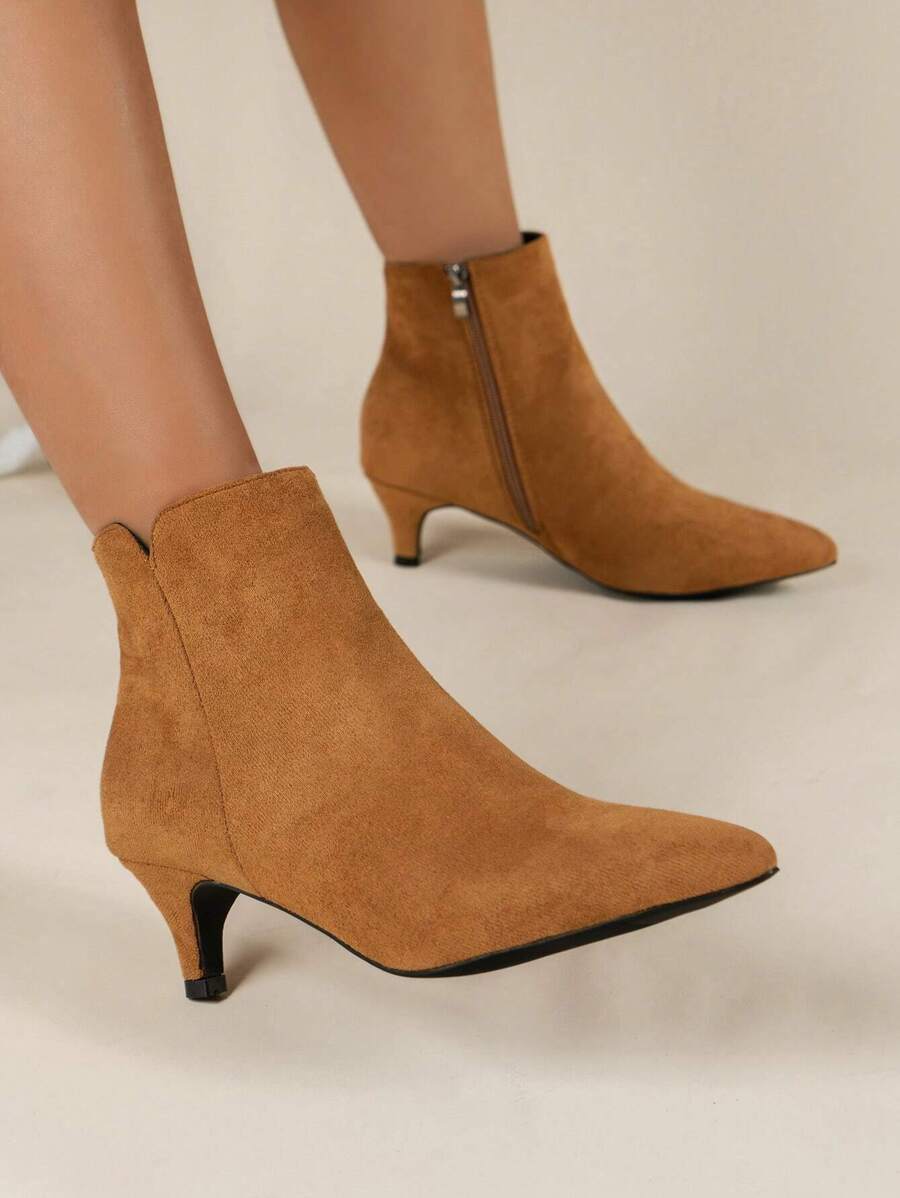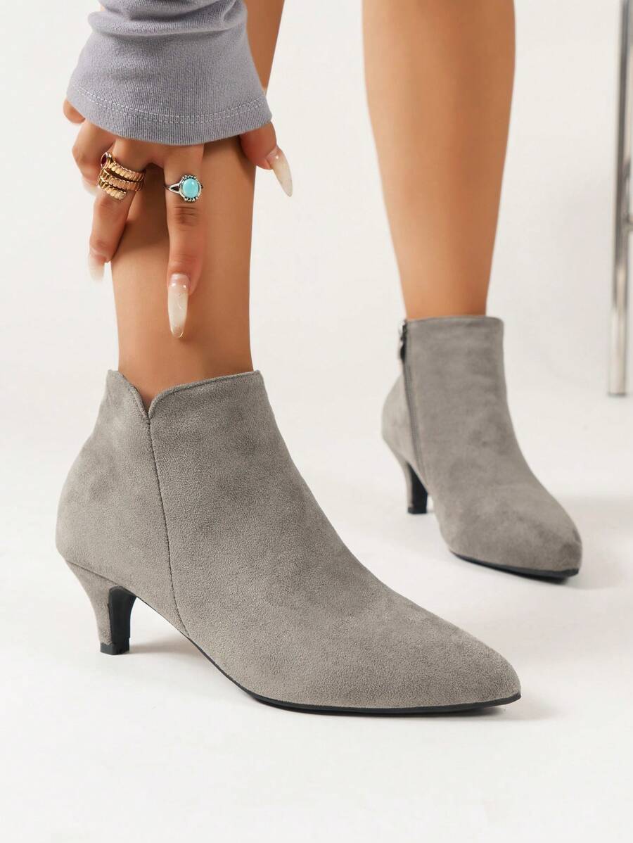 Ženska minimalistička kratka čizma sa uskim vrhom i blok petom s bočnim zatvaračem, zelena, jesen/zima