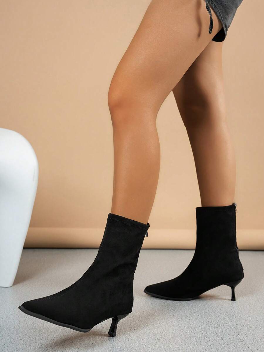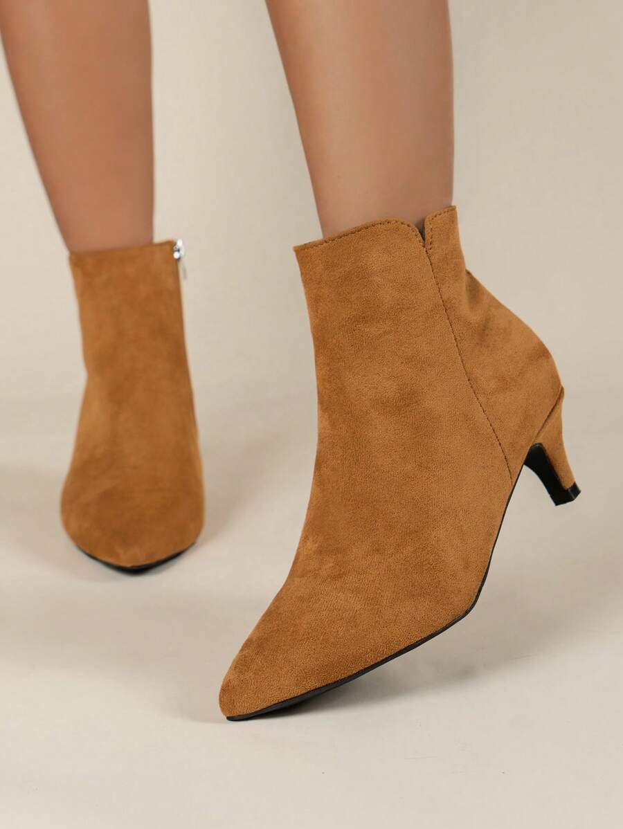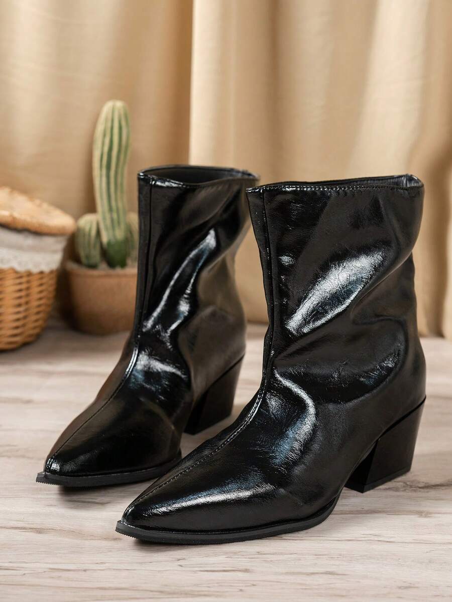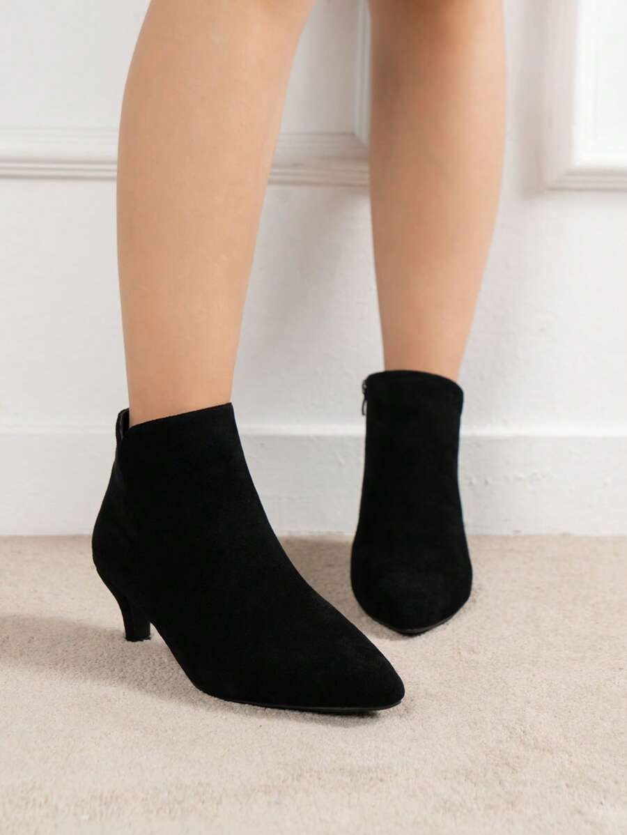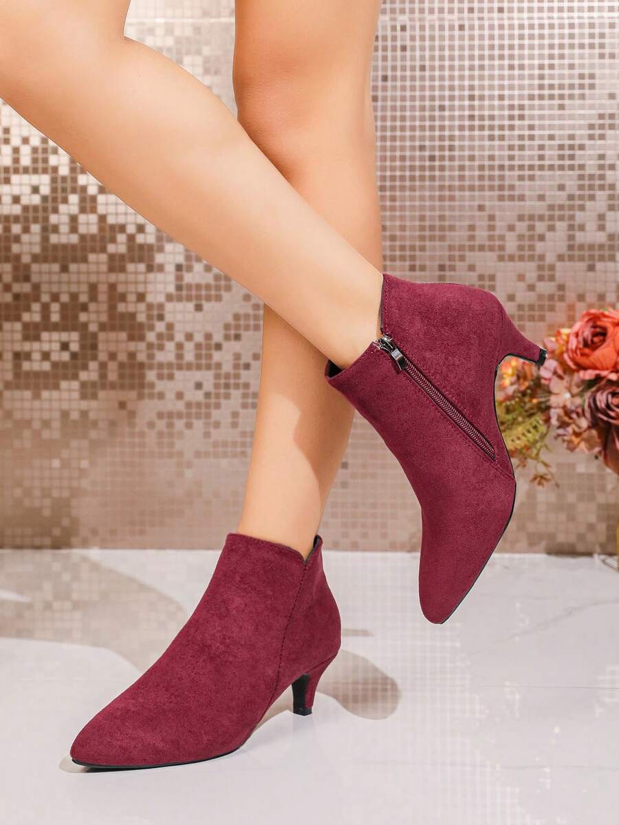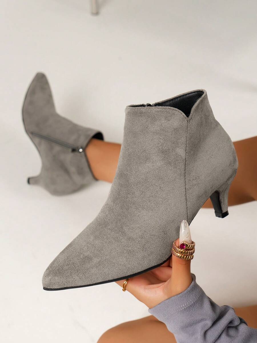 Ženska minimalistička kratka čizma sa uskim vrhom i blok petom s bočnim zatvaračem, zelena, jesen/zima