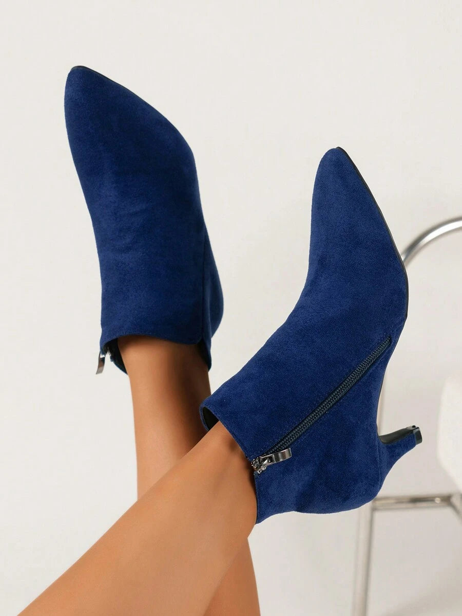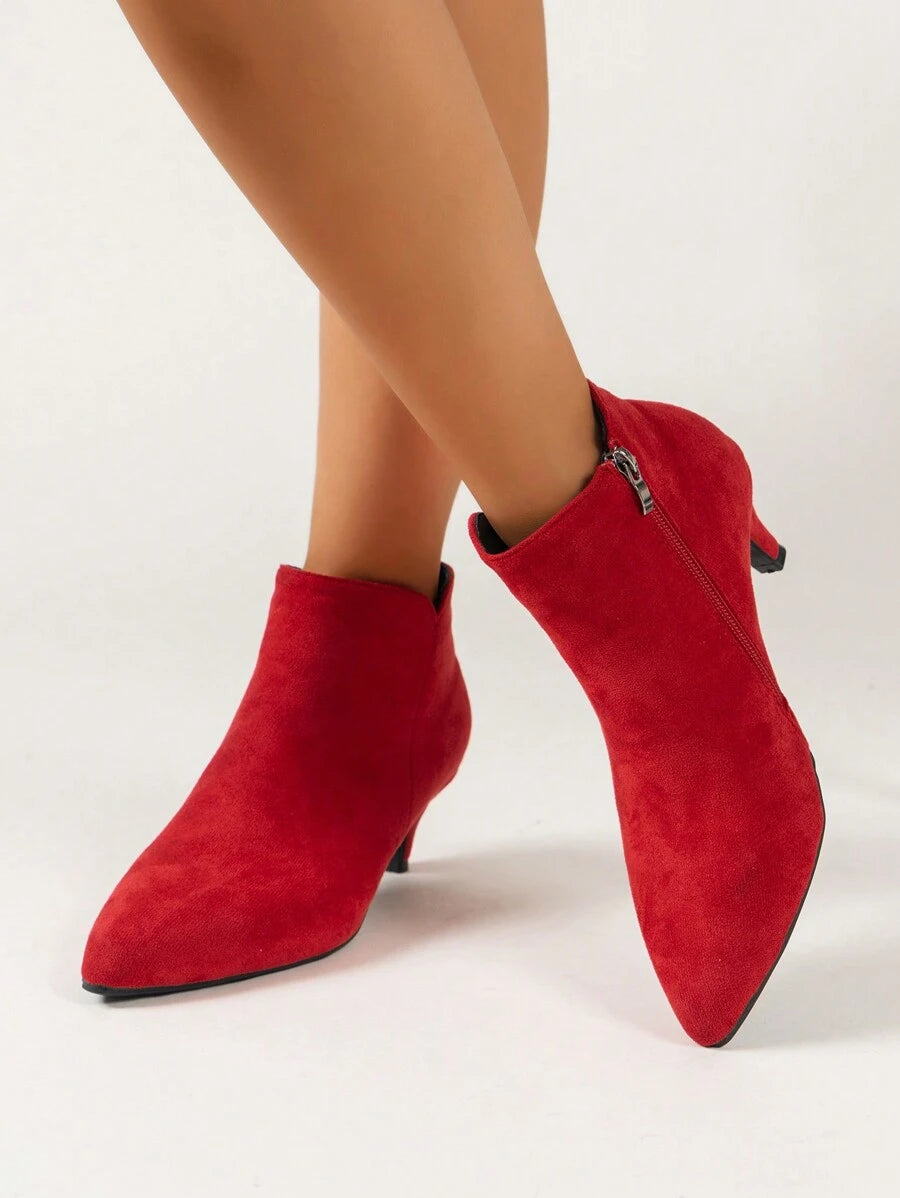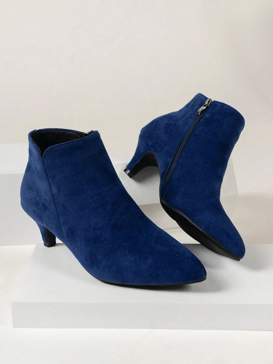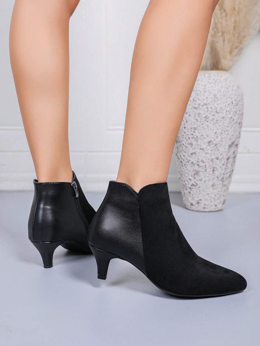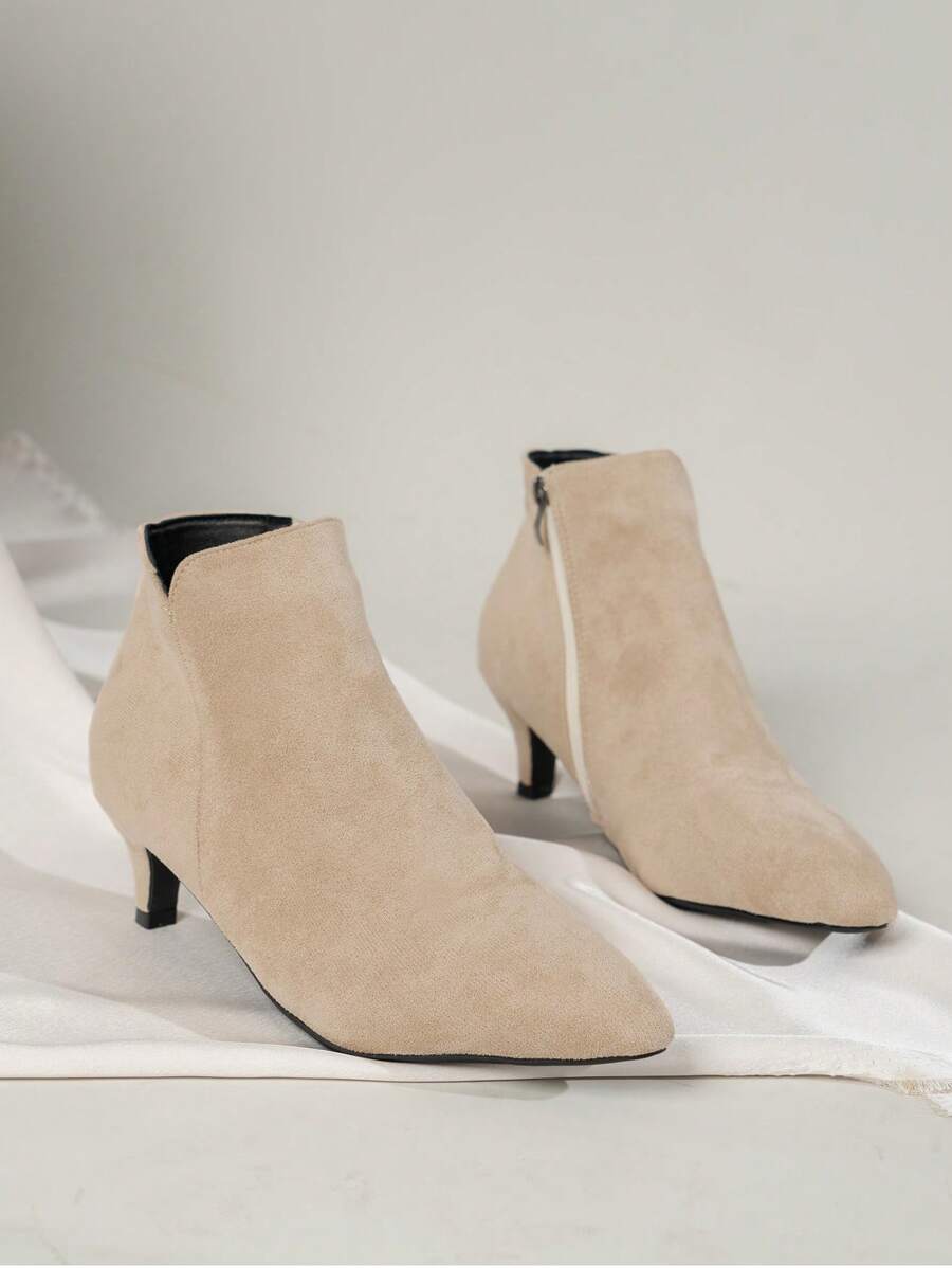 Ženska minimalistička kratka čizma sa uskim vrhom i blok petom s bočnim zatvaračem, zelena, jesen/zima
