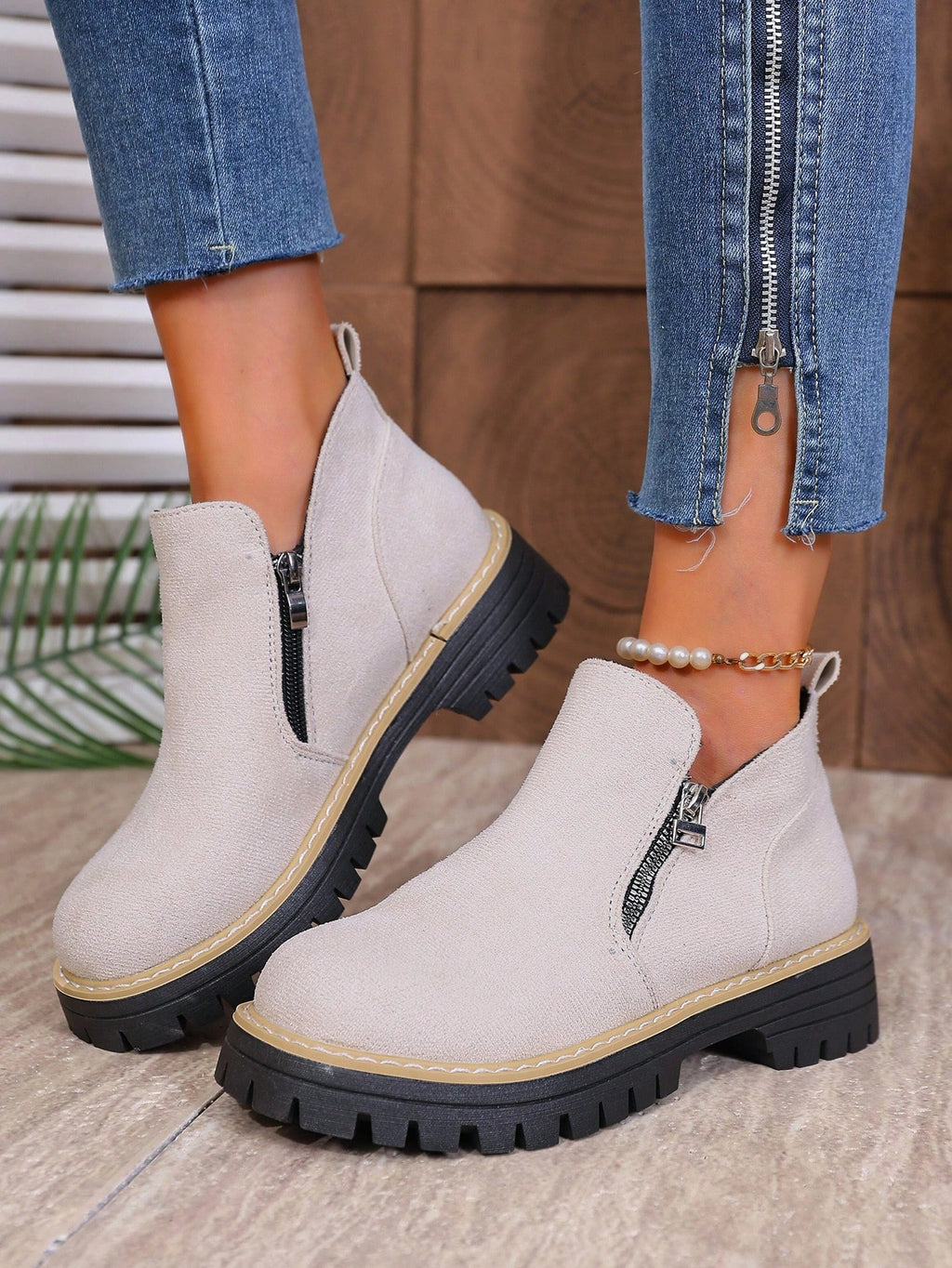 Ženske Chelsea čizme za jesen/zimu, debeo đon, okrugli vrh, moderno, britanski stil, čizme do gležnja, klasične američke kratke čizme