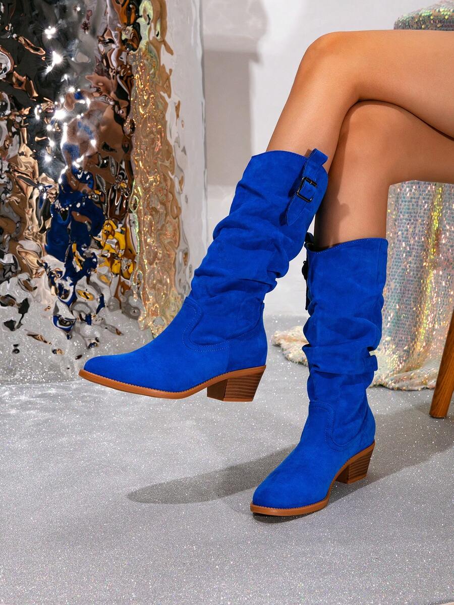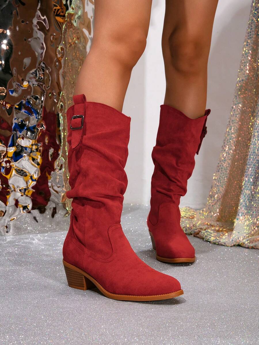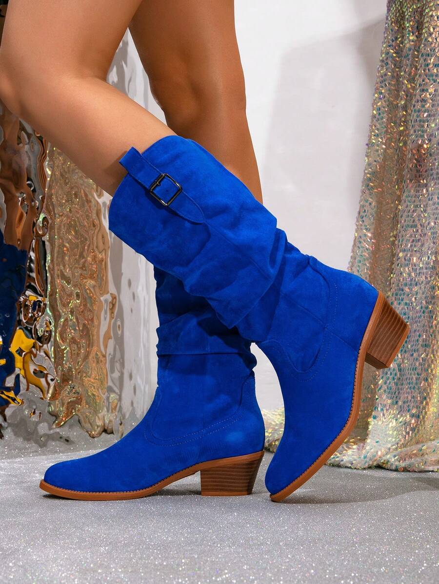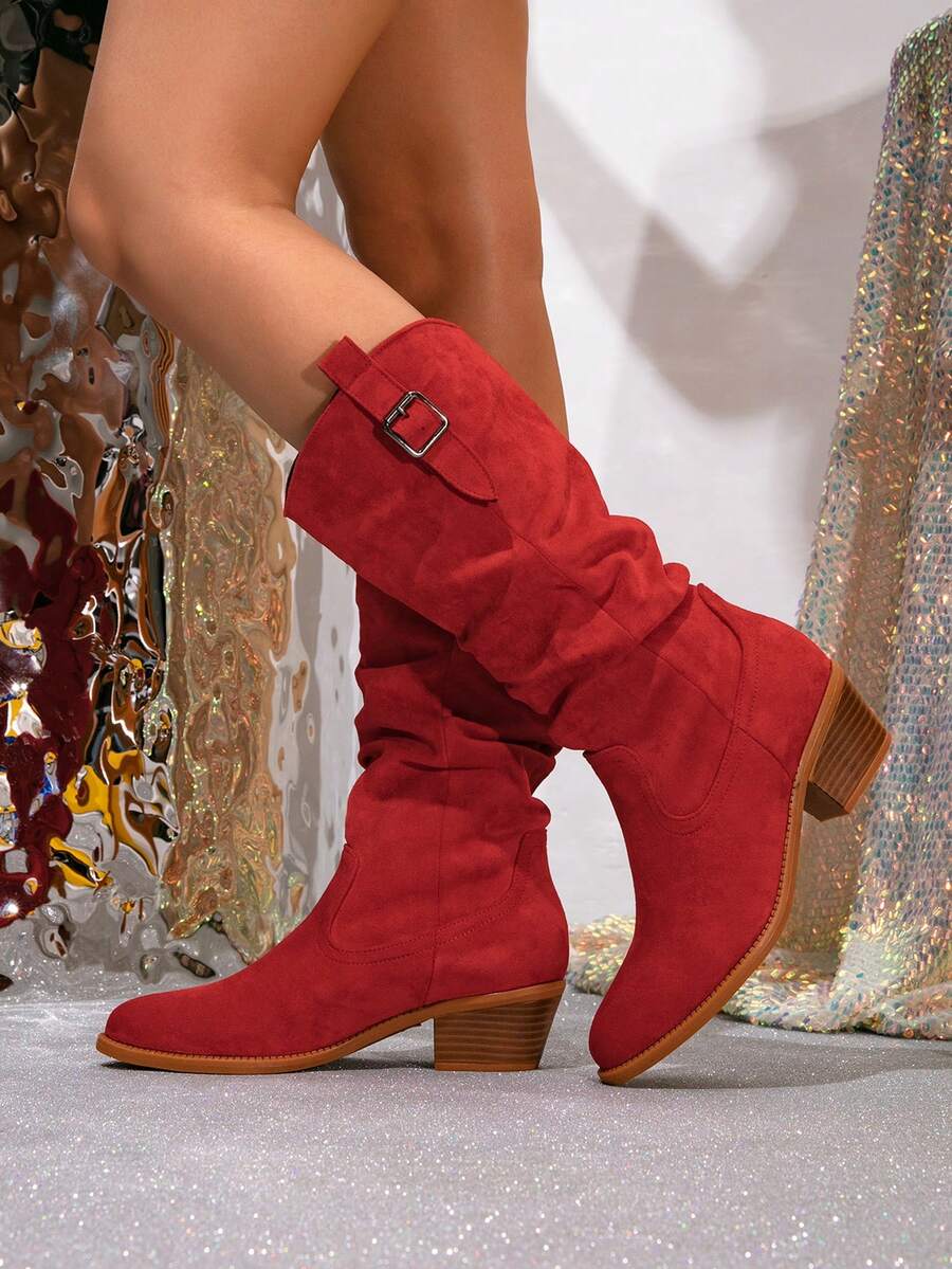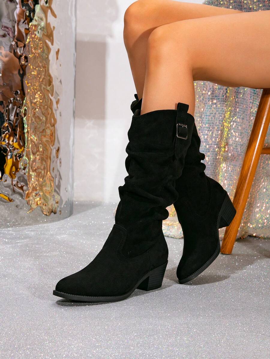 Ženske čizme do sredine lista - Zapadnjački stil sa bočnim patentnim zatvaračem - Pokrivene čizme za jesen/zimu sa debelim potpeticama od suède - Evropske čizme sa okruglim prstima, debelim potpeticama, proklizavajućim, uskim dugim čizmama - Udobne čizme
