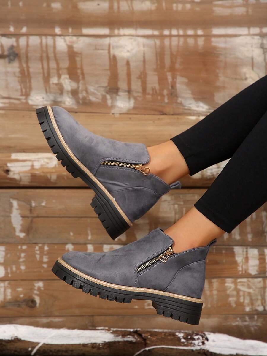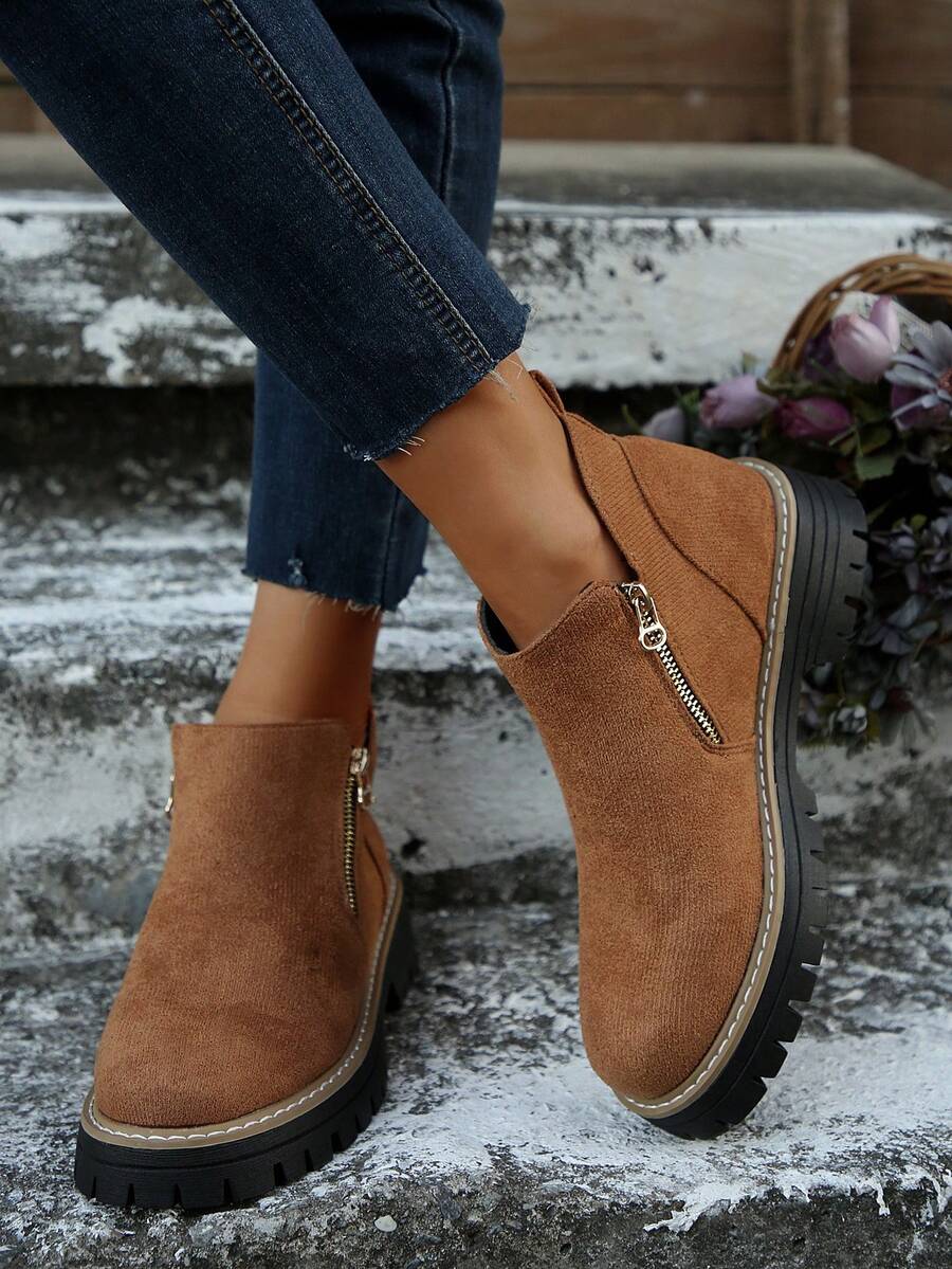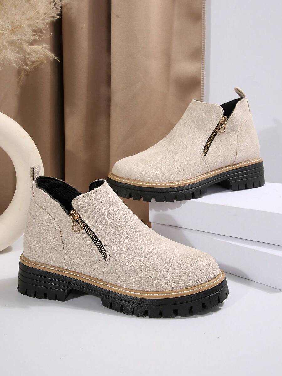 Ženske moderne svakodnevne svestrane čizmice sa dvostrukim patent zatvaračem, pogodna za sve sezone, jesen, zimu