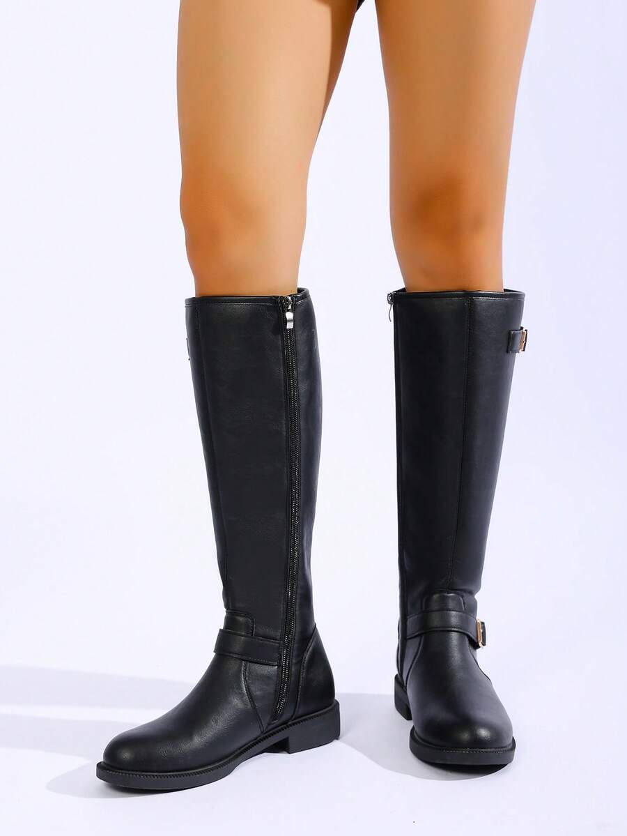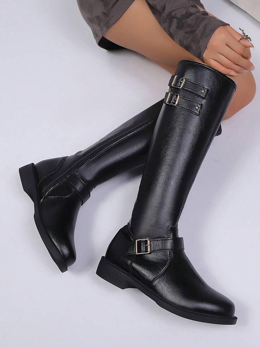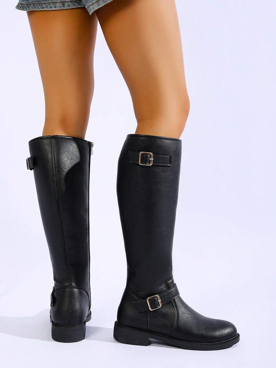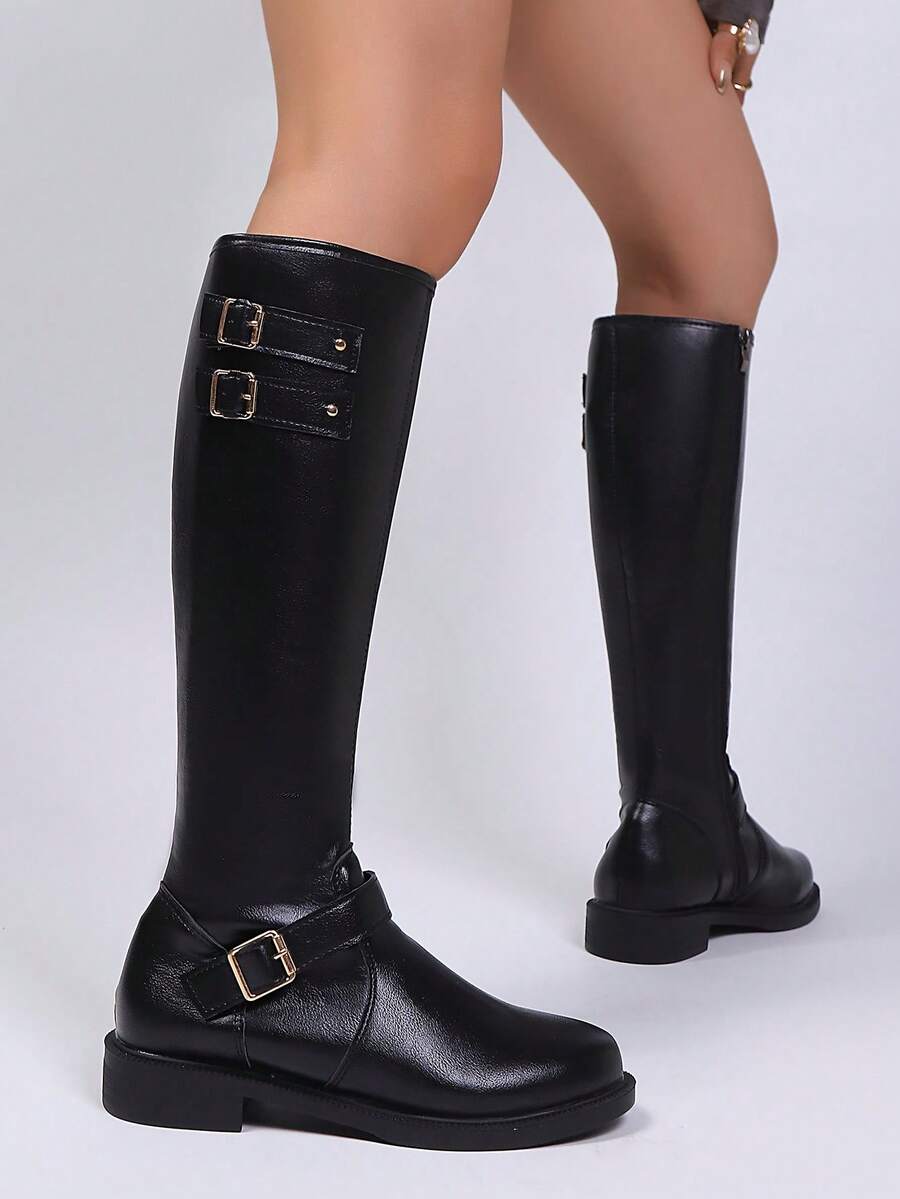 Ženske modre čizme do koljena s kopčom, moderni jesen/zima smeđe čizme s bočnim patentnim zatvaračem, čizme za jahanje do butina. Pogodne za svakodnevno nošenje, klasične čizme, proslave, zabave, modne revije, čizme do sredine lista, čizme do koljena i s