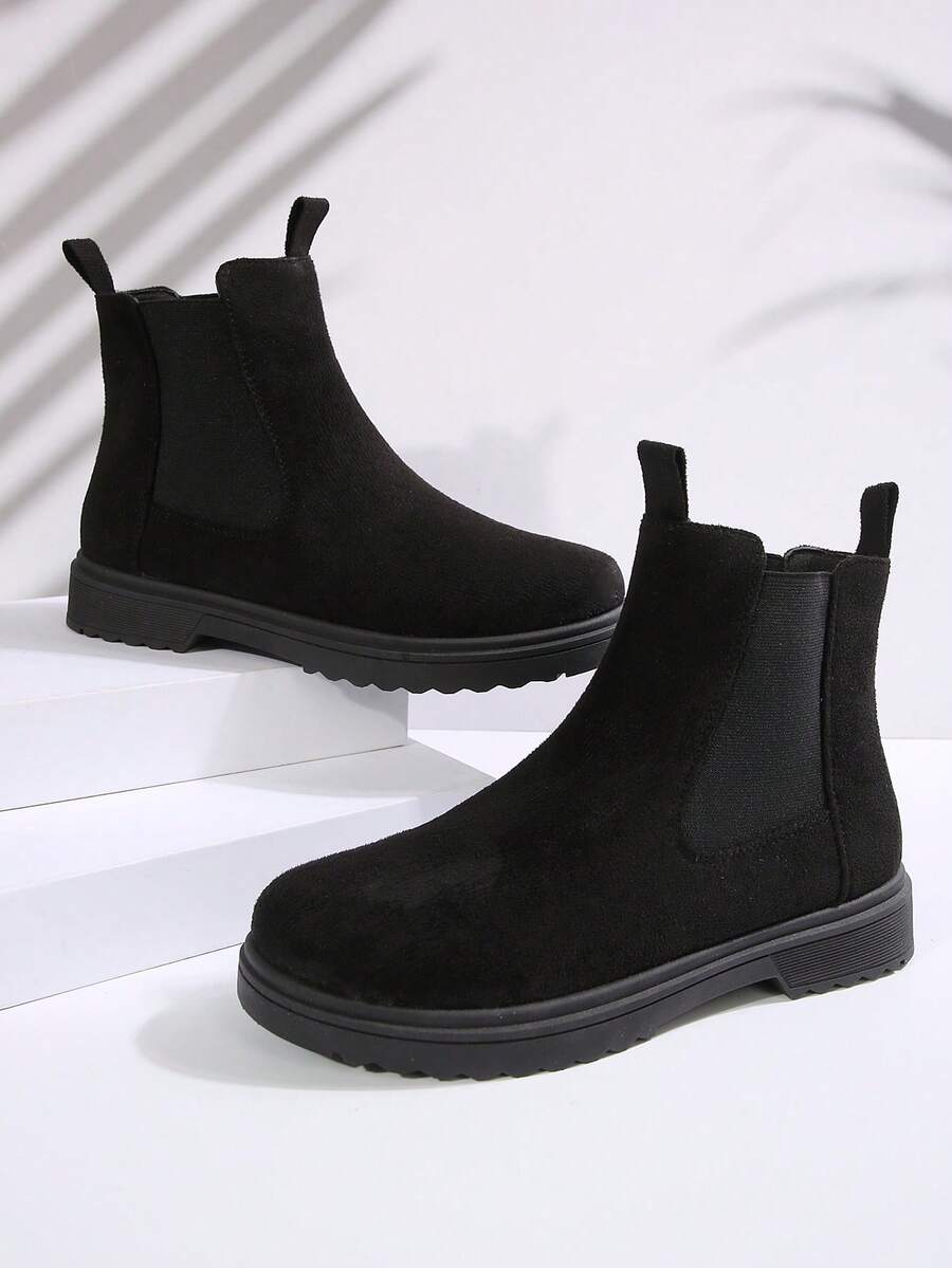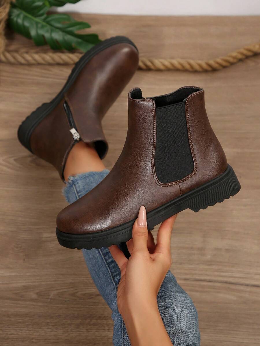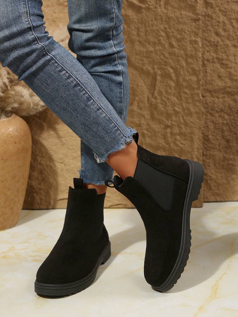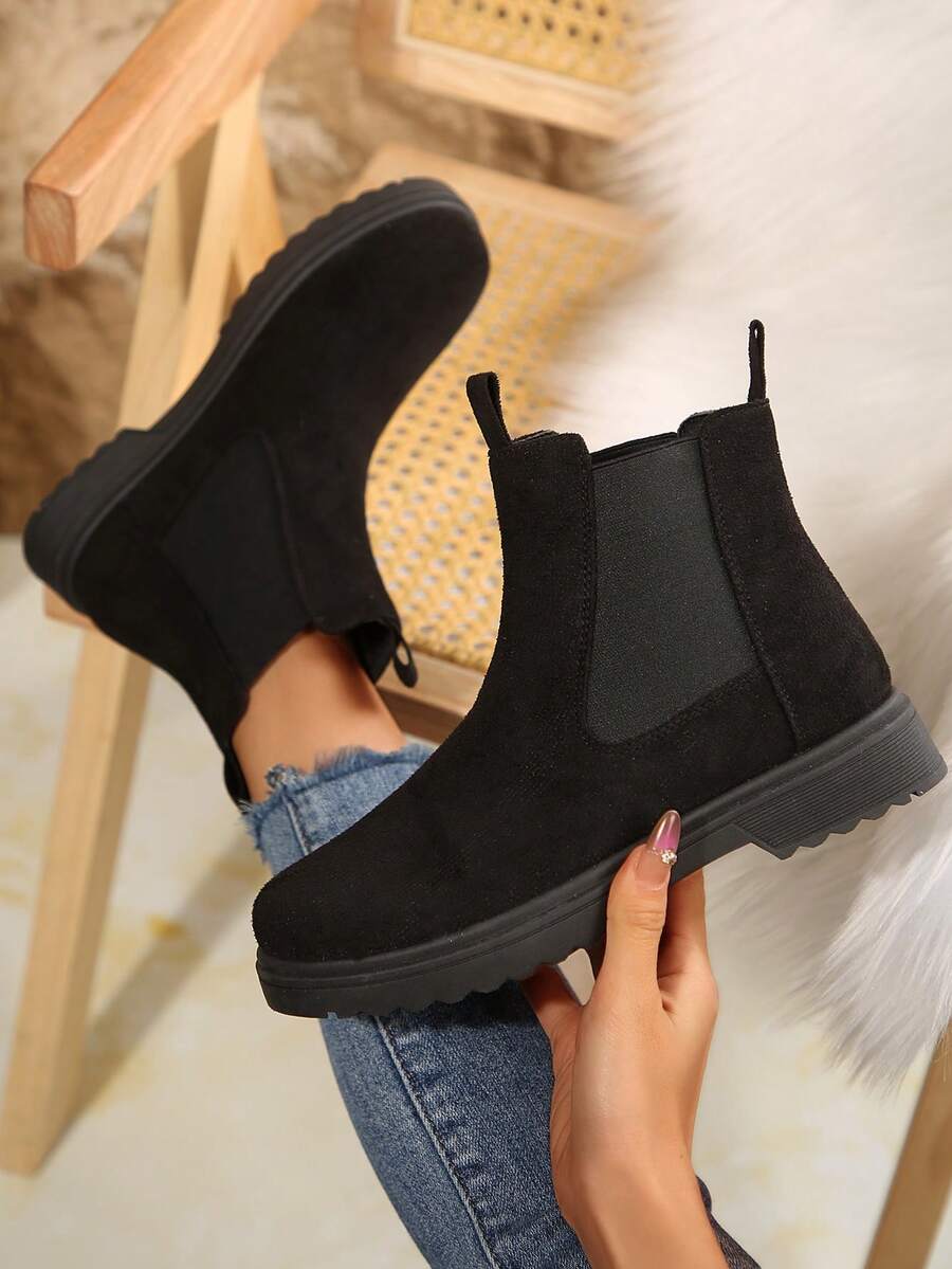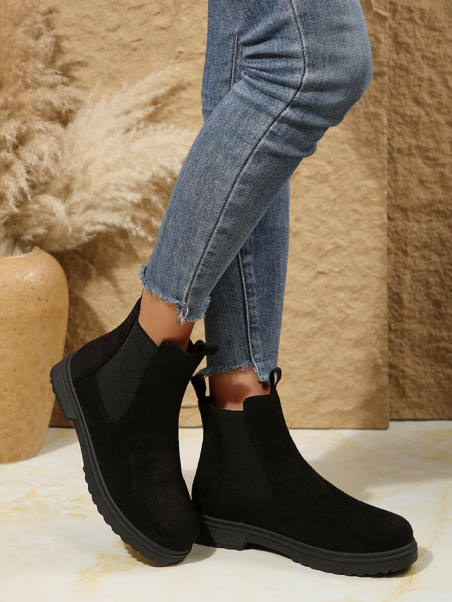 Ženske modre udobne casual svestrane crne PU okrugle čarapu Chelsea gležnjače, jesen/zima, elegantno