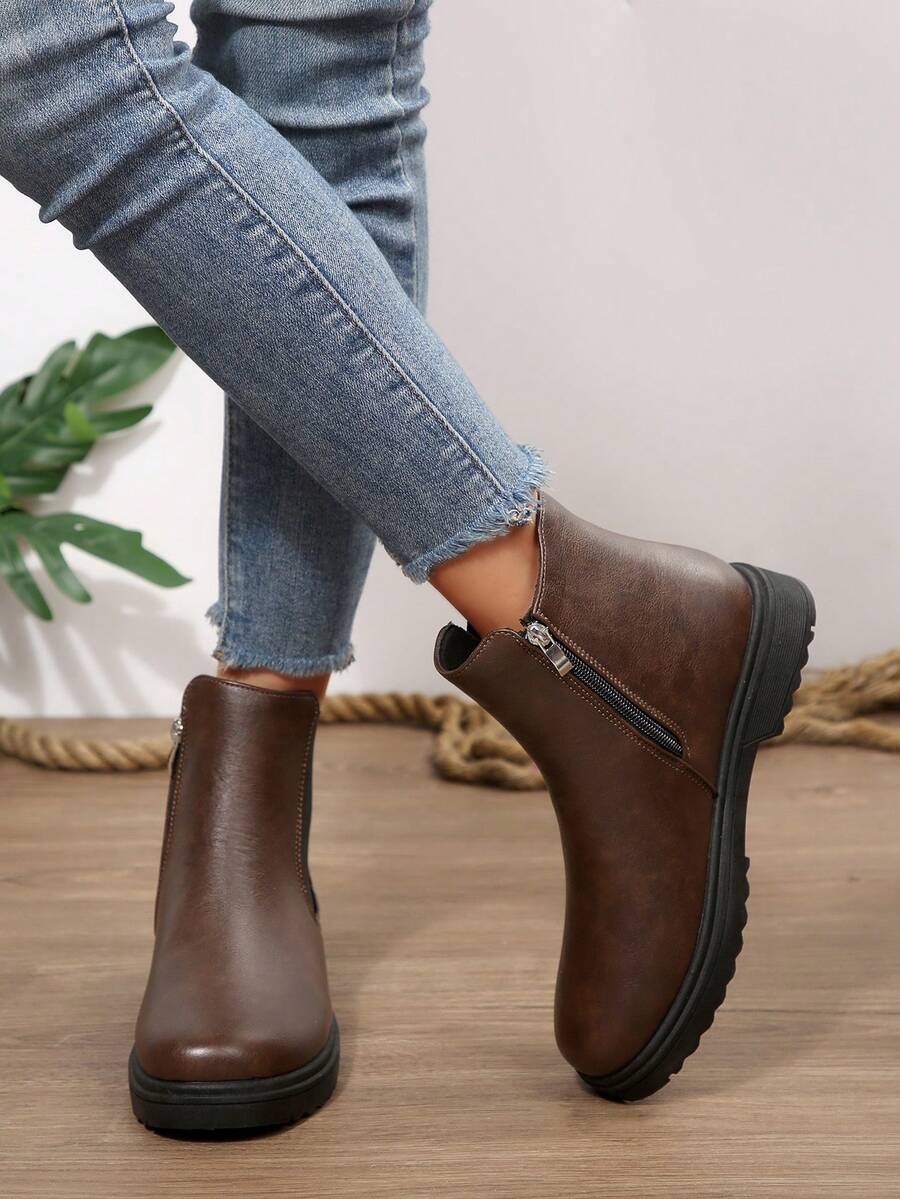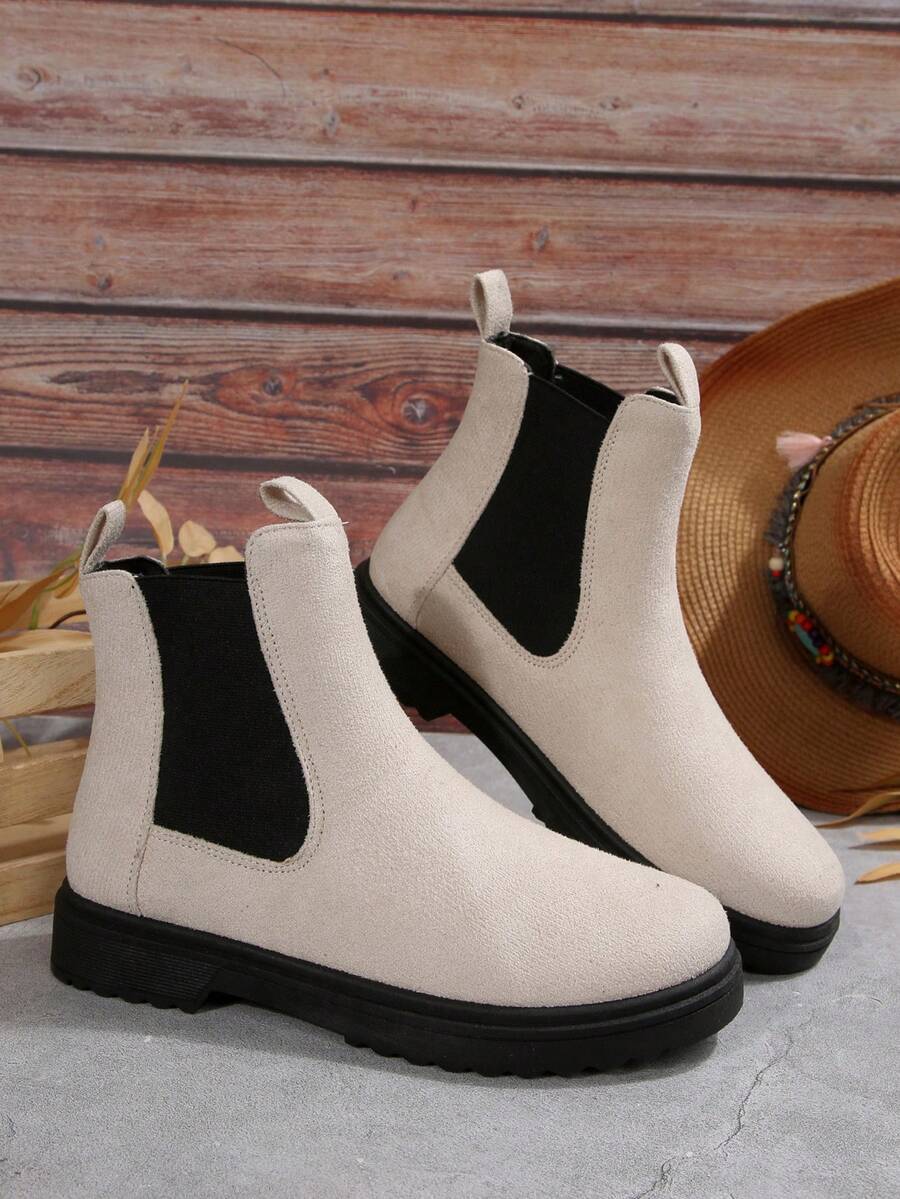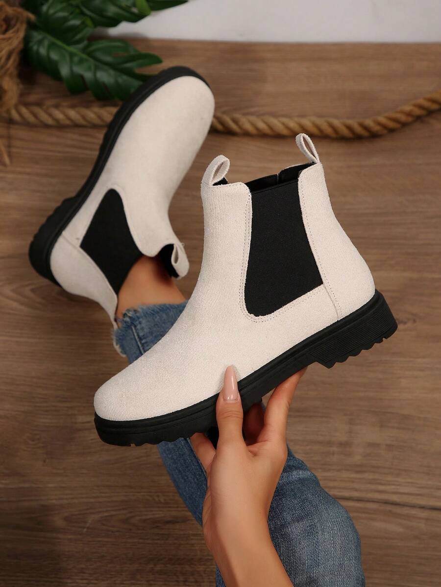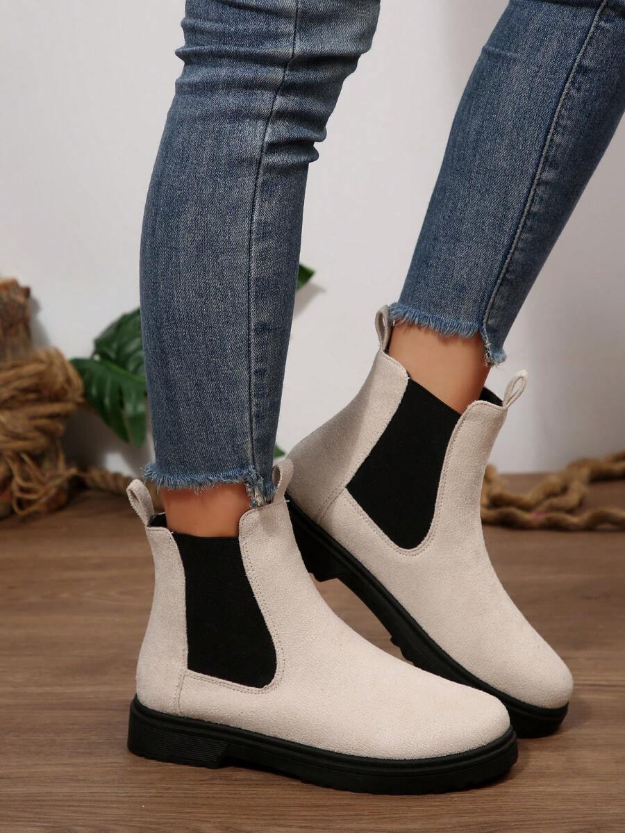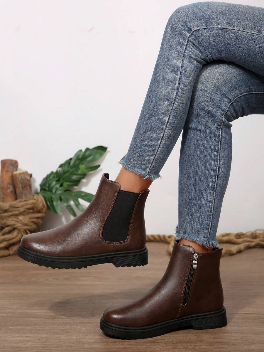 Ženske modre udobne casual svestrane crne PU okrugle čarapu Chelsea gležnjače, jesen/zima, elegantno
