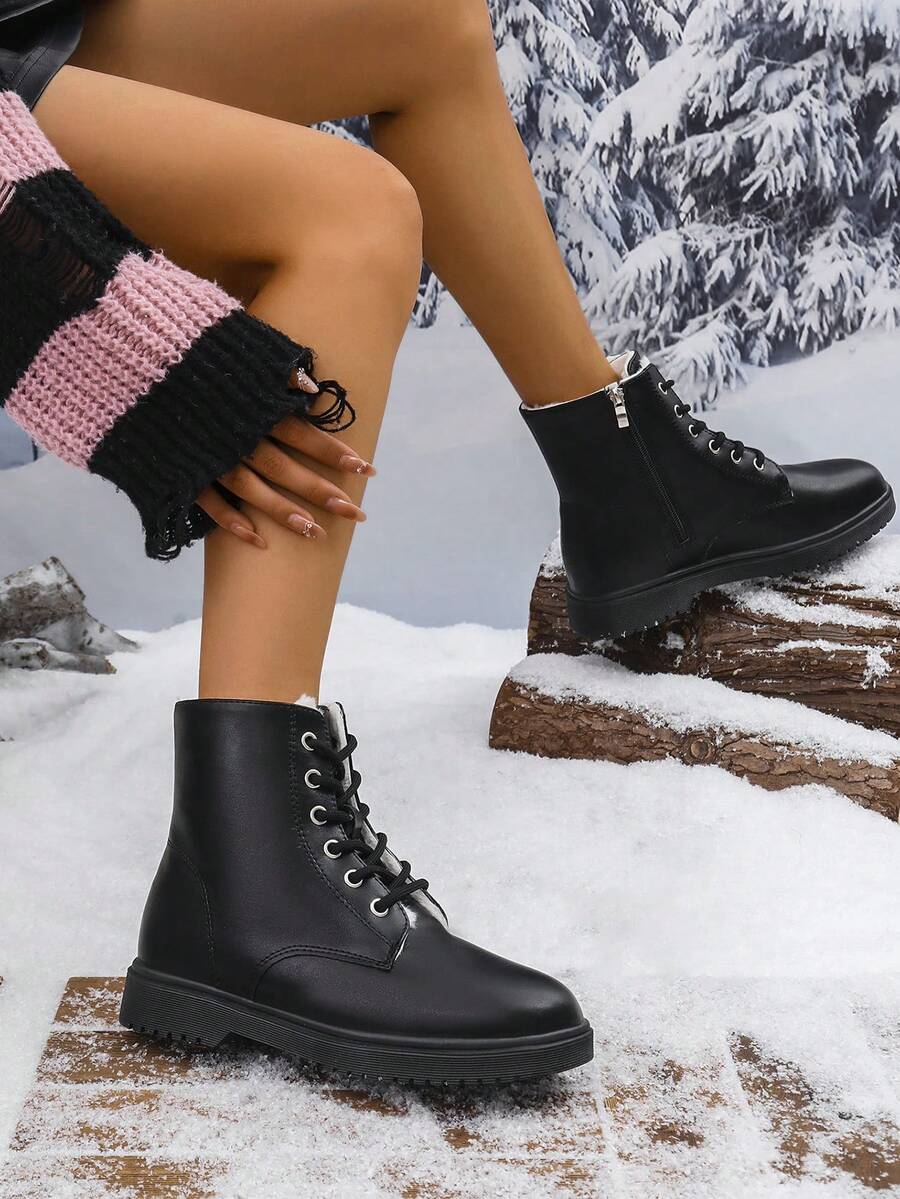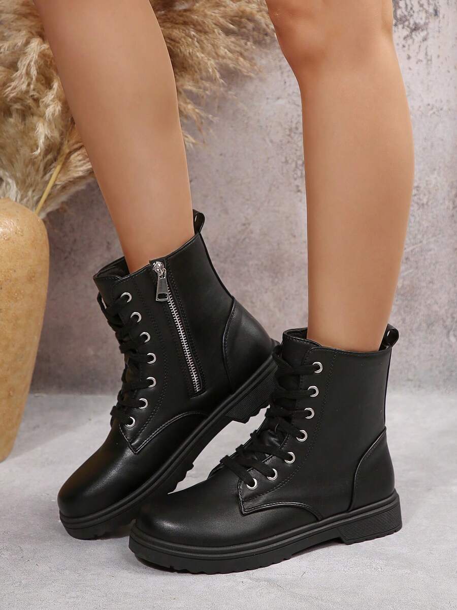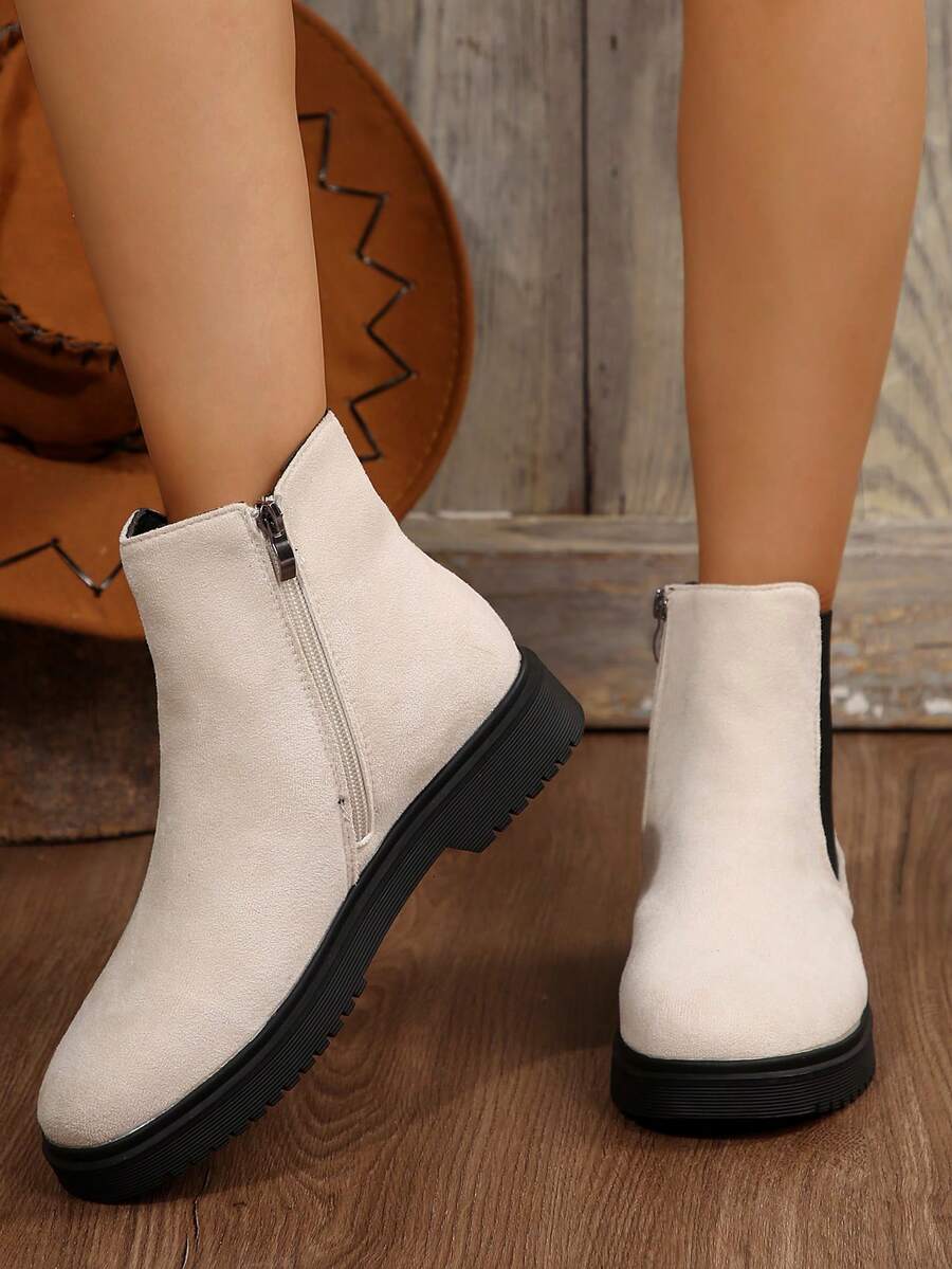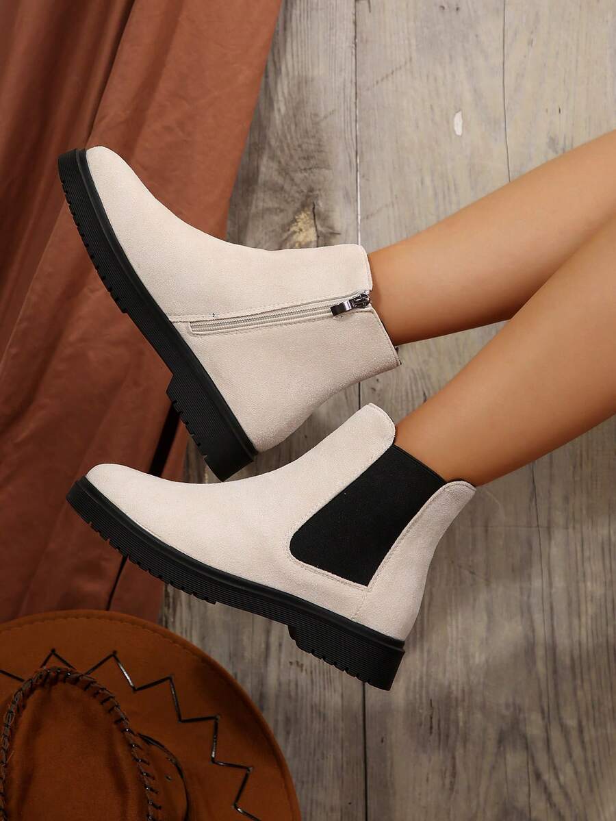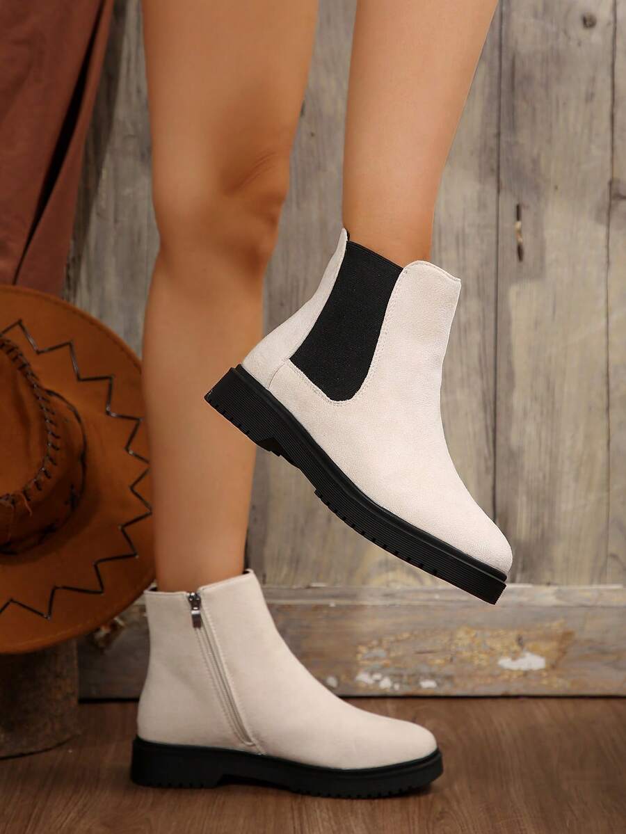 Ženske modre udobne casual svestrane crne PU okrugle čarapu Chelsea gležnjače, jesen/zima, elegantno