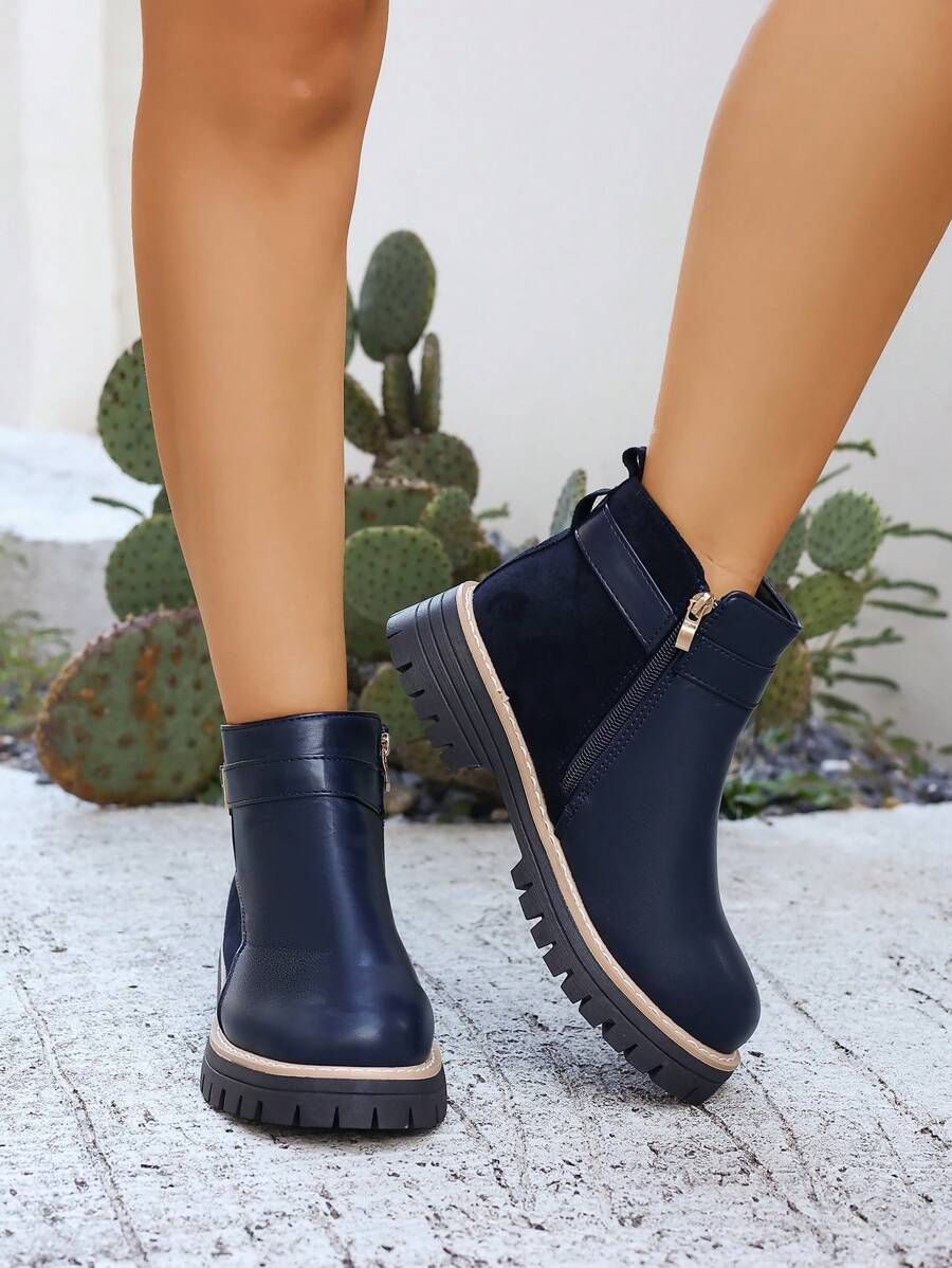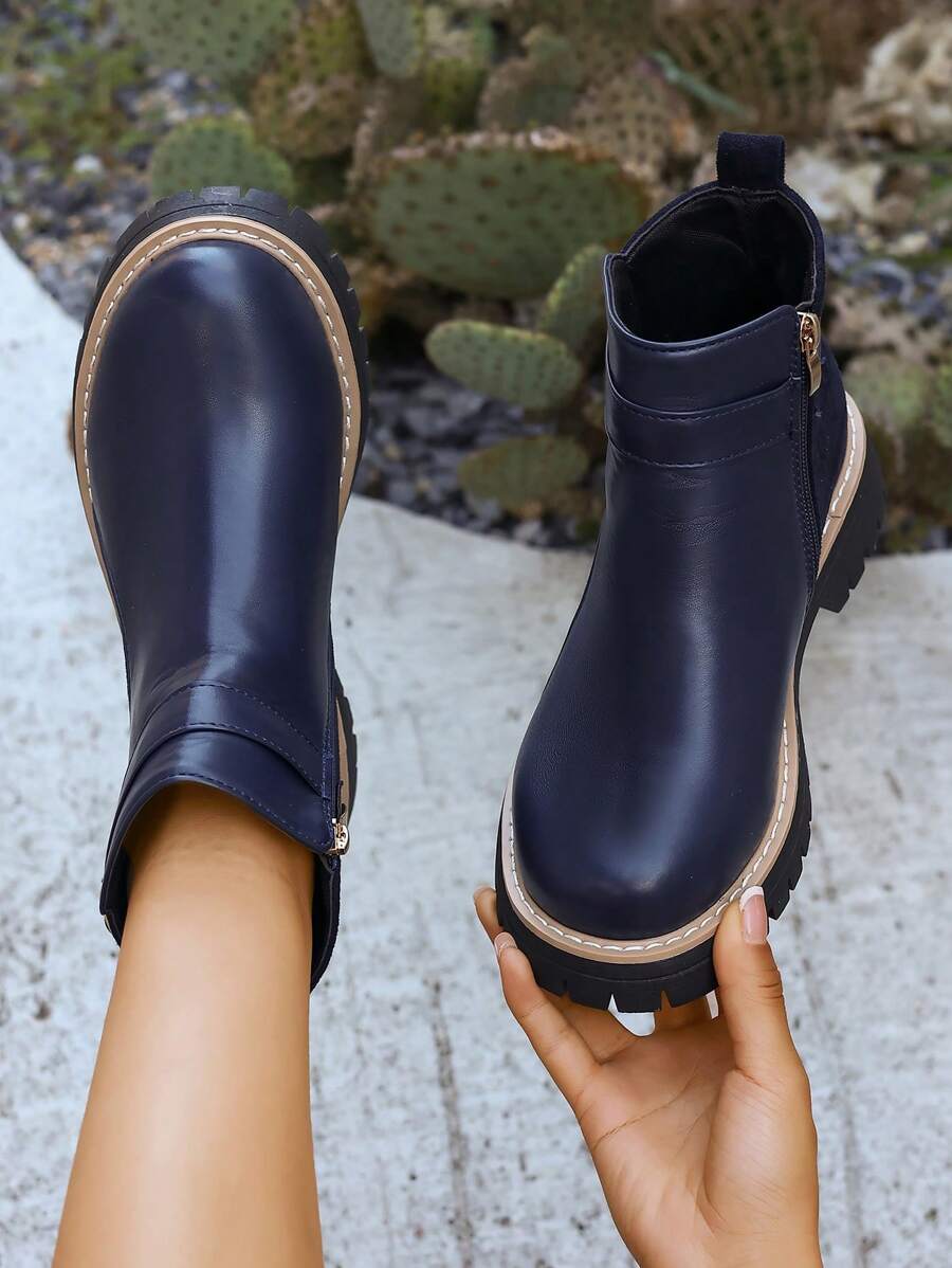 Ženske modre Y2K čizme sa bočnim patentnim zatvaračem
